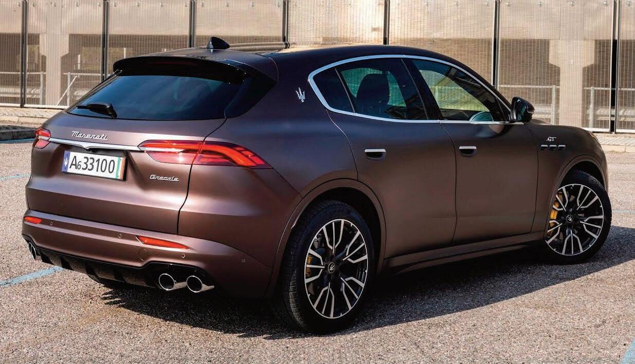 Las ópticas full LED, de serie, adoptan un diseño fluido, hacia los pasos de rueda delanteros, mientras que la zaga presenta una elegante y acertada caída del techo, lo que le confiere cierto aire a SUV coupé, sin renunciar a la deportividad que aporta el enorme difusor posterior. Los enormes discos de freno ventilados de 350 mm delante y de 330 mm, detrás, un sistema que lleva la firma de Brembo. De serie, el Grecale GT equipa llantas de 19 pulgadas.