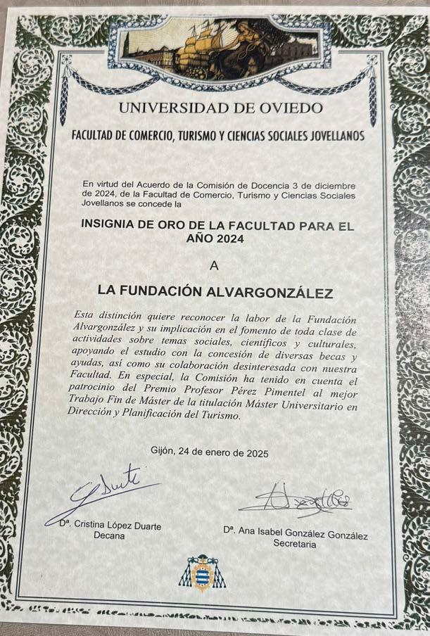 En el mismo acto dicha facultad entregó su medalla de oro a la Fundación Alvargonzález.
