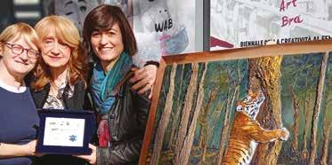 Mariella Bonardo vicepresidente della Consulta Pari Opportunità di Bra e delegata del Movimento Donne di Confartigianatozona di Bra ha consegnato una targa di premio alle pittrici Maria Cavallo e Francesca Semeraro per il dipinto “L’Abbraccio” esposto al WAB di Bra, biennale di arte contemporanea dedicata alle donne ed alla loro creatività. Del dipinto esposto nella mostra braidese, artefice dell’immagine della tigre la pittrice braidese Francesca Semeraro, e del bosco che circonda l’animale, realizzato con vera corteccia, la pittrice saviglianese Maria Cavallo. Un impatto emotivo degno di essere catalogato come autentico segnale di “ripresa”, in un momento