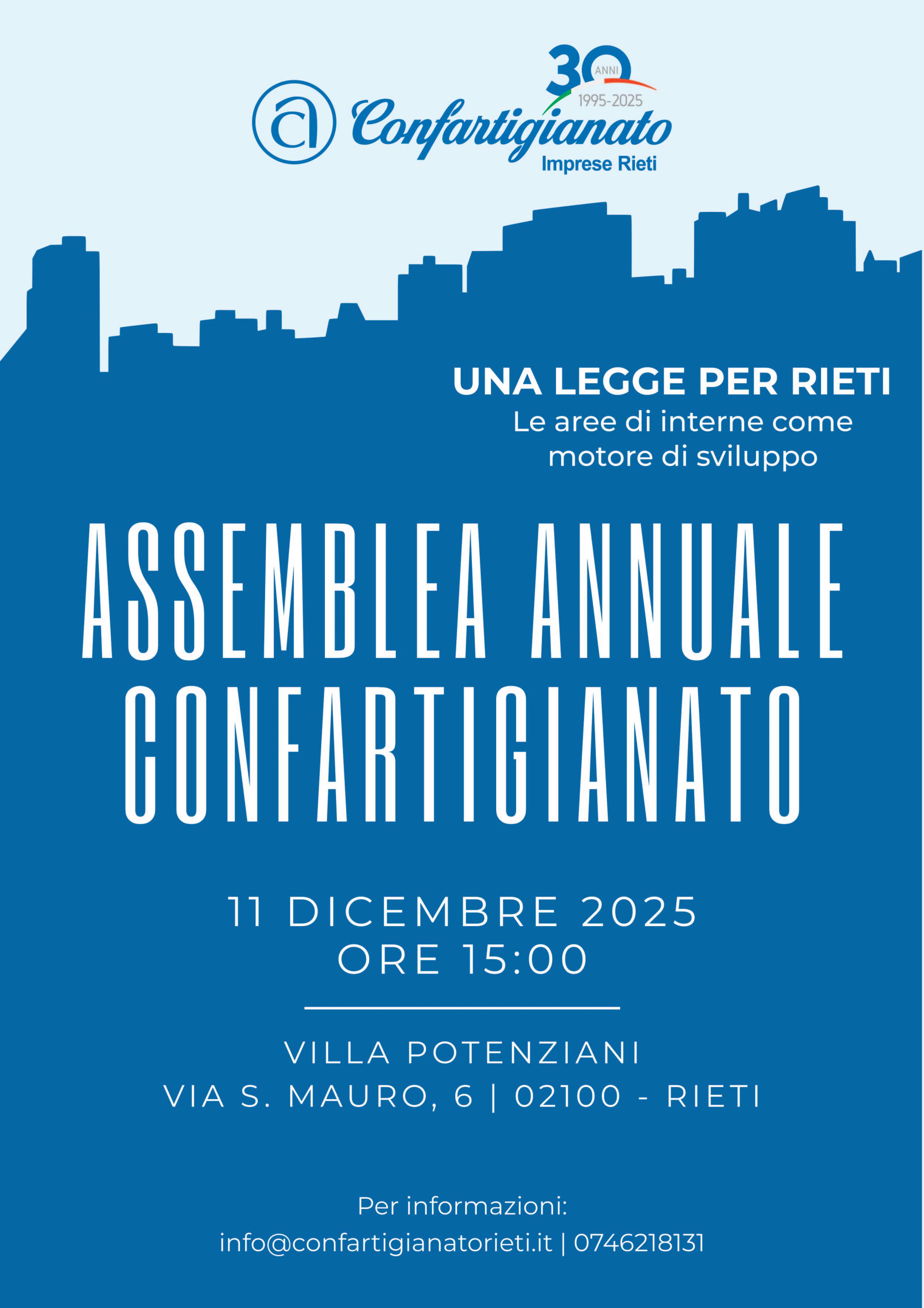 Per informazioni contattare gli uffici di Confartigianato, Matteo Corradini tel. 0746 218131 info@confartigianatorieti.it.