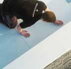acier, perpendiculairement au sens des cannelures, puis la membrane Rhepanol hfk est déroulée perpendiculairement au sens des bandes Gripfix. Pour faciliter le travail et obtenir une pose linéaire de la membrane Rhepanol hfk, il est conseillé de recouvrir au préalable la première partie des bandes Gripfix (p.ex. d’une tôle métallique). Il suffit ensuite de bien presser la membrane Rhepanol hfk sur les bandes Gripfix en utilisant par exemple un maroufleur métallique lourd, de préférence deux passages, et enfin de souder les joints longitudinaux.