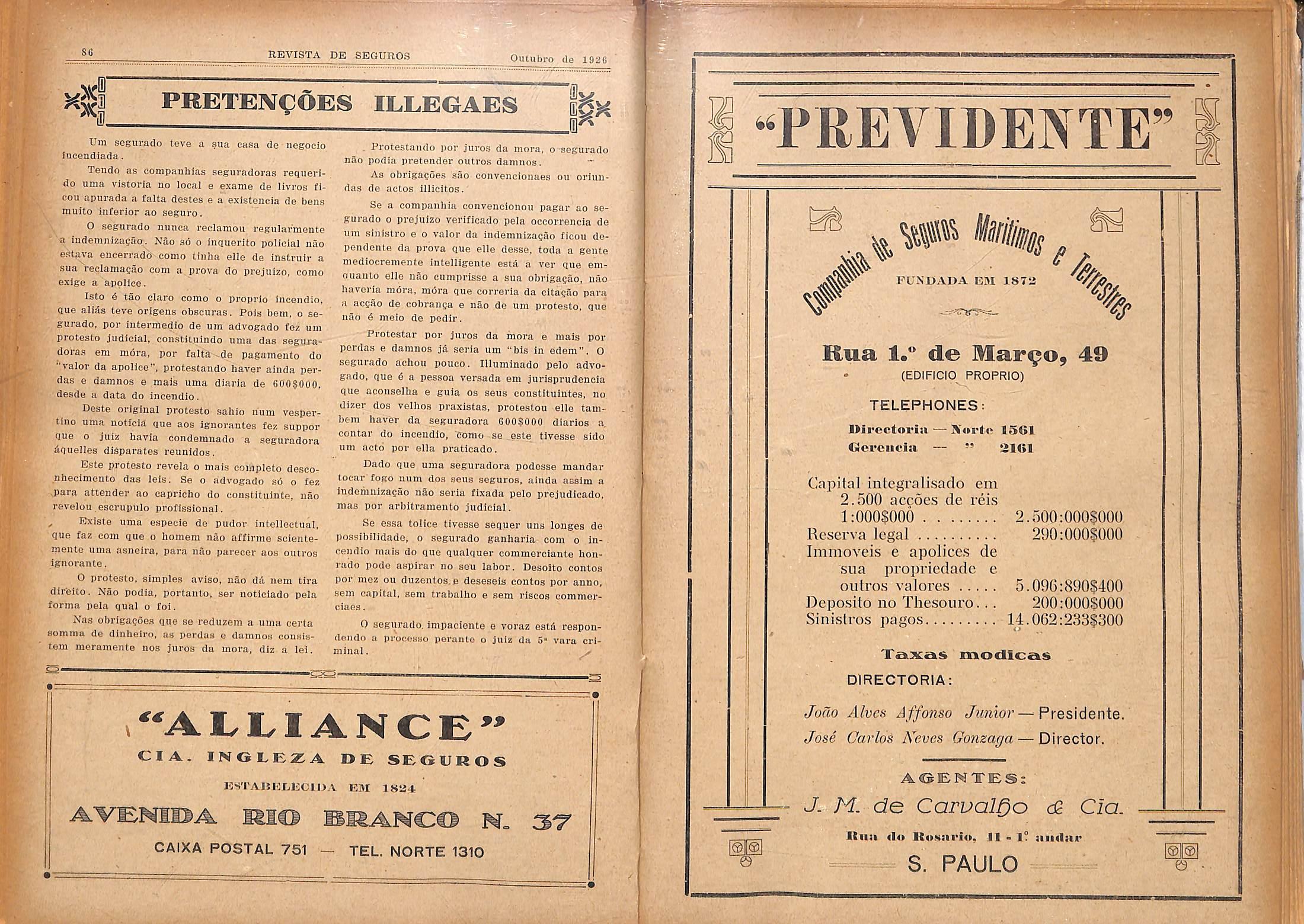 Outub]-o de 1926 UEVISTA DE SEGUROS