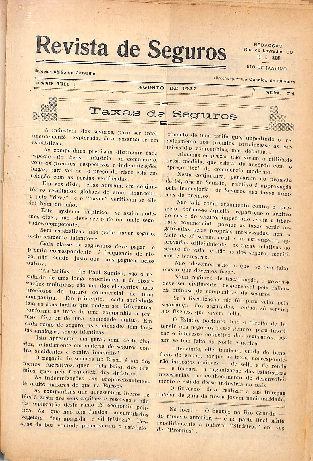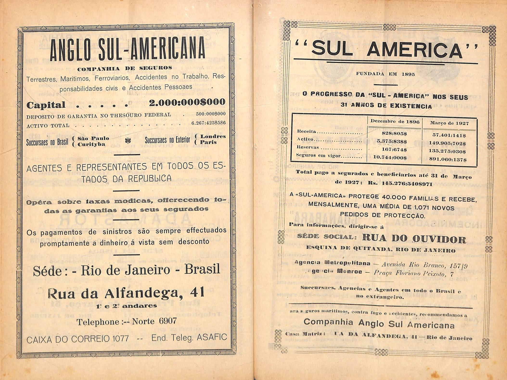 KSTABELECID.V EM 1824 AVBMIDA MIO M. 37^ CAIXA POSTAL 751 — TEL. NORTH 1310 f REYISTA DE SEGUROS 33
