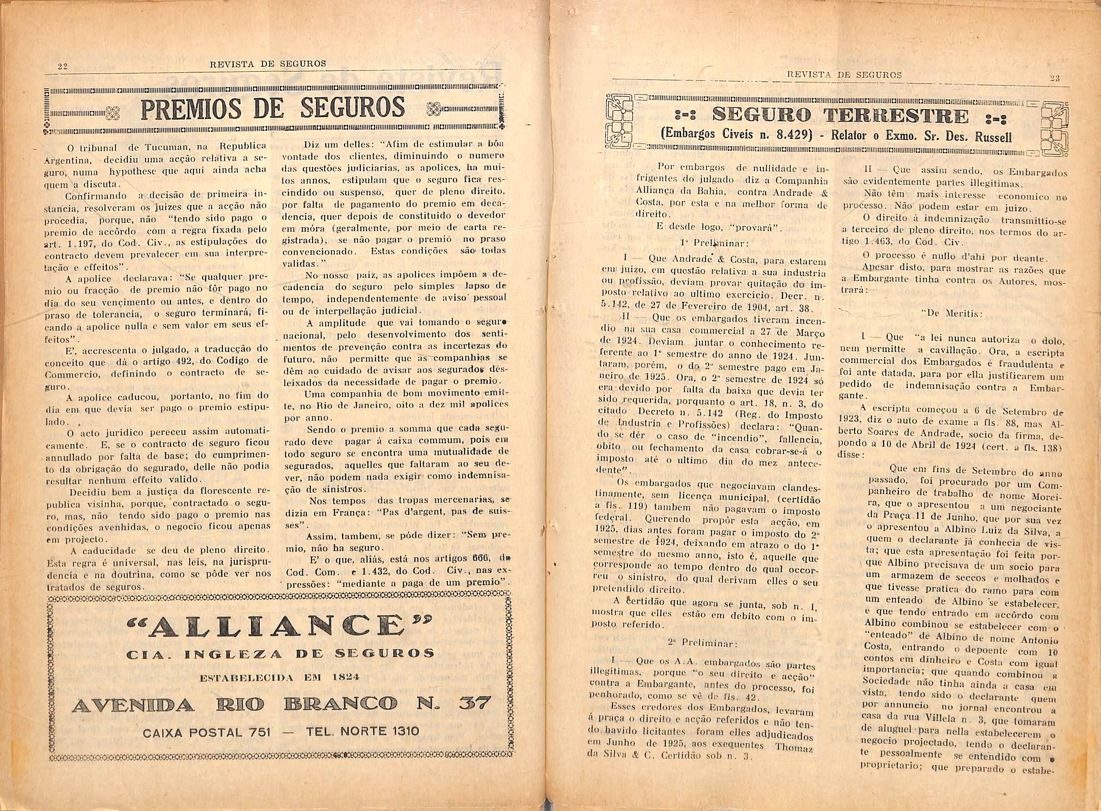 0 tribunal (Ic Tucuinan, na Hepublica Argentina, •iccidiu unia acfao I'elativa a scguro, nunia liypothosf «iiie aqtii ainda acha eiiiem a discuta.