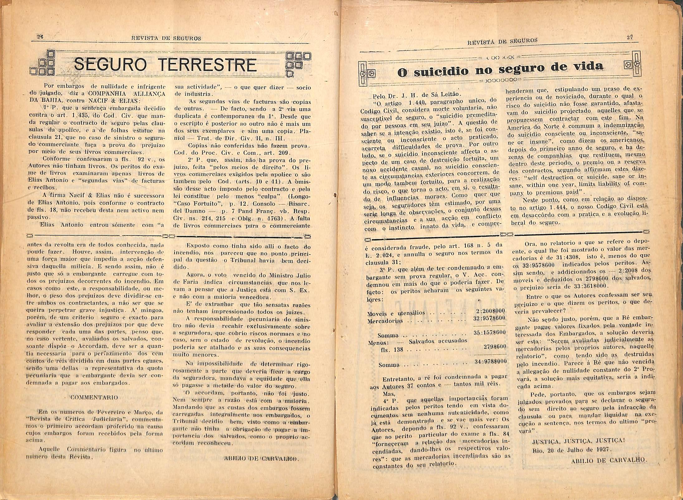 Rio, 29 de Julho de 1927. ABIldO DE CAHVAI.HO.