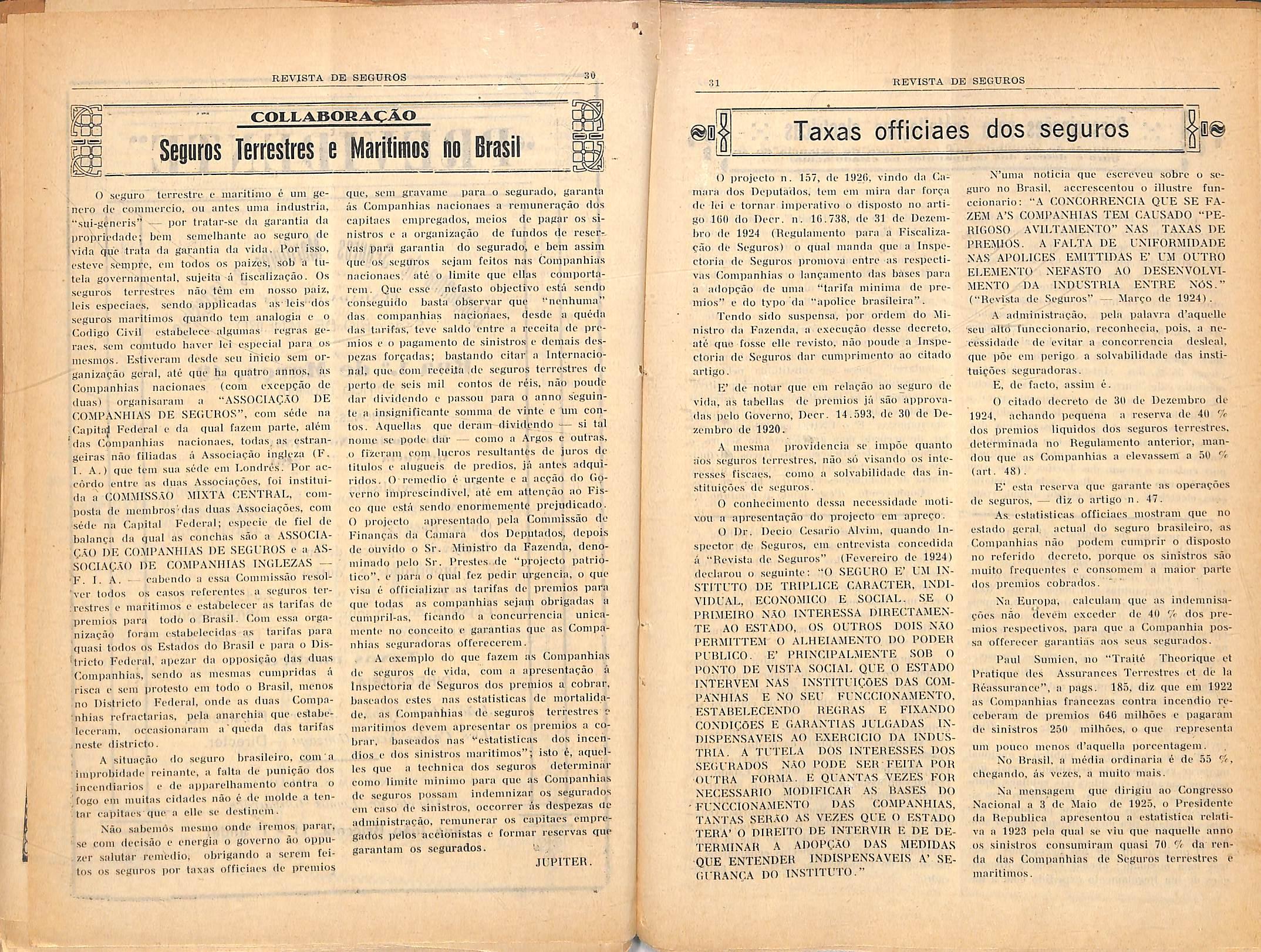 solieiluiie com que os sens fimecionarios comparecem aos locaes .).• iiiccndios, iireparaiido desde o Inicio todas as iirovas que servirao aos inqueritos. seiido esles enli'cgues a jierilos idoneo.s e que se esforcaiji para apre■si-ntar um iulgamealo siiicero e imparcial da eaiisa que ilies c affecta. Por oiitro lado as (•.omiKinhias de Seguros_ nao aceeitam hoje ni'goeios a esiiio. mas sujeitam-nos a iima eslima iinuieiite flo vnlores seguraveis, mvestigam da moralidade .ios .segurados, agein emfiiu eom um espirito de seleccao que nao per- niitte a exploracao dos que se tinham habituado a locupletar-.se com a in.luslria <lo fogo A pro)>ria electricirlade que servui de eapa u lantos sinistros niysleriosos. tem sido banida comu causa de ineendio, sendo ranis a.iueiles em que o curto eircuito entra comu factor. Ha uina causa (pie ainda nao foi pos- sivel remover que e a negligencia ([lie determiiia. em regra, o.s princiiuos dc mce'idio (|ue no anno fimlo sc elcvarani a /(), leiizmente todos loenlisados a tempo e sem_ conscqueneias graves. Os ineemlios que nao ultrapassaram os havhlos no anno anterior, luantendo-se no niesmo luuiiero de i/. sao <levidos a causas diversas, destacando-se (lois provadamente criminosos e dois attrilmidos a inlerveiH-ao de ladn'.es incendiarios, Os motivos determinmiles dos oiitros sao 'g"'J- rados e isso se deve, em graiide parte, as dilfieiildades com que niio raro se hictu para um aviso prompio as autoridades e aos bombeiros, que quasi sempre compareceiii quando o fogo ja esta em graiide desenvolvimenlo desaiqiaretrendo todos os vestigios existeiiles no foco de irruiicao, uao sendo muitas vezes nu'smo possivel que esle sejii delerminado Dos 27 inceiidios liavidos constatamse seis em rasas ile nioradias. sendo iis restallies em diversas industrias e lirejuizus decorreiites moqtaiii a n.i.i.ioos milire .1,(ill8:2(ll)SO(10 de valores sinislni.ios. Ha .lima grande desproiioiTao entre os valores sinislrados em l!t25 que monlaram a 10 mil e laiilos eonlos de rcis emu meiiiires prenazos. pois attingiram aiienns a //a;.)/0S8i)J_. I-shi resiiltado de em valore.s vultuosos os incendios serem rapldmnente localisado ,se rvdiizidos quasi a simples iinnci|)Jo.s de ineendio, Os sinistros com prejulzos decorrentes supuiores a 80:0U0S manteeni a inesimi pn>[iorca.) do anno anterior, <i que prova tiue o servlco de vigilancia. alliado as me.lidas pie- ventivas (|ue aeiiiia reCerinuis, continuam a ser fecundas em resuUados jiratieos (iiii- as (hmiiianhias de Seguros naci jiodem dcixar de considerar. iirestigiando cada vez mius a sua organisacao collecliva e collocando-se firmes no posto (|uc espontancamenle acceitarain para a diTeza dos seu.s inais sagrados interesses, poi.s sii assim poderao concorrer