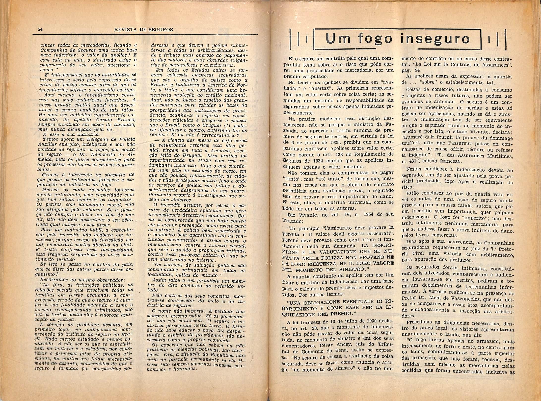 Em 1931, setenta e cinco por cento de iais sinistros, declarou um homem de negocios. se verificaram em casas comerciais e pequenas industrias, em regra mal amparadas financeiramente, quasi todas sem escrita regular, sendo gne varias vezes os livros desapareciam no incendio, salvando-se apenas, por um feliz acaso, a apolice.