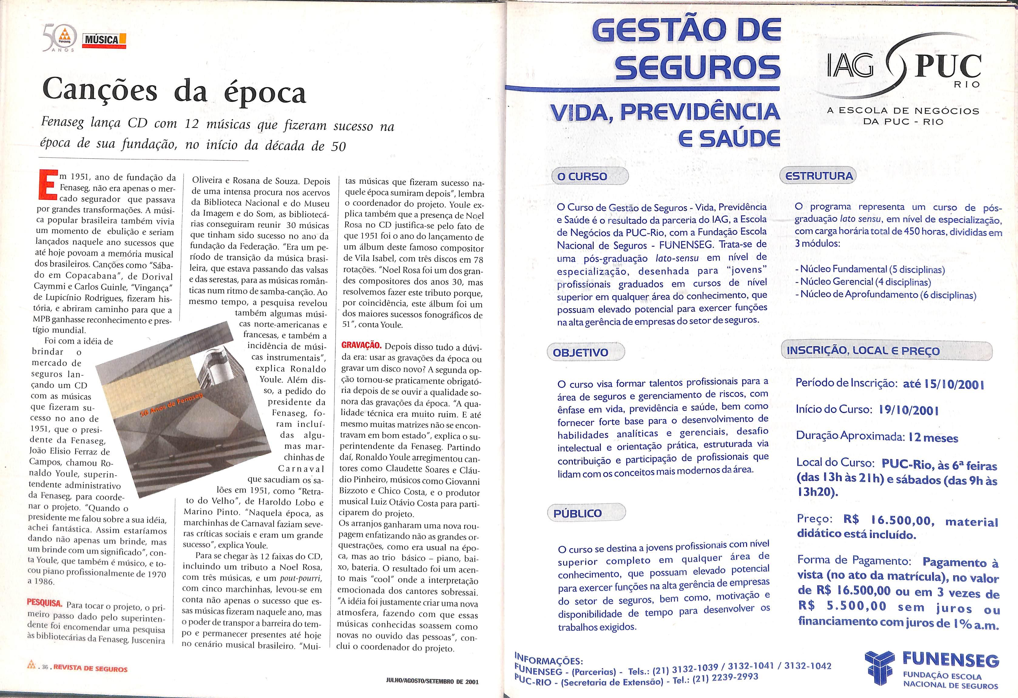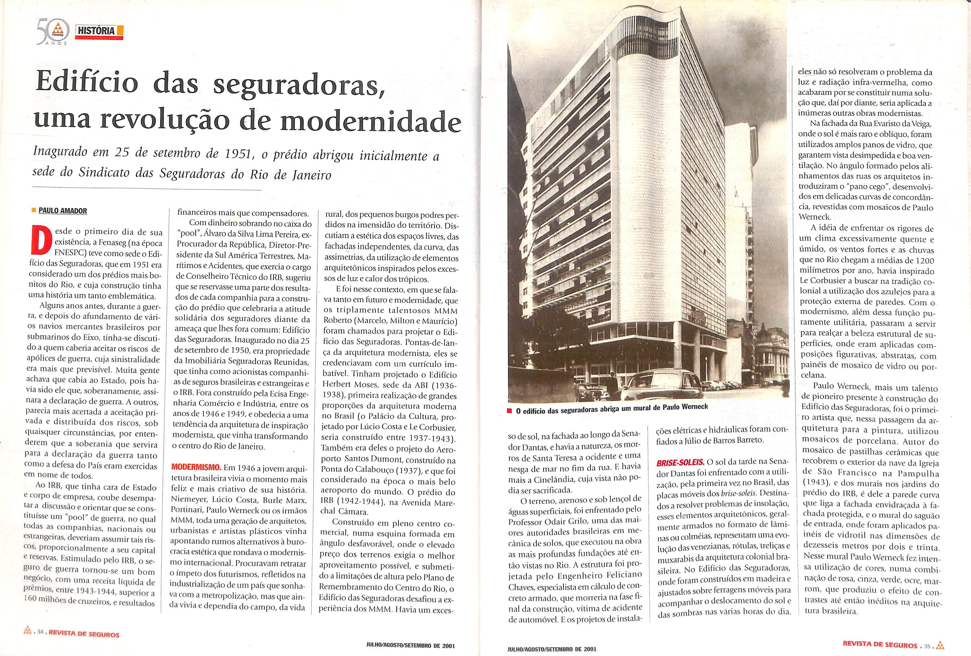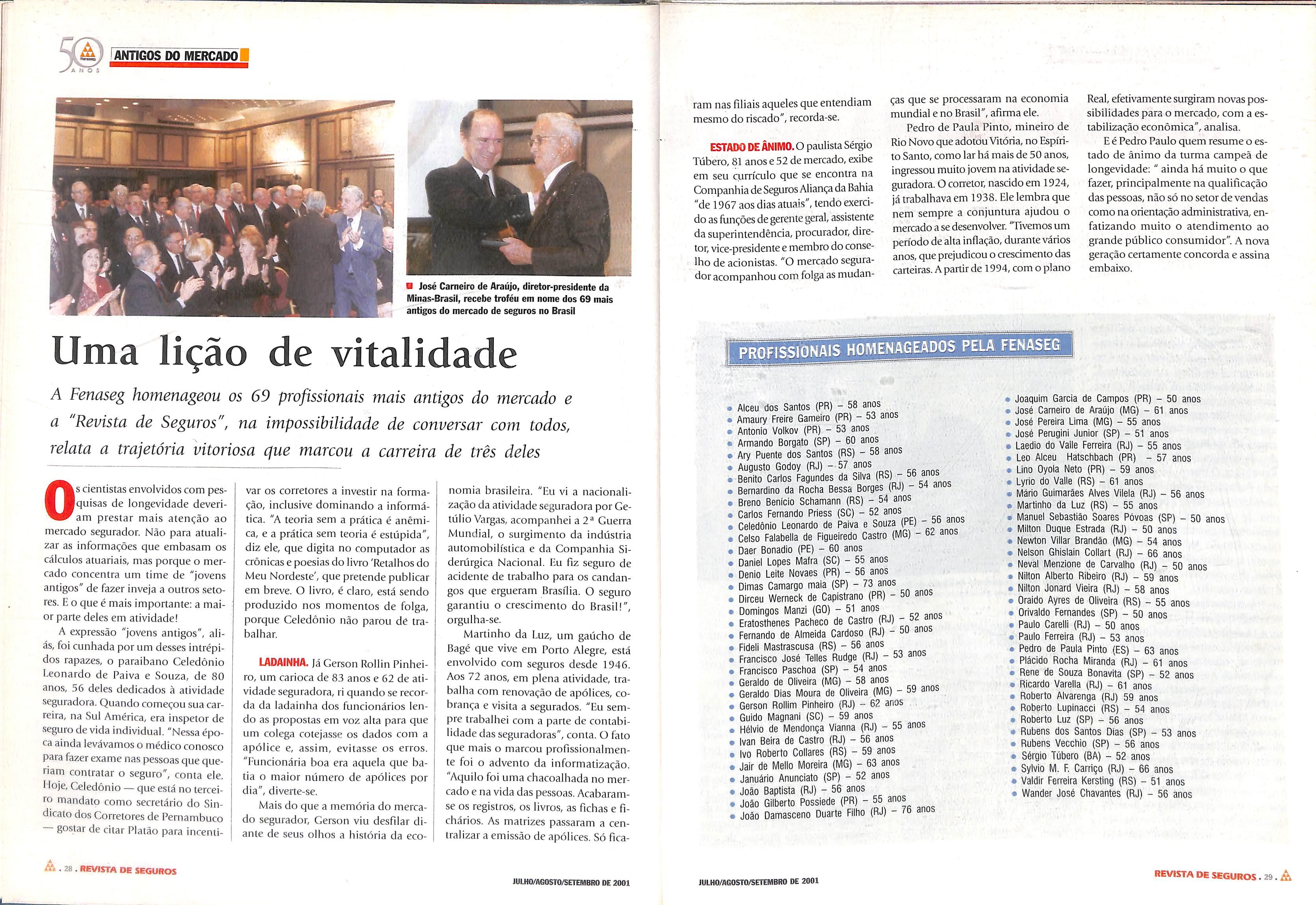 «Vi 40 REVISTA OE SEGUROS JULHO/AGOSTO/SETEMBRO DE 2001 ÜJLHO/A60STO/SETEMBRO DE 2001 REVISTA DE SEGUROS 41.A