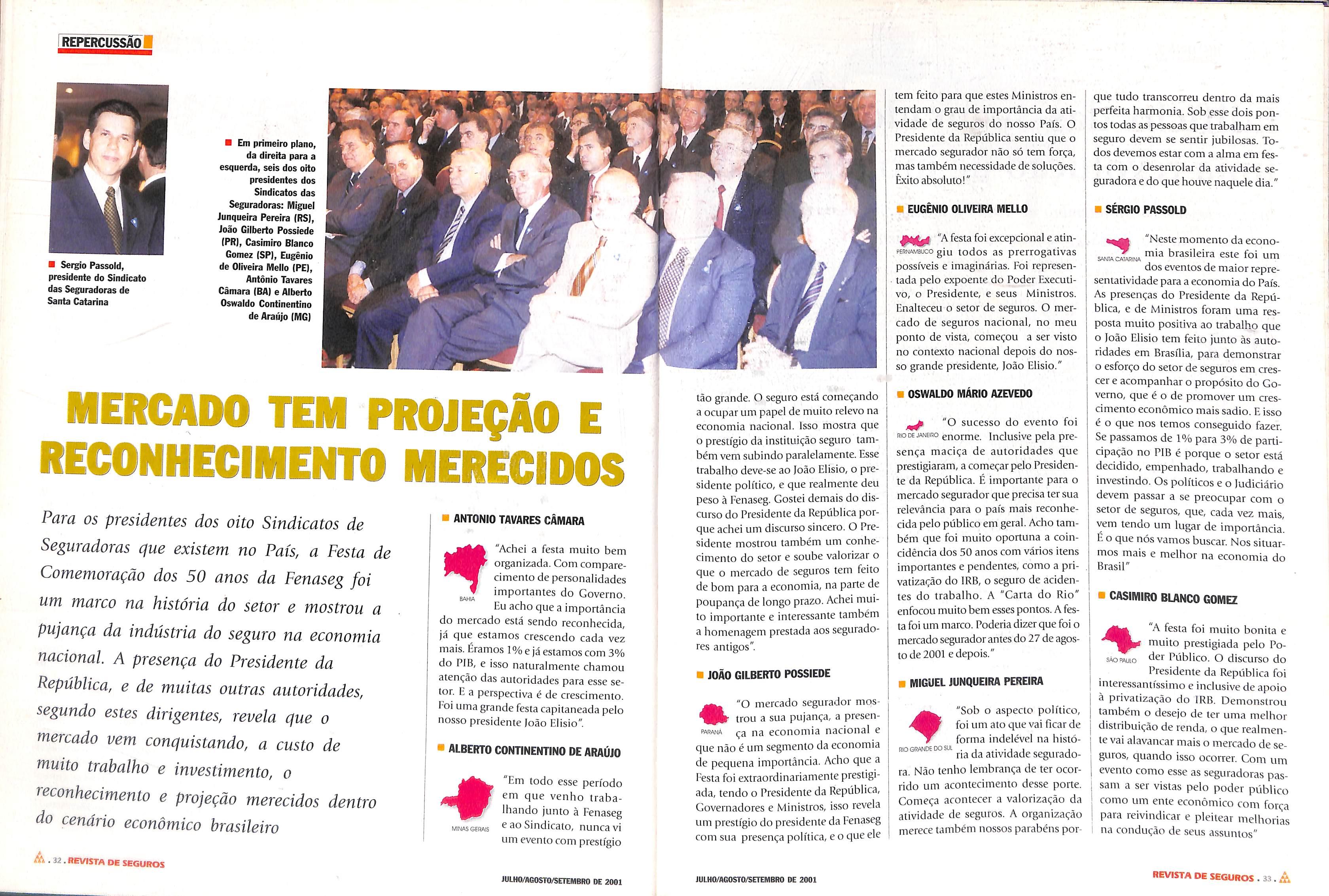 "Coisas que duram 50 anos no país são coisas boas. A Fenaseg tem cumprido perfeitamente o seu papel de congregar as empresas e promover o desenvolvimento do setor, através da união. £ o compareciinento maciço tia Festa mostrou a união deste mercado."