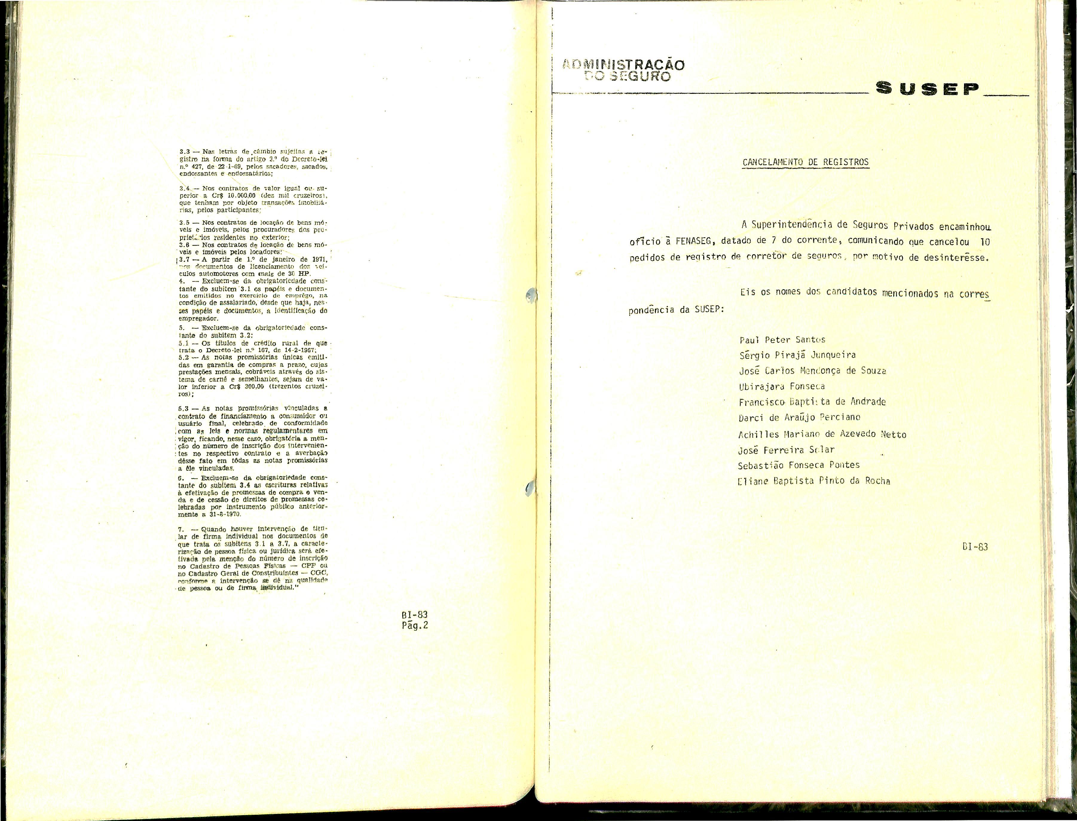 Como as informações prestada s tanto ã Secre t ár i a da Rec~ita Federal qua~tQ ã SUSEP são absolutamente idê ntl c as, ficaria na verd ade facfl itada a tarefa das soe-iedades s eg u rã doras se lhes fÔsse penn i tida a utilização de modêlo também i den t i co .