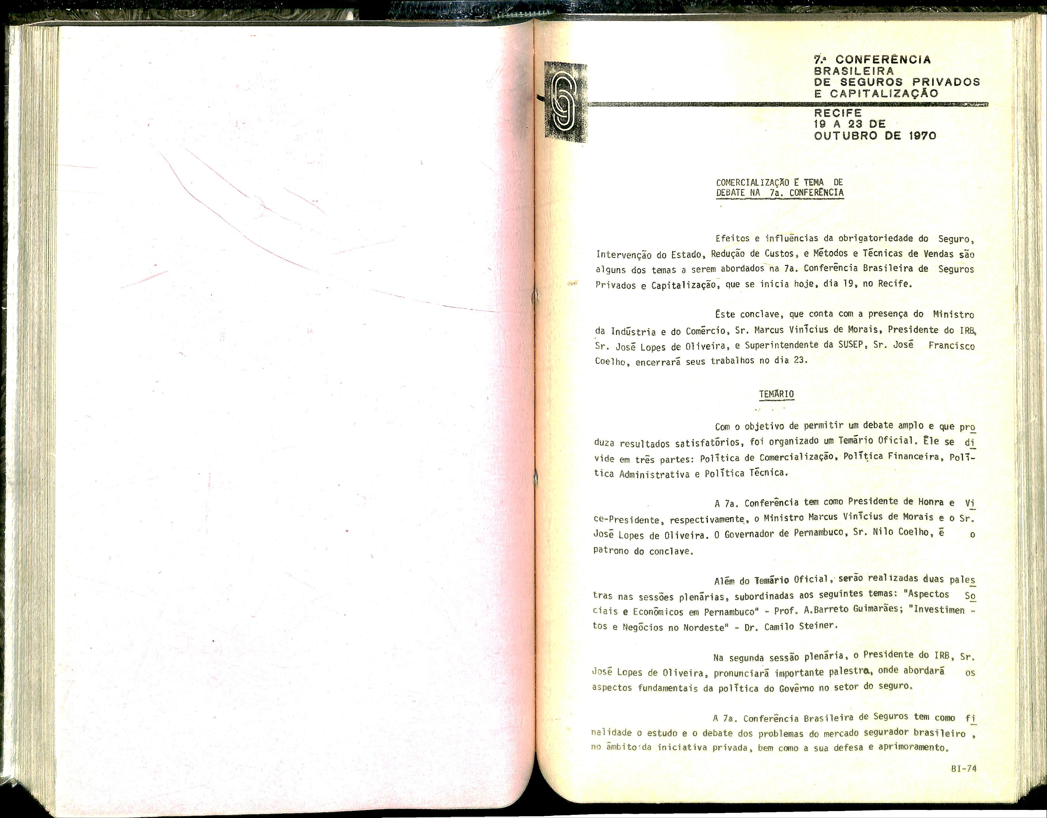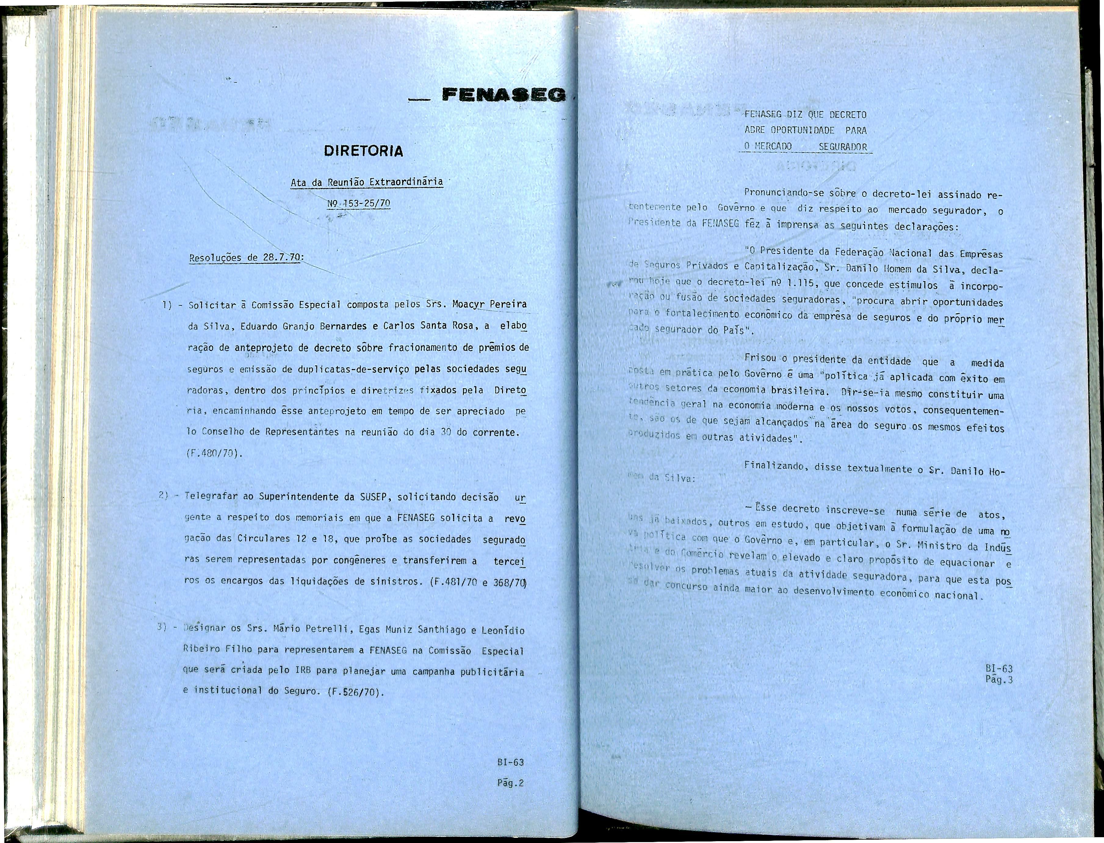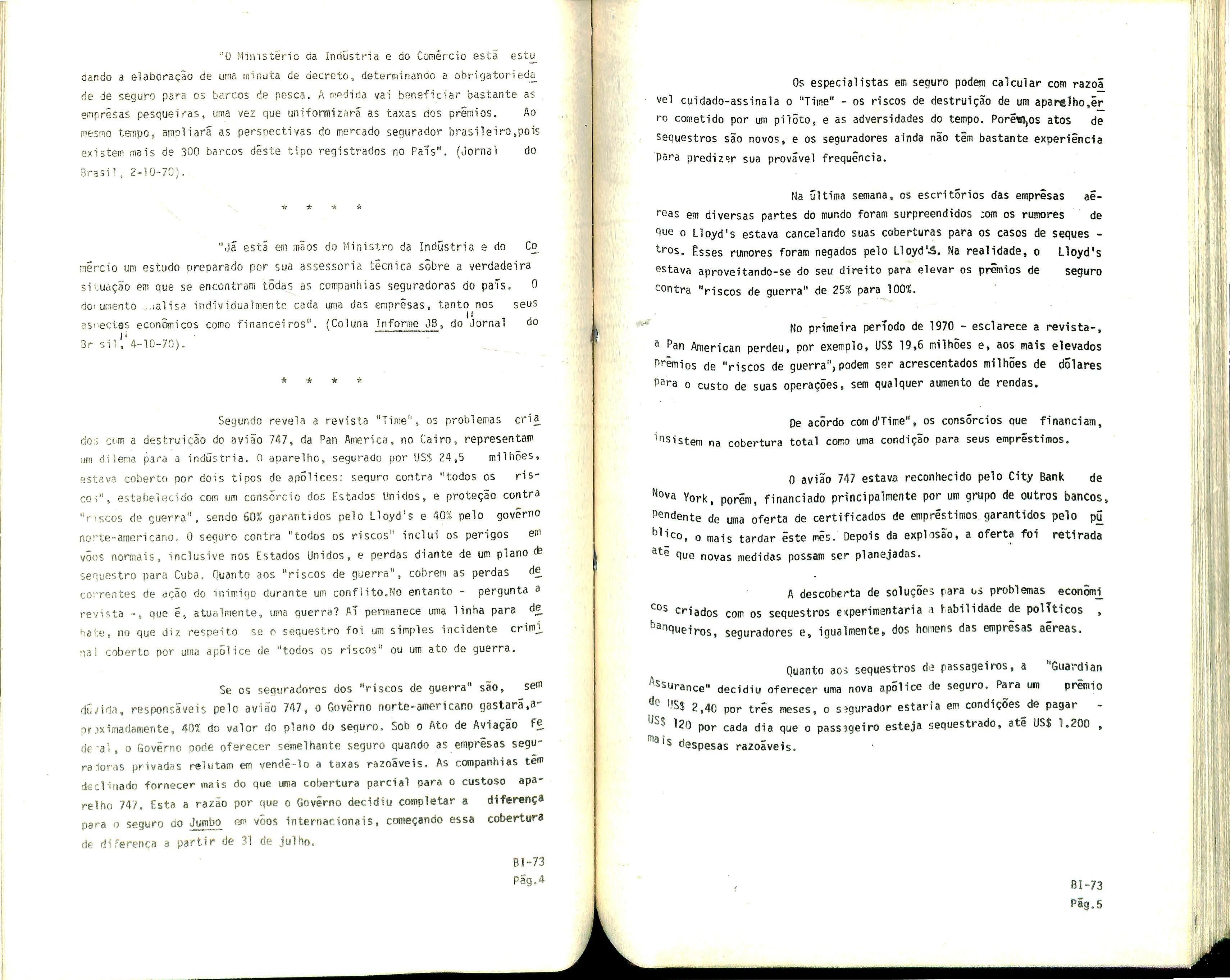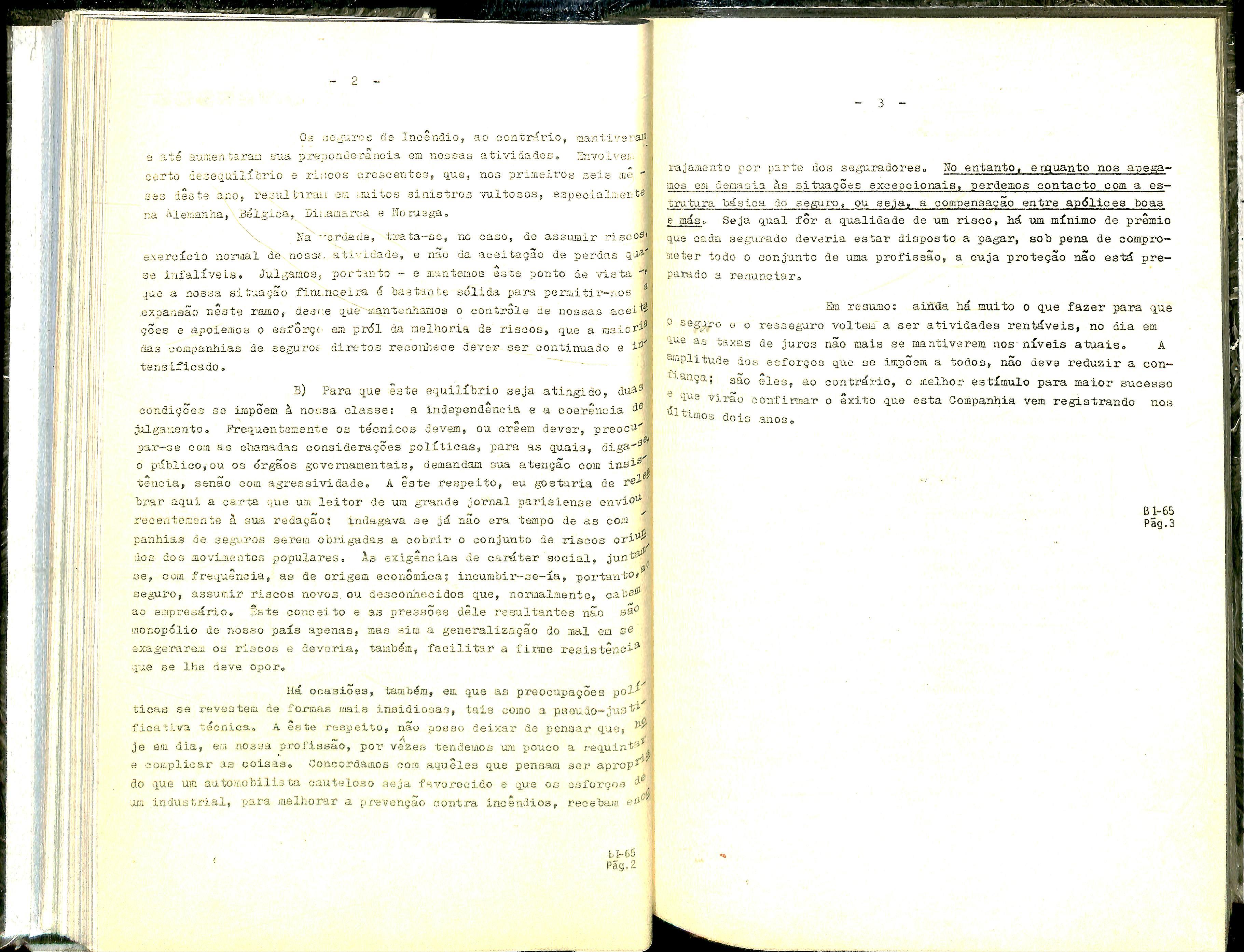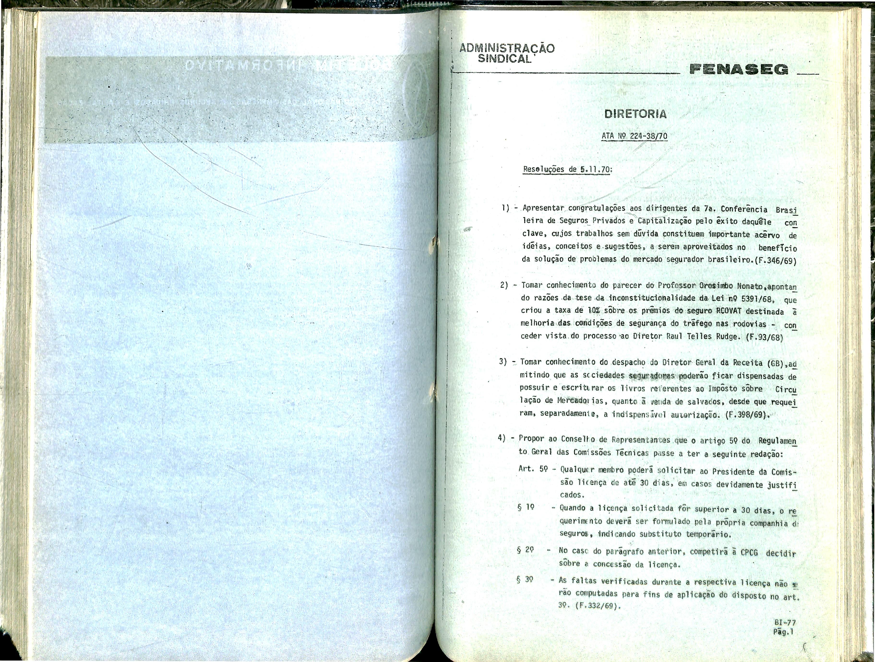 Os r esultados à e balanc o do mercado segurad or em J. 9 69, co nst it uiram-se em verd ad eira s urprêsa para us emp r esários e p a ra os ó rgãos do govê rno resp o ns á veis pelo setor Na ve rdacl i.: n ão h a via , a t é 31 óe d ezembw, <1 men or expec ta tiv a da s per_d as ocorr ida s e , pr üúc a mc.nie, general izad as Os re ultad o s p ositiv9S. d as aplicaç;<:ies mal deram pa ra çobrir os d.efcit s da operação, ta n to nas e m presas .: stra n gc irn s , como na s na~io na~S - Ent re es tas ~,, :::n~ }:· ~.:.is o.tmgidas, ex.-- Ámcn tc, a s grandes se gufaáoras. · D aí o pan o ra m a de 1970 , m arcado pe a pesq ui sa incess an te dos m otivos e ca usa s do ocorr ido.