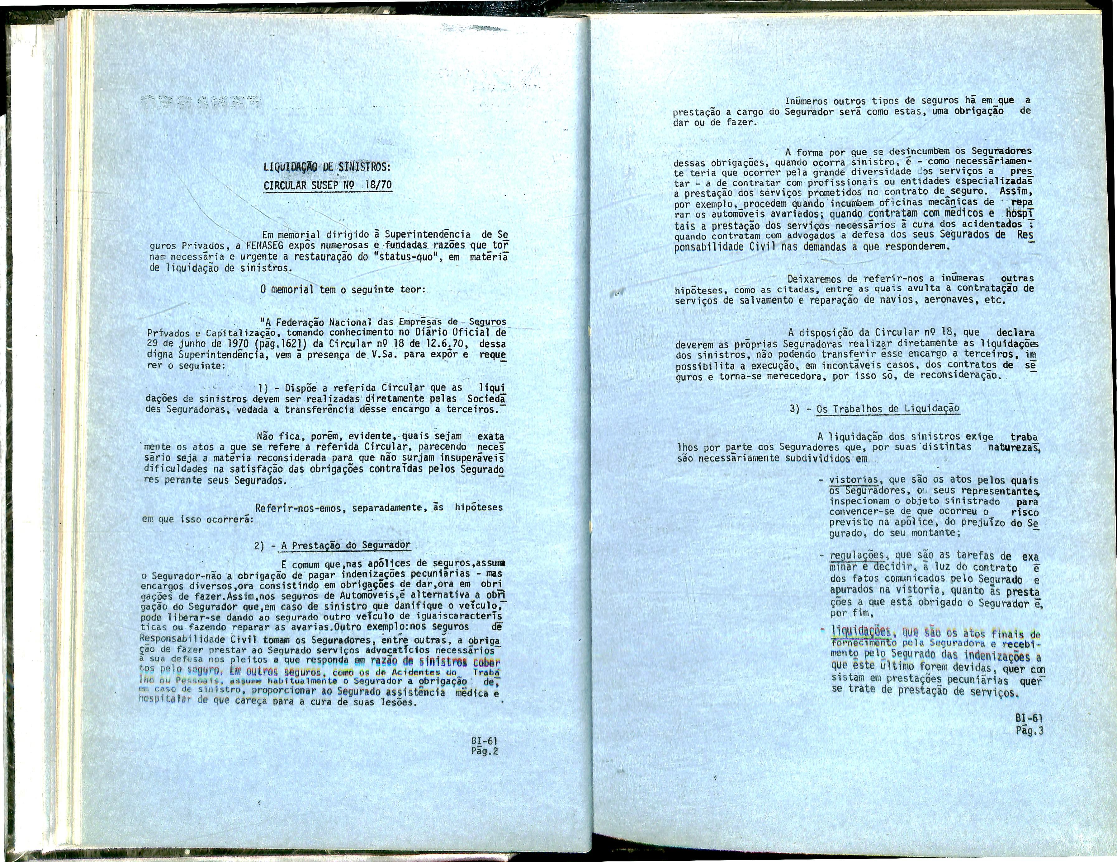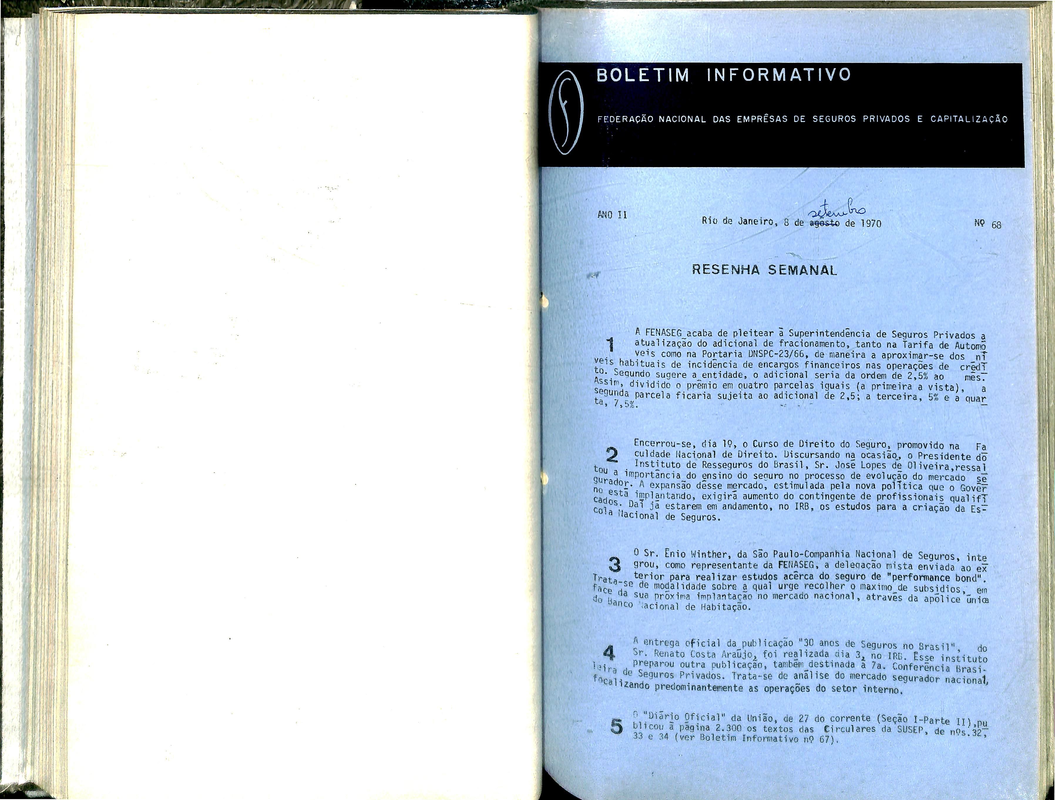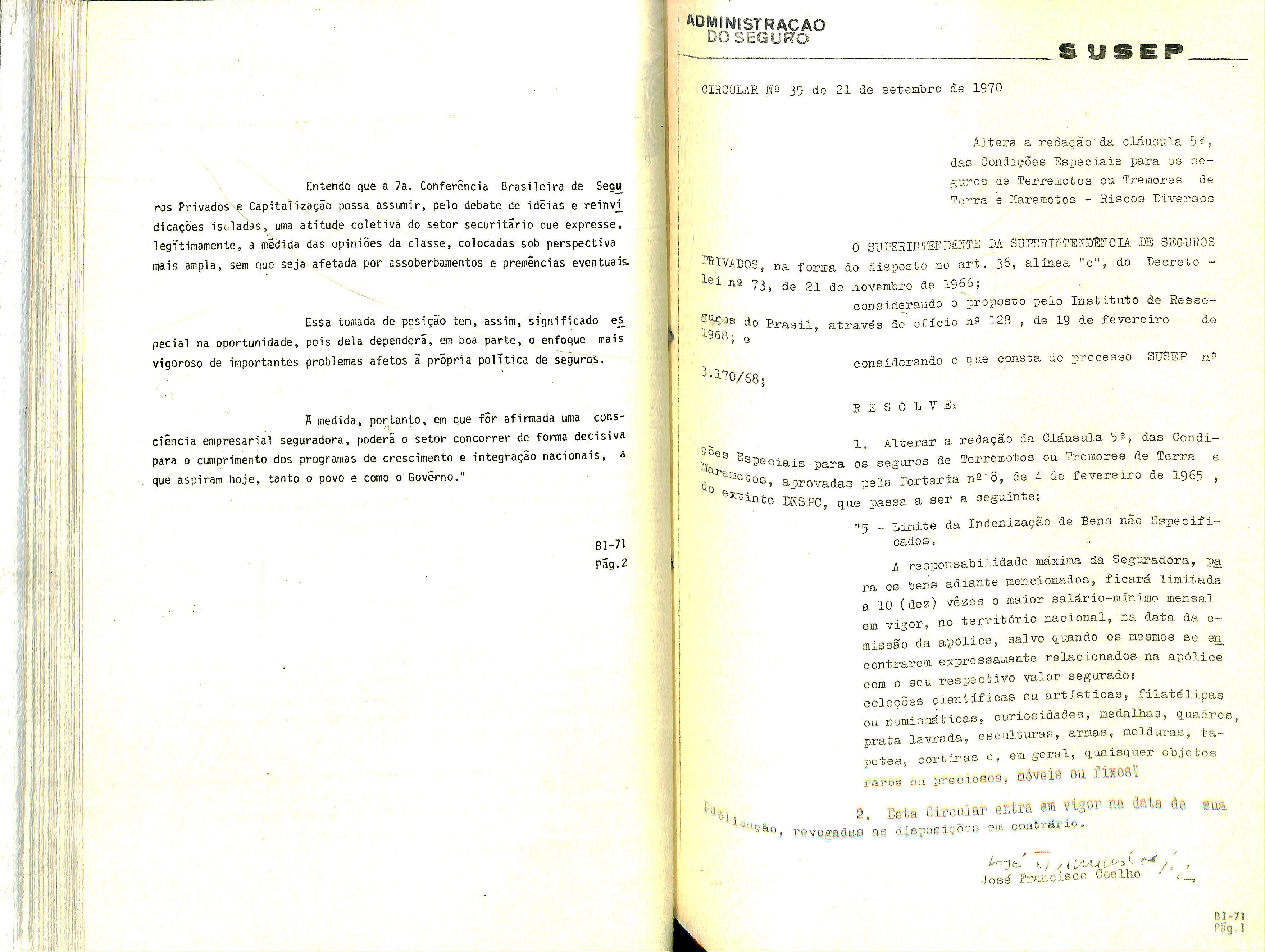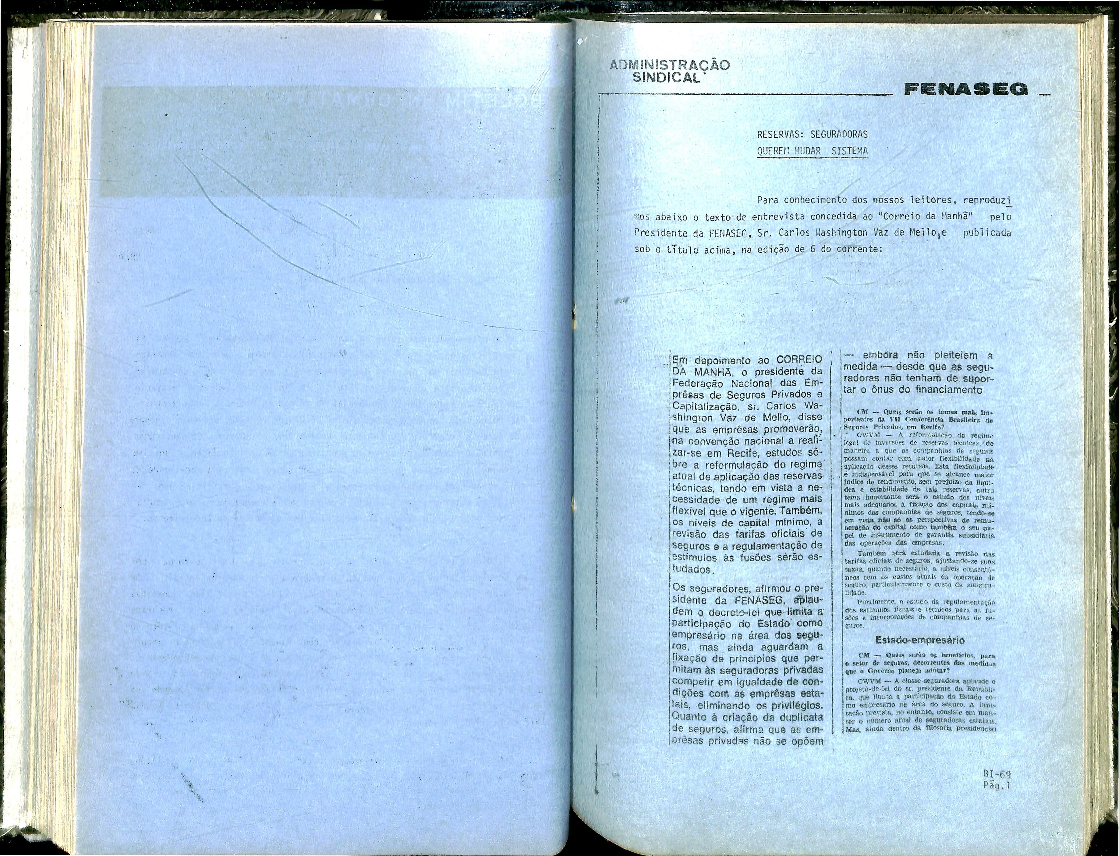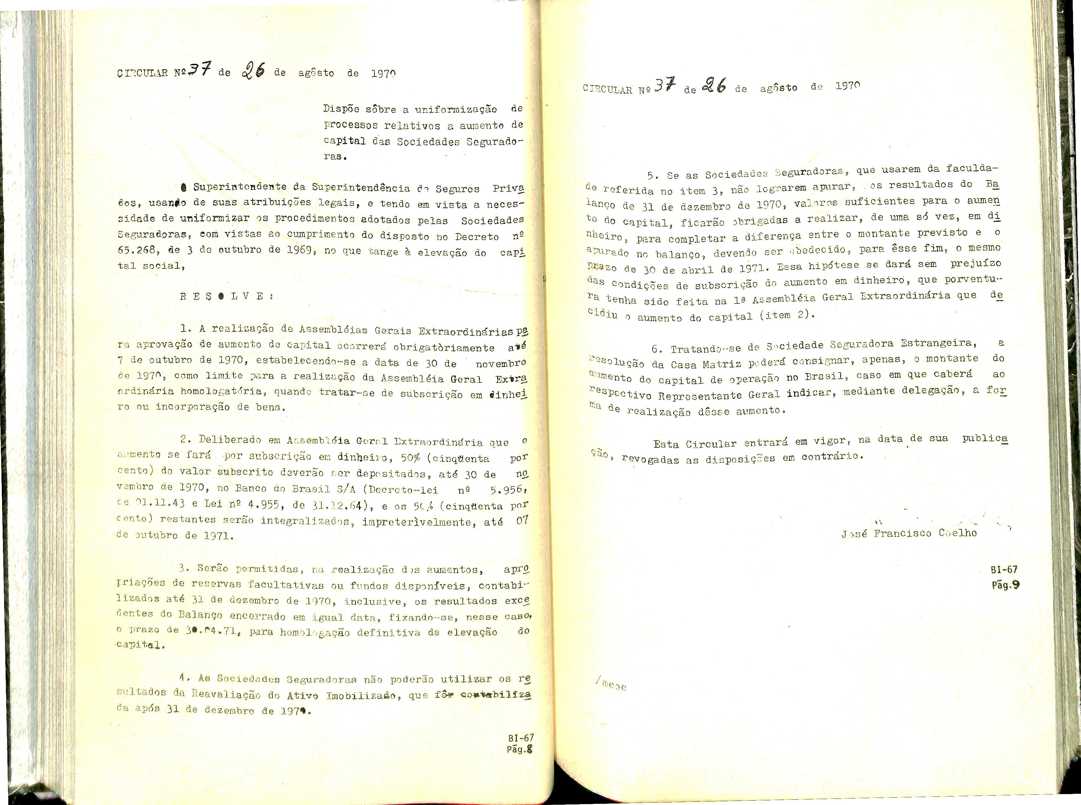 Os r esultados à e balanc o do mercado segurad or em J. 9 69, co nst it uiram-se em verd ad eira s urprêsa para us emp r esários e p a ra os ó rgãos do govê rno resp o ns á veis pelo setor Na ve rdacl i.: n ão h a via , a t é 31 óe d ezembw, <1 men or expec ta tiv a da s per_d as ocorr ida s e , pr üúc a mc.nie, general izad as Os re ultad o s p ositiv9S. d as aplicaç;<:ies mal deram pa ra çobrir os d.efcit s da operação, ta n to nas e m presas .: stra n gc irn s , como na s na~io na~S - Ent re es tas ~,, :::n~ }:· ~.:.is o.tmgidas, ex.-- Ámcn tc, a s grandes se gufaáoras. · D aí o pan o ra m a de 1970 , m arcado pe a pesq ui sa incess an te dos m otivos e ca usa s do ocorr ido.