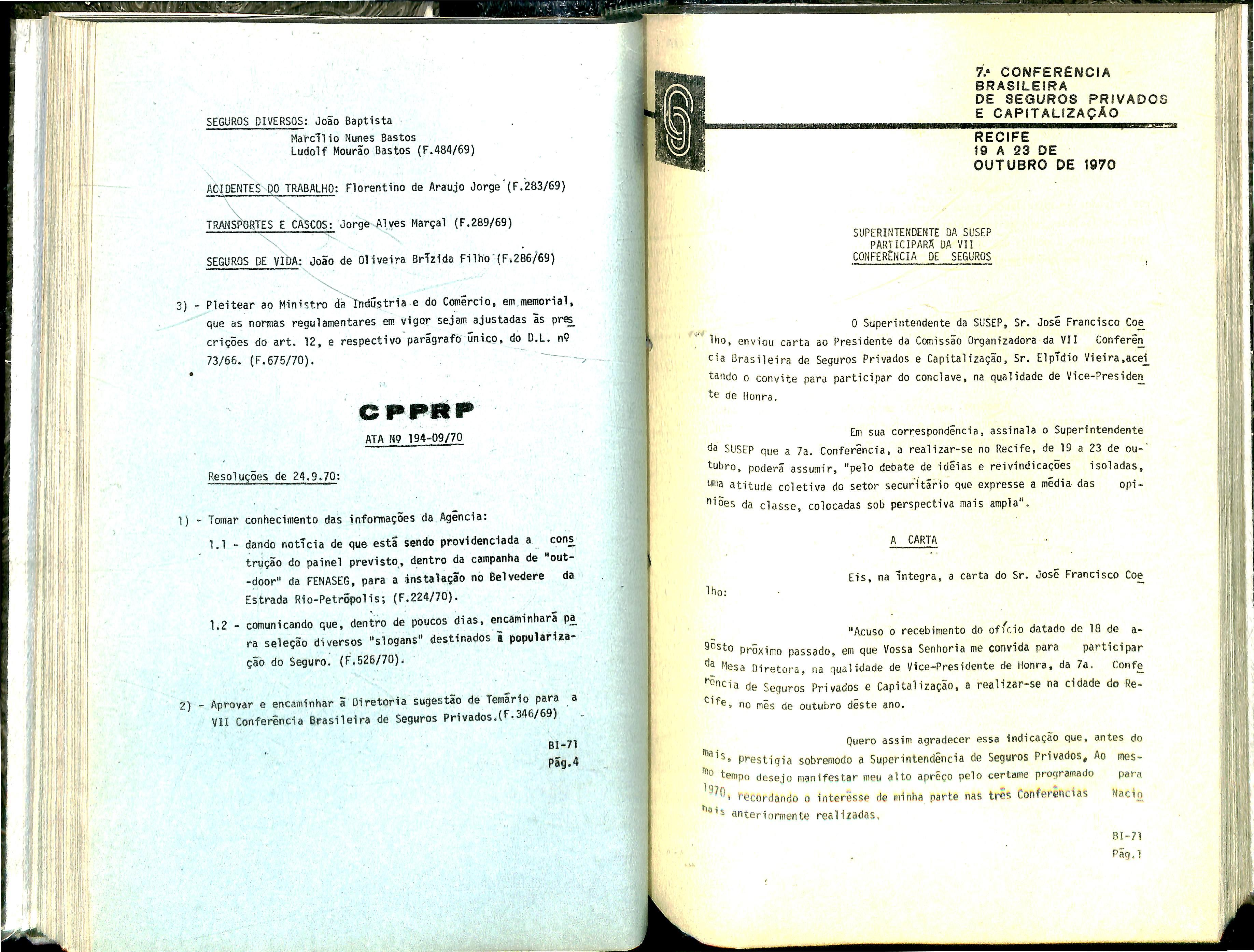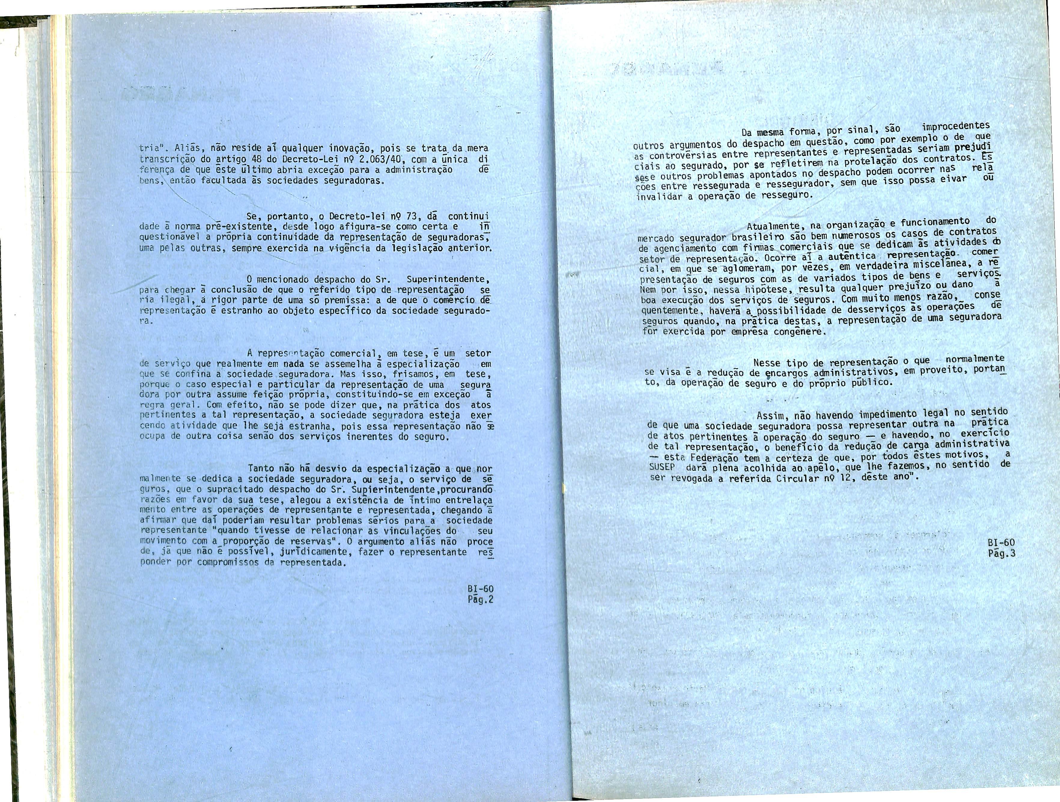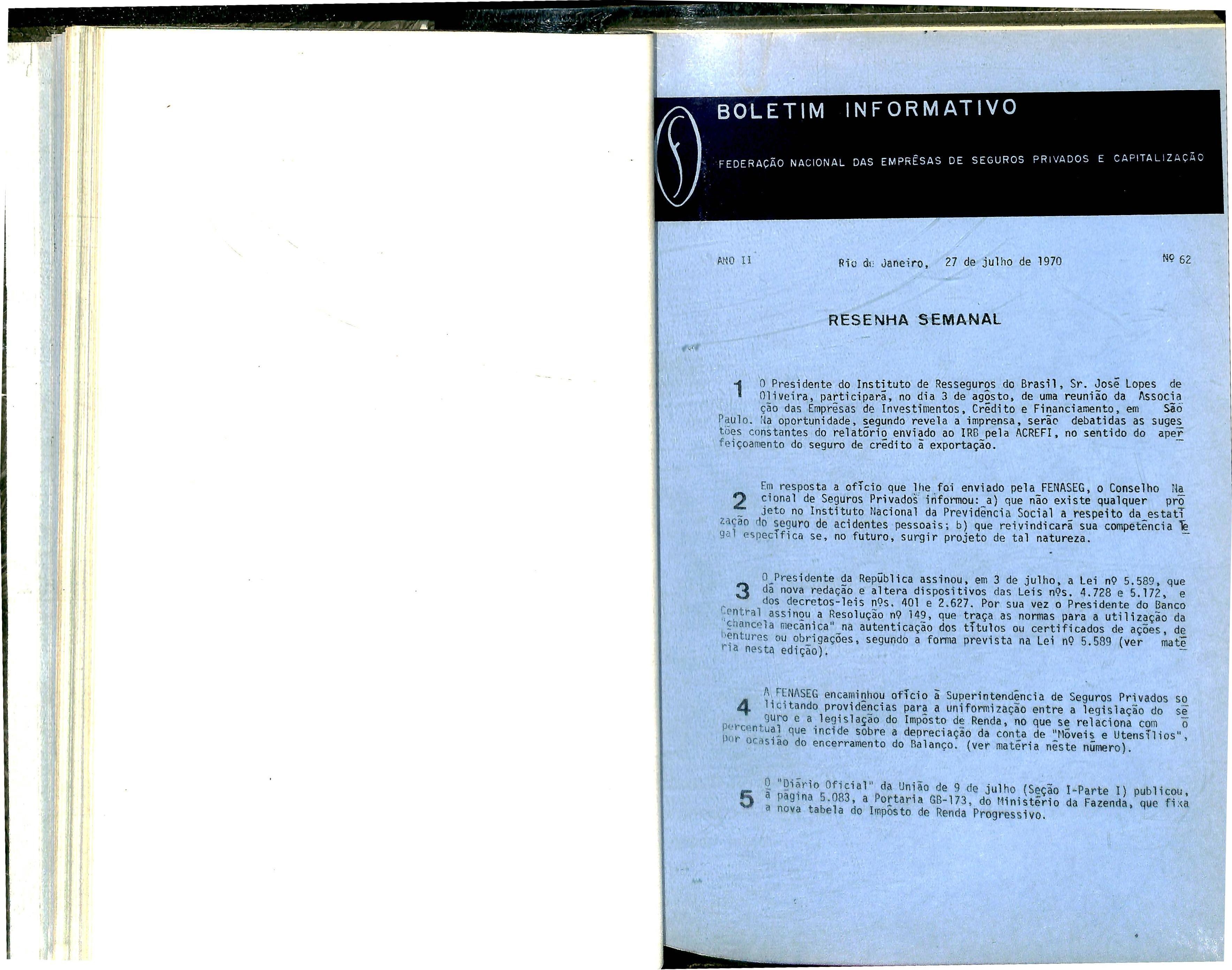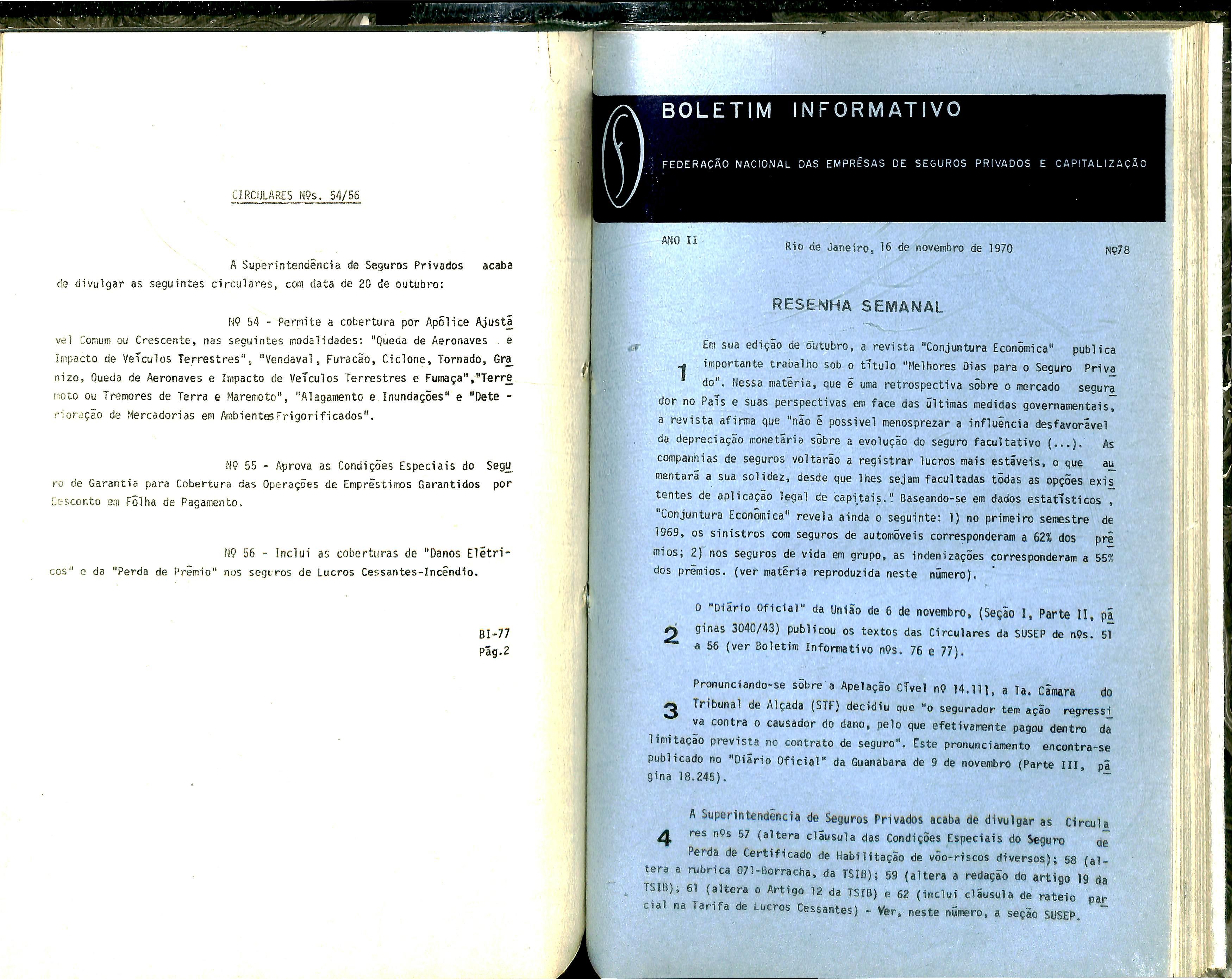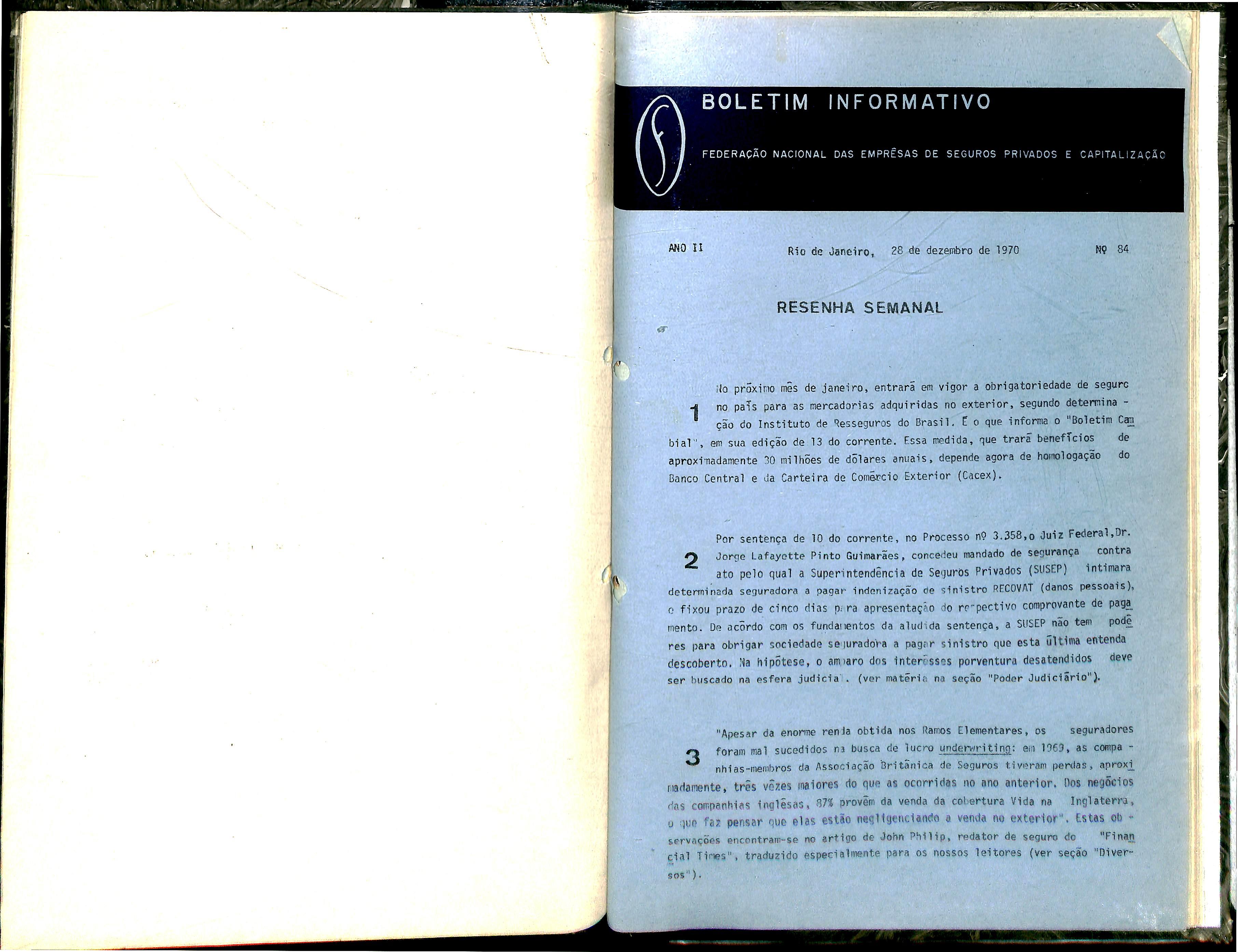 Os r esultados à e balanc o do mercado segurad or em J. 9 69, co nst it uiram-se em verd ad eira s urprêsa para us emp r esários e p a ra os ó rgãos do govê rno resp o ns á veis pelo setor Na ve rdacl i.: n ão h a via , a t é 31 óe d ezembw, <1 men or expec ta tiv a da s per_d as ocorr ida s e , pr üúc a mc.nie, general izad as Os re ultad o s p ositiv9S. d as aplicaç;<:ies mal deram pa ra çobrir os d.efcit s da operação, ta n to nas e m presas .: stra n gc irn s , como na s na~io na~S - Ent re es tas ~,, :::n~ }:· ~.:.is o.tmgidas, ex.-- Ámcn tc, a s grandes se gufaáoras. · D aí o pan o ra m a de 1970 , m arcado pe a pesq ui sa incess an te dos m otivos e ca usa s do ocorr ido.