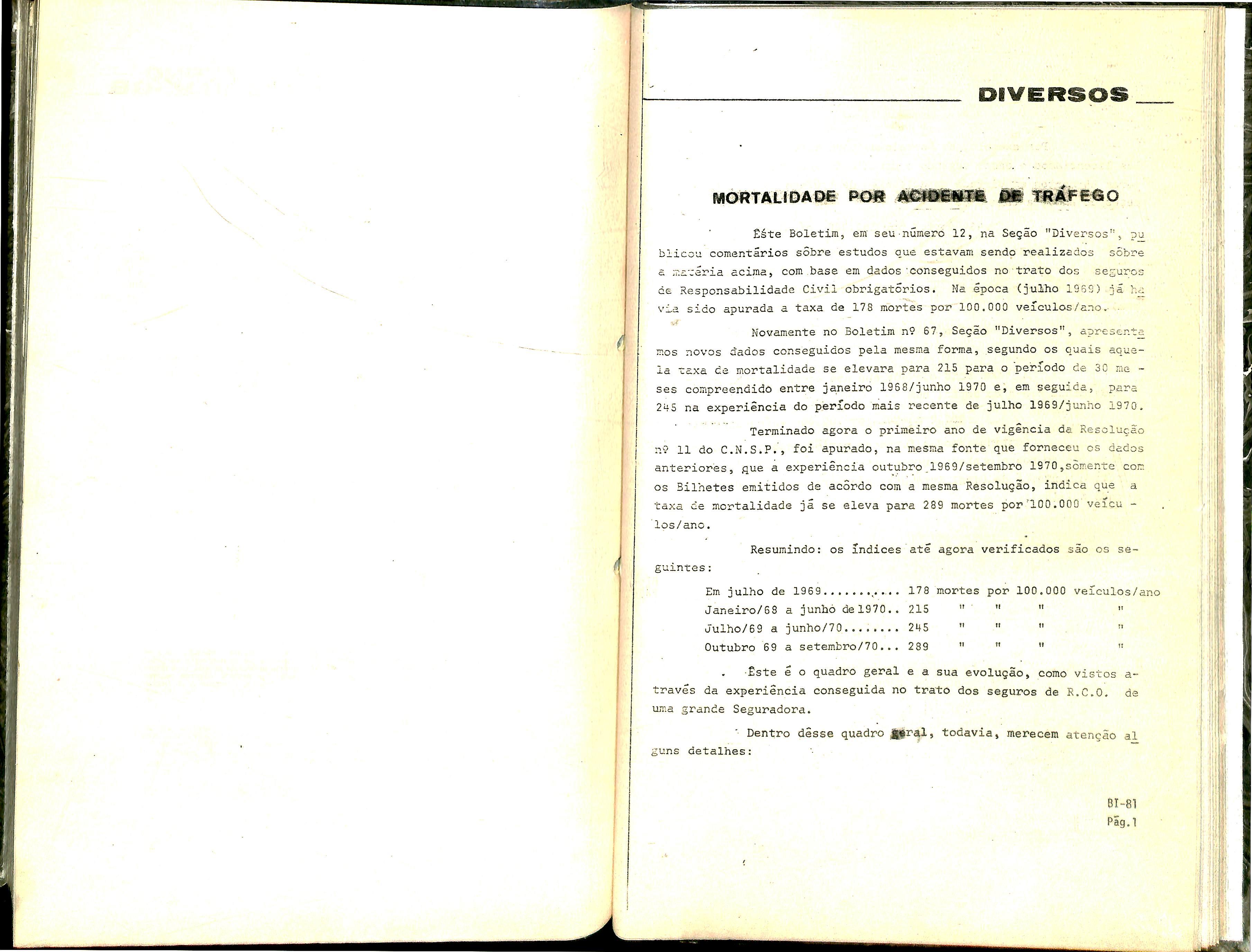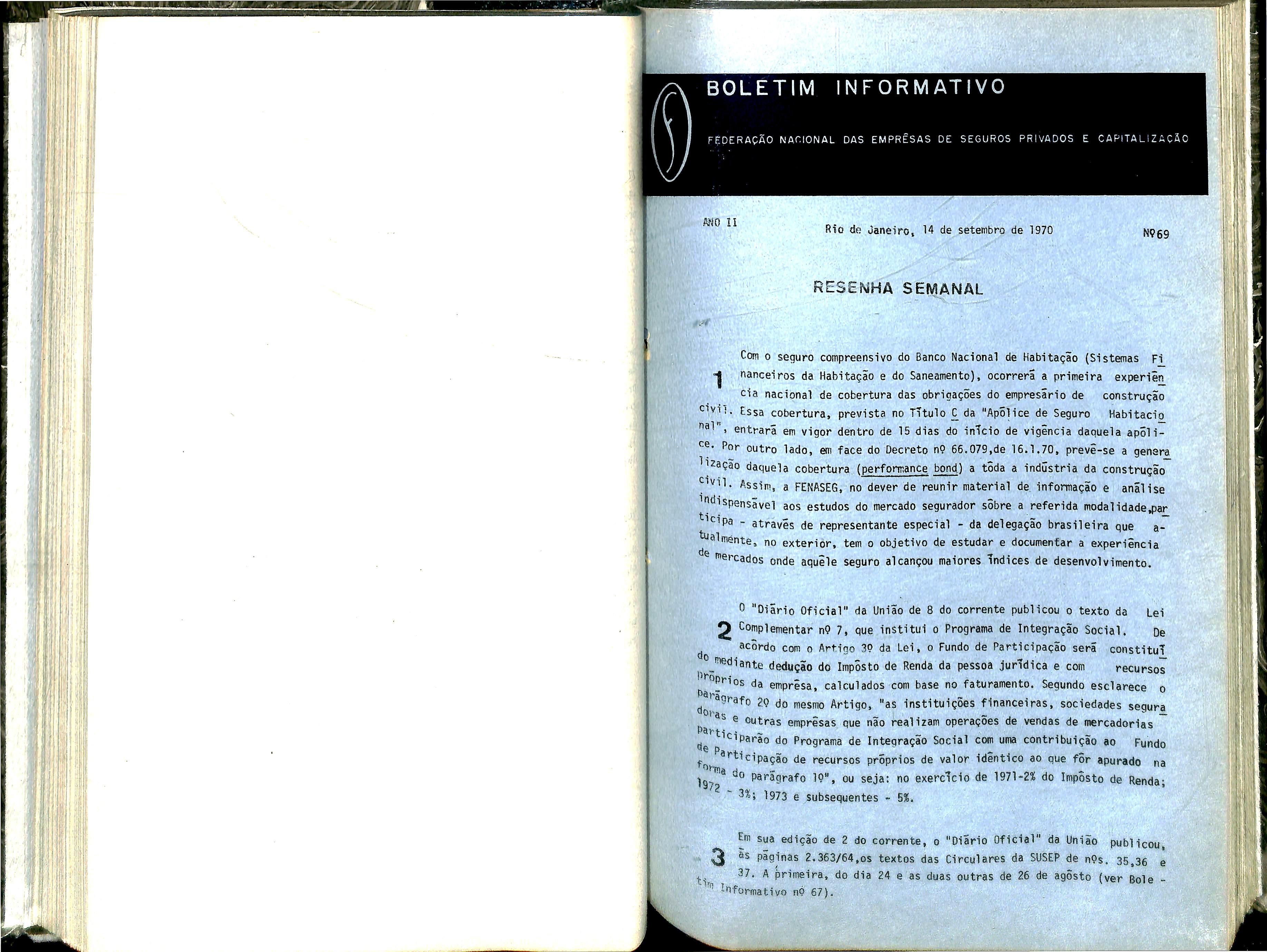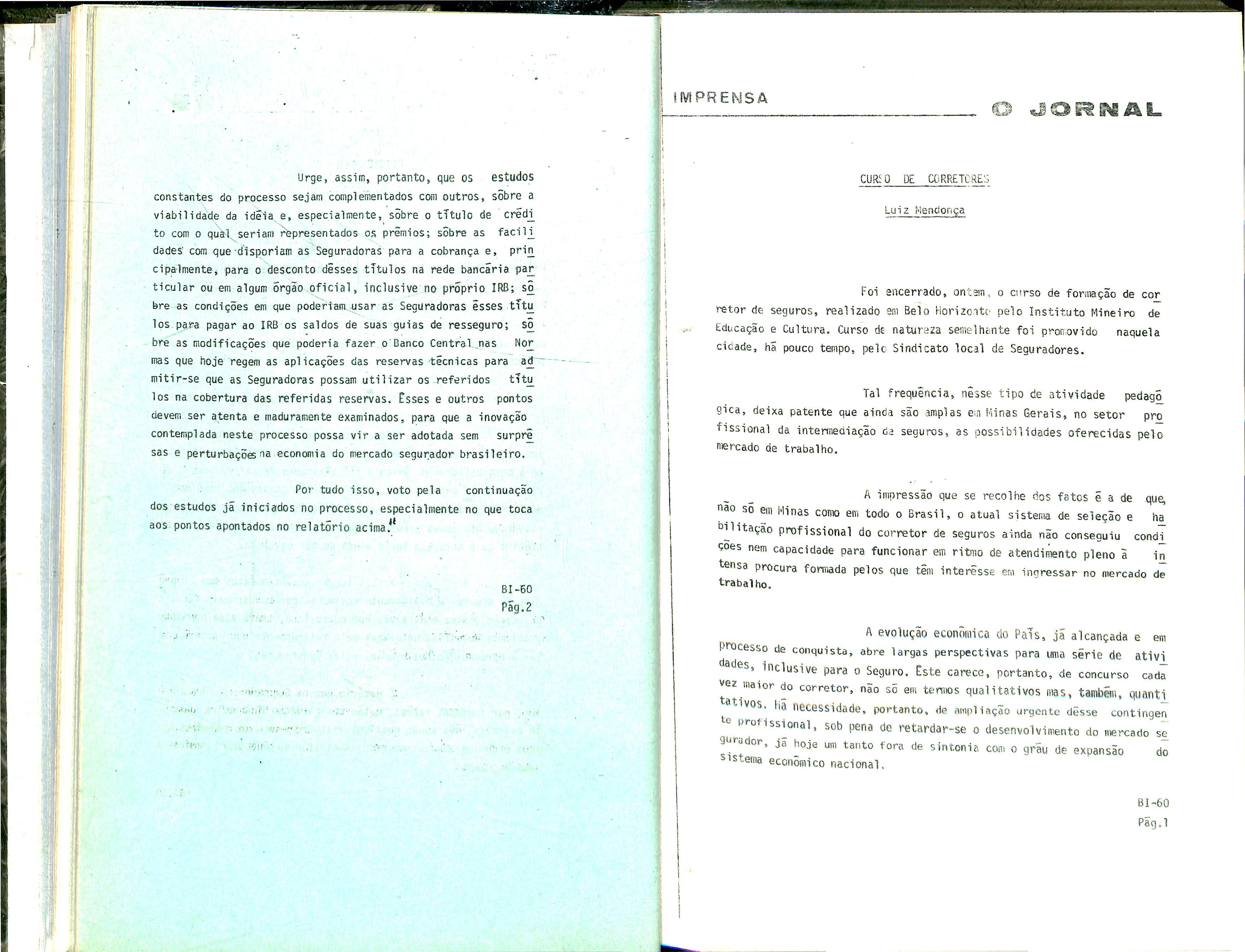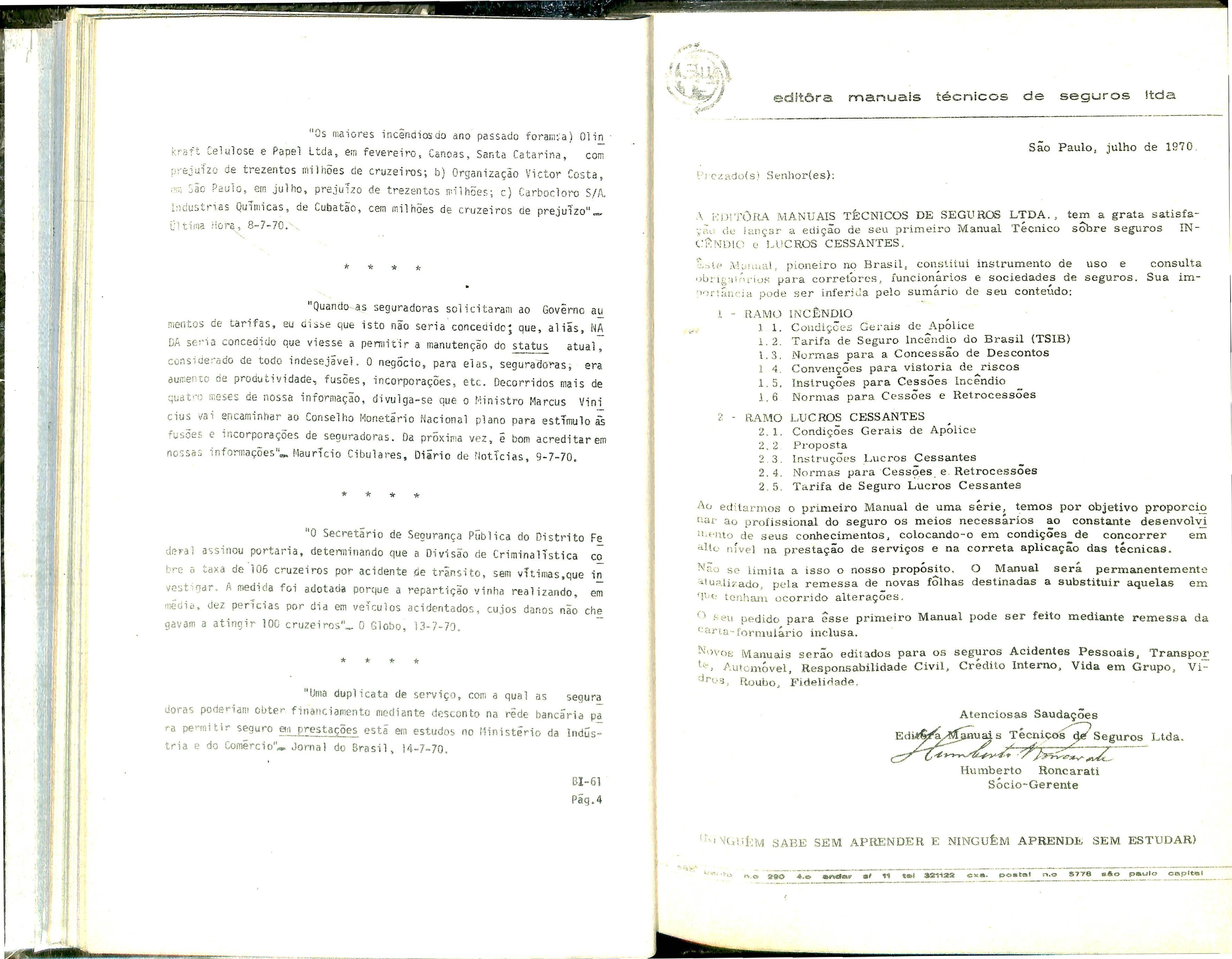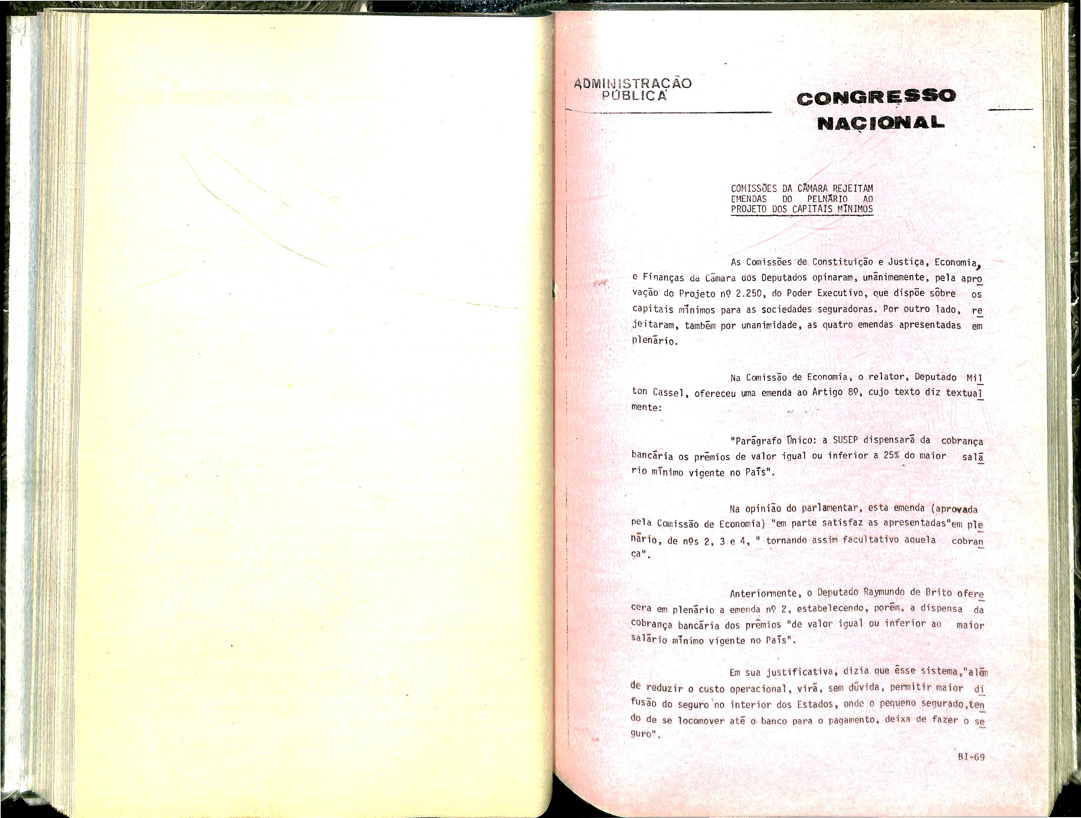 Os r esultados à e balanc o do mercado segurad or em J. 9 69, co nst it uiram-se em verd ad eira s urprêsa para us emp r esários e p a ra os ó rgãos do govê rno resp o ns á veis pelo setor Na ve rdacl i.: n ão h a via , a t é 31 óe d ezembw, <1 men or expec ta tiv a da s per_d as ocorr ida s e , pr üúc a mc.nie, general izad as Os re ultad o s p ositiv9S. d as aplicaç;<:ies mal deram pa ra çobrir os d.efcit s da operação, ta n to nas e m presas .: stra n gc irn s , como na s na~io na~S - Ent re es tas ~,, :::n~ }:· ~.:.is o.tmgidas, ex.-- Ámcn tc, a s grandes se gufaáoras. · D aí o pan o ra m a de 1970 , m arcado pe a pesq ui sa incess an te dos m otivos e ca usa s do ocorr ido.