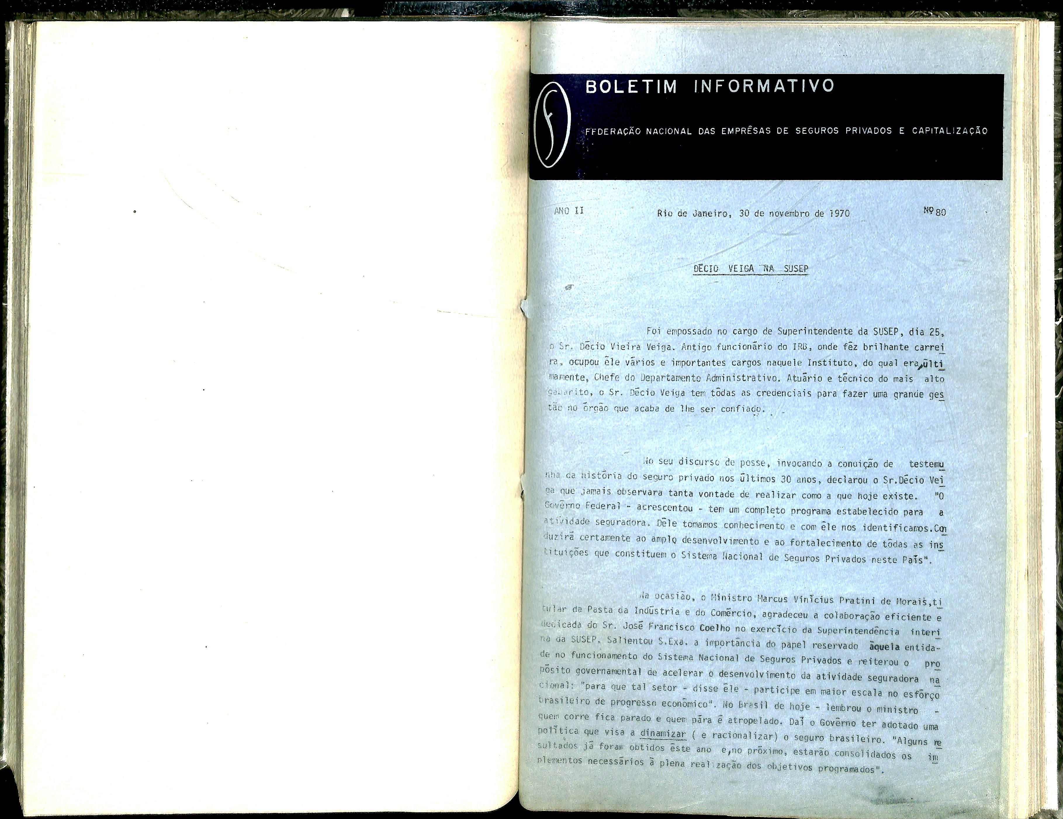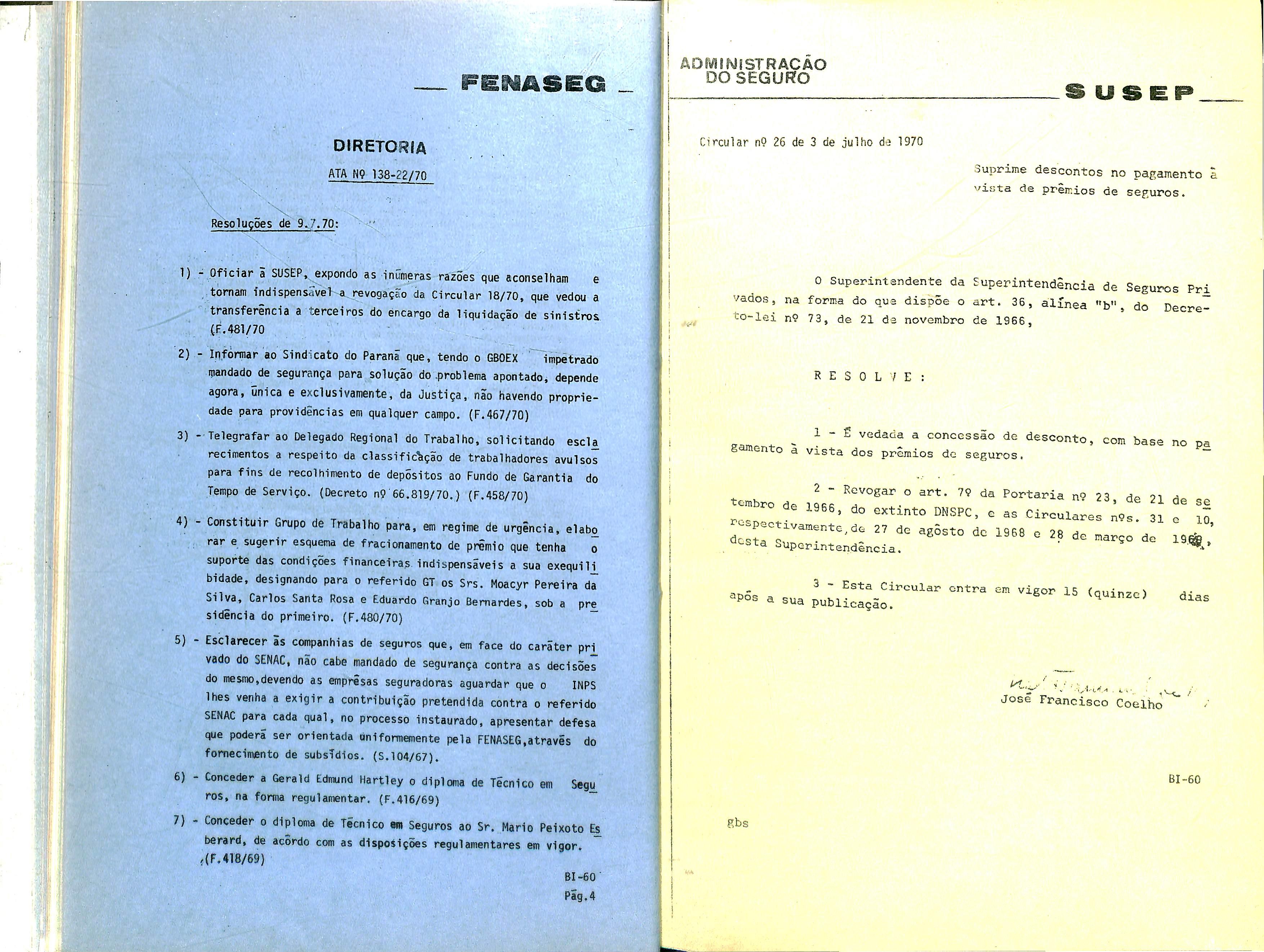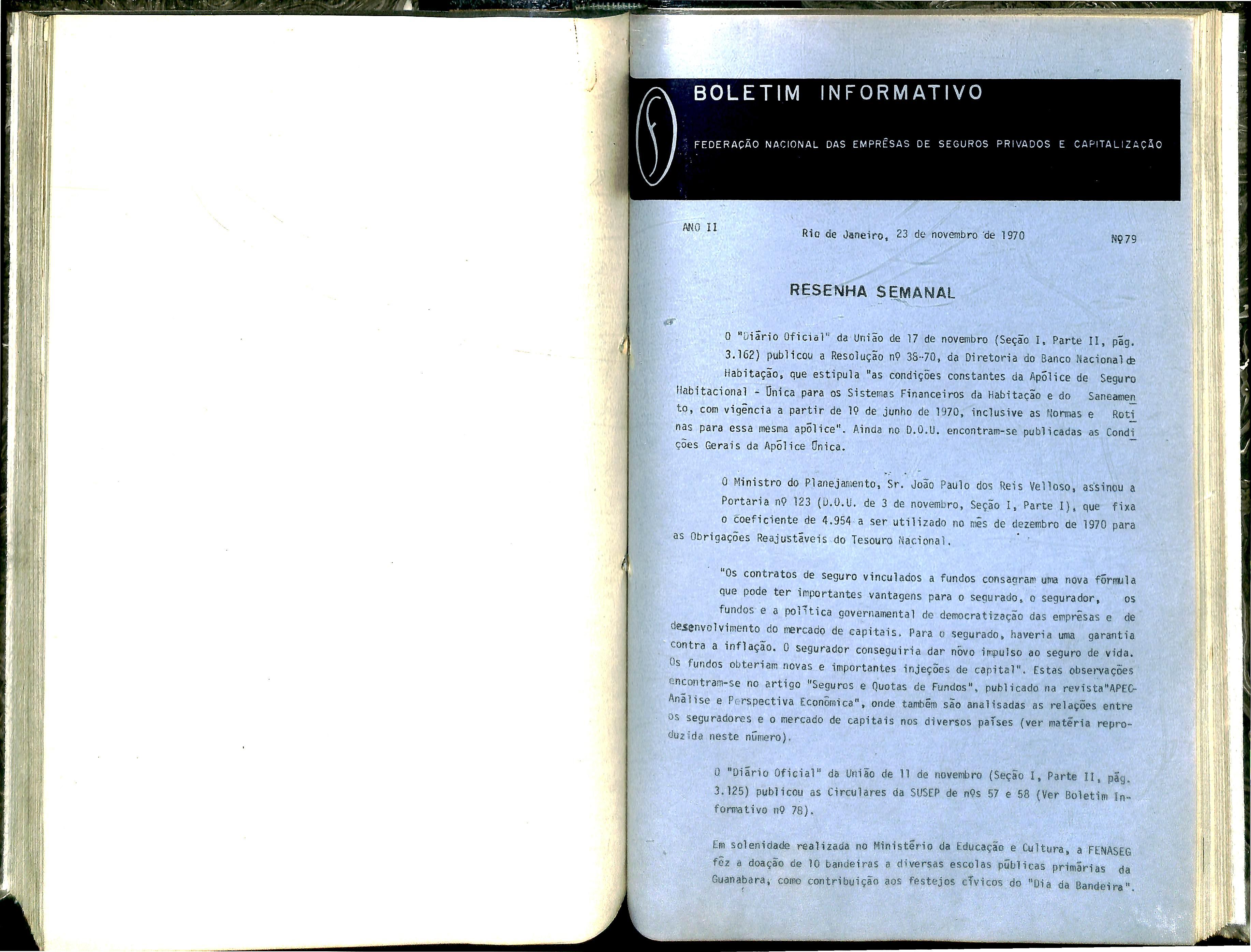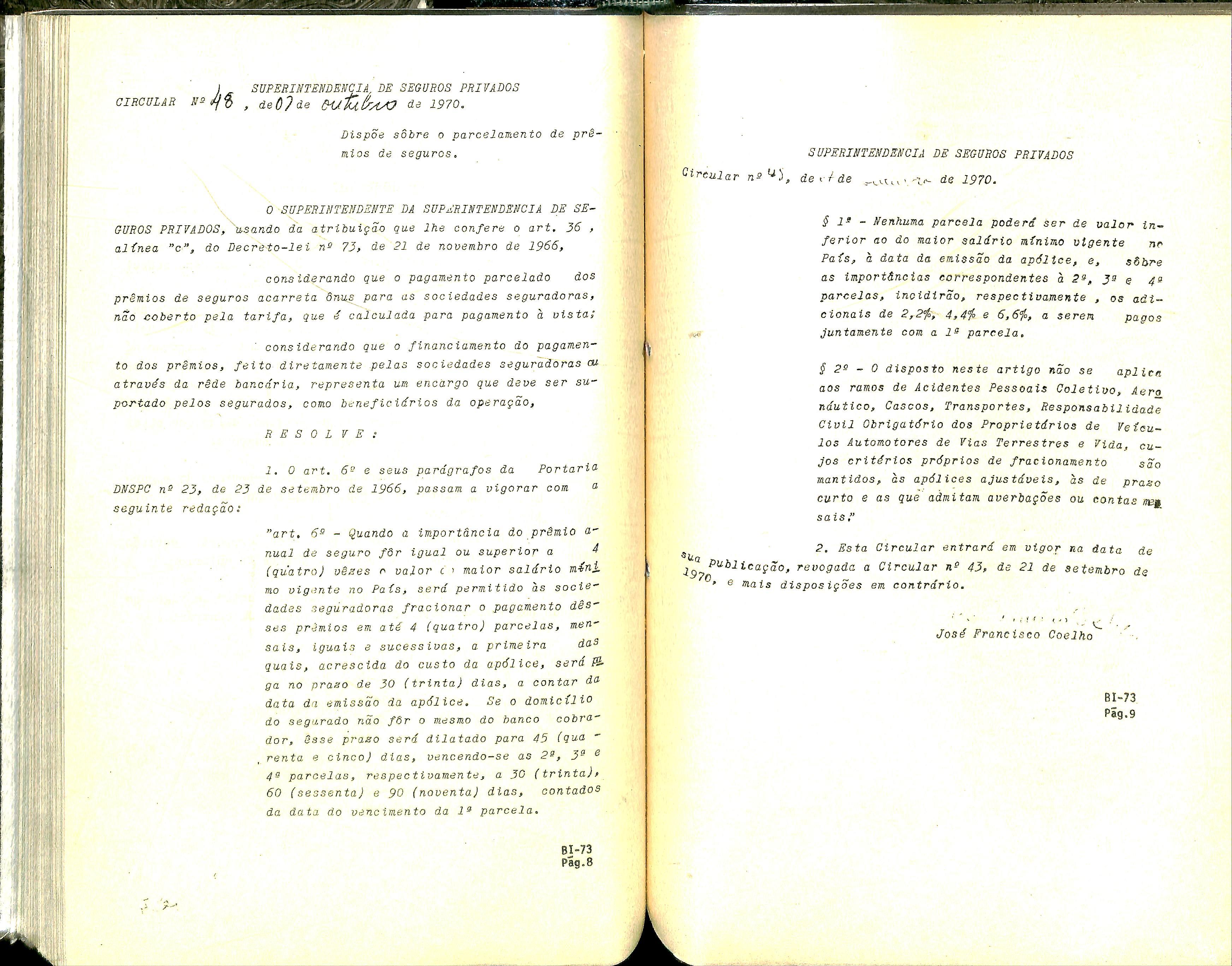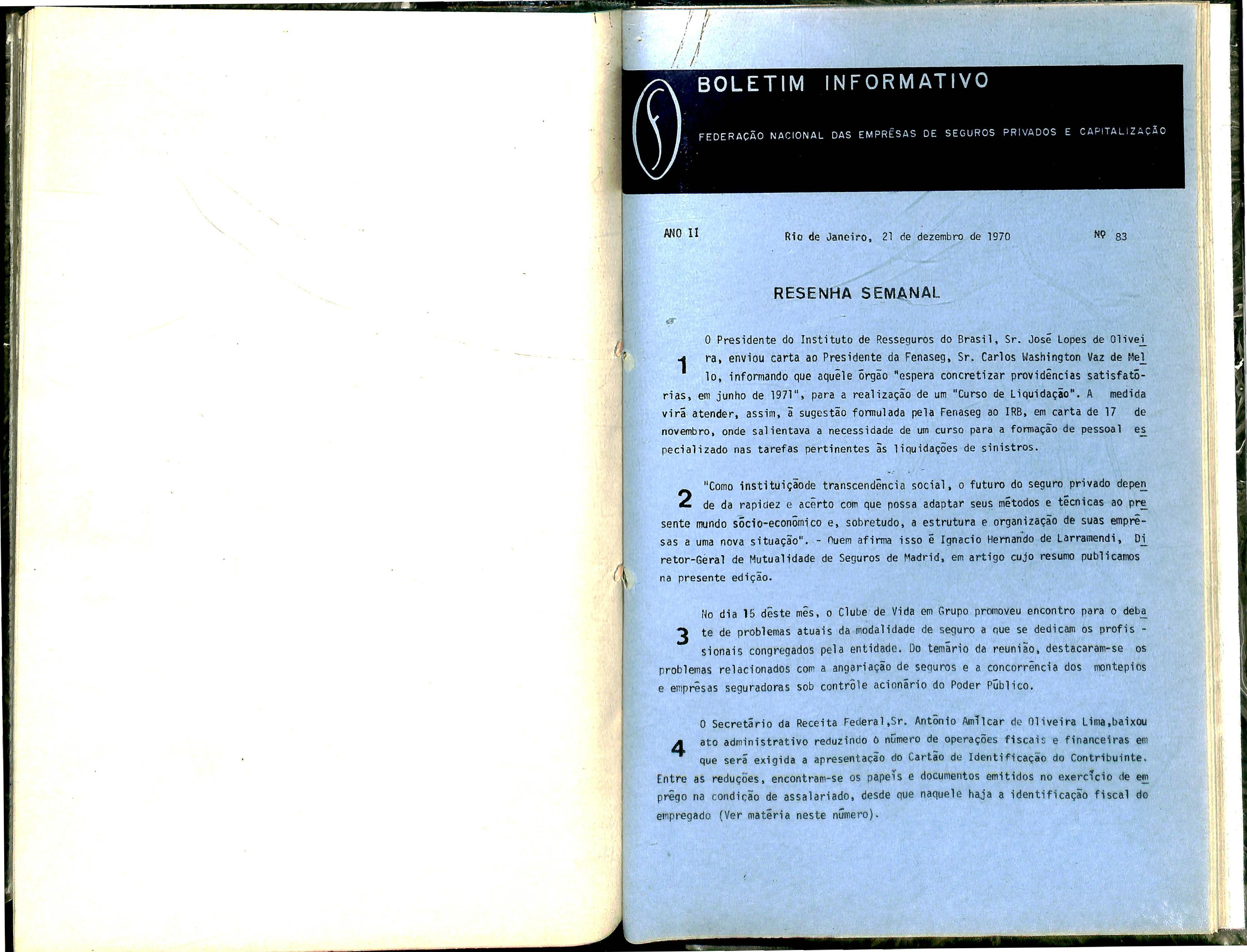 Os r esultados à e balanc o do mercado segurad or em J. 9 69, co nst it uiram-se em verd ad eira s urprêsa para us emp r esários e p a ra os ó rgãos do govê rno resp o ns á veis pelo setor Na ve rdacl i.: n ão h a via , a t é 31 óe d ezembw, <1 men or expec ta tiv a da s per_d as ocorr ida s e , pr üúc a mc.nie, general izad as Os re ultad o s p ositiv9S. d as aplicaç;<:ies mal deram pa ra çobrir os d.efcit s da operação, ta n to nas e m presas .: stra n gc irn s , como na s na~io na~S - Ent re es tas ~,, :::n~ }:· ~.:.is o.tmgidas, ex.-- Ámcn tc, a s grandes se gufaáoras. · D aí o pan o ra m a de 1970 , m arcado pe a pesq ui sa incess an te dos m otivos e ca usa s do ocorr ido.