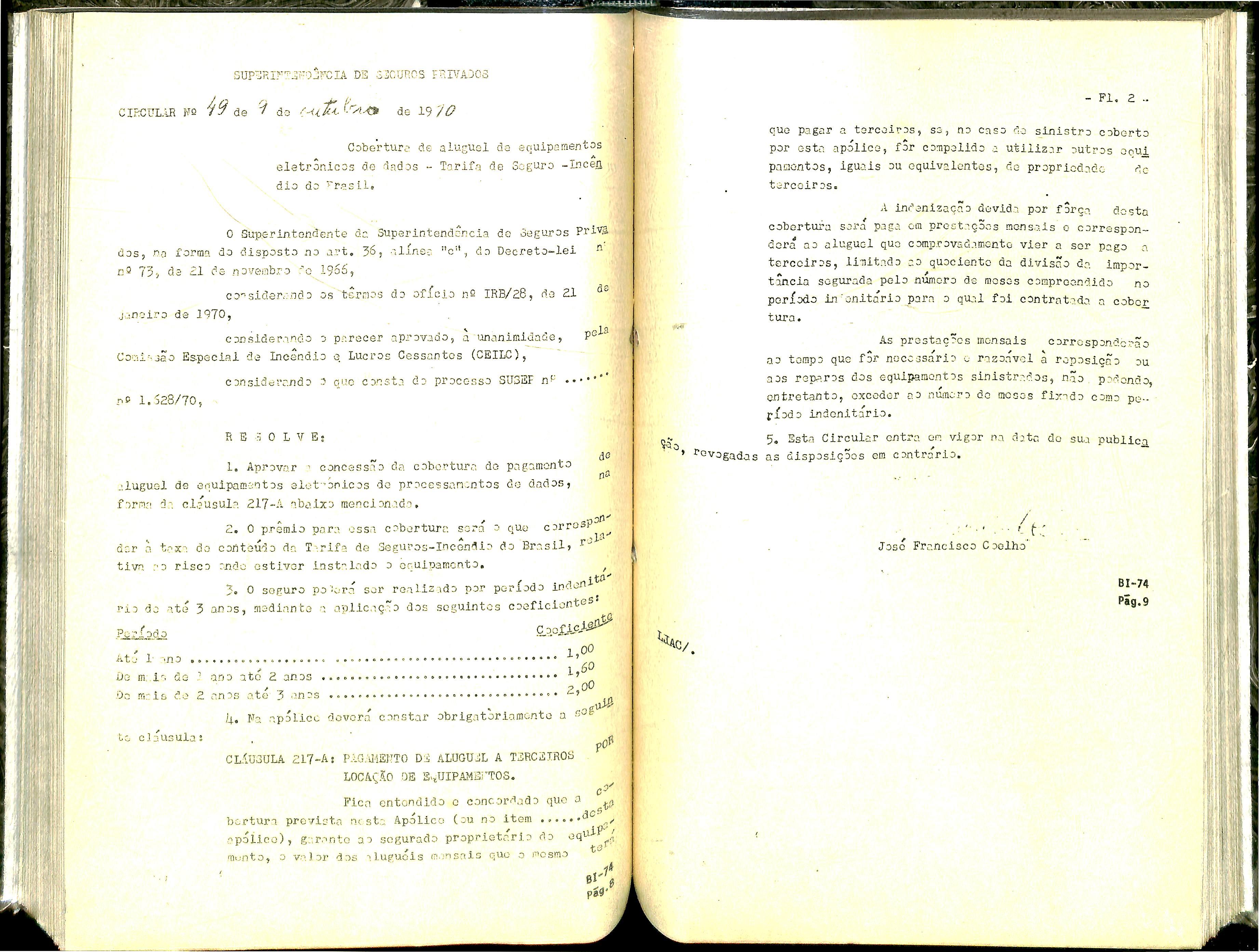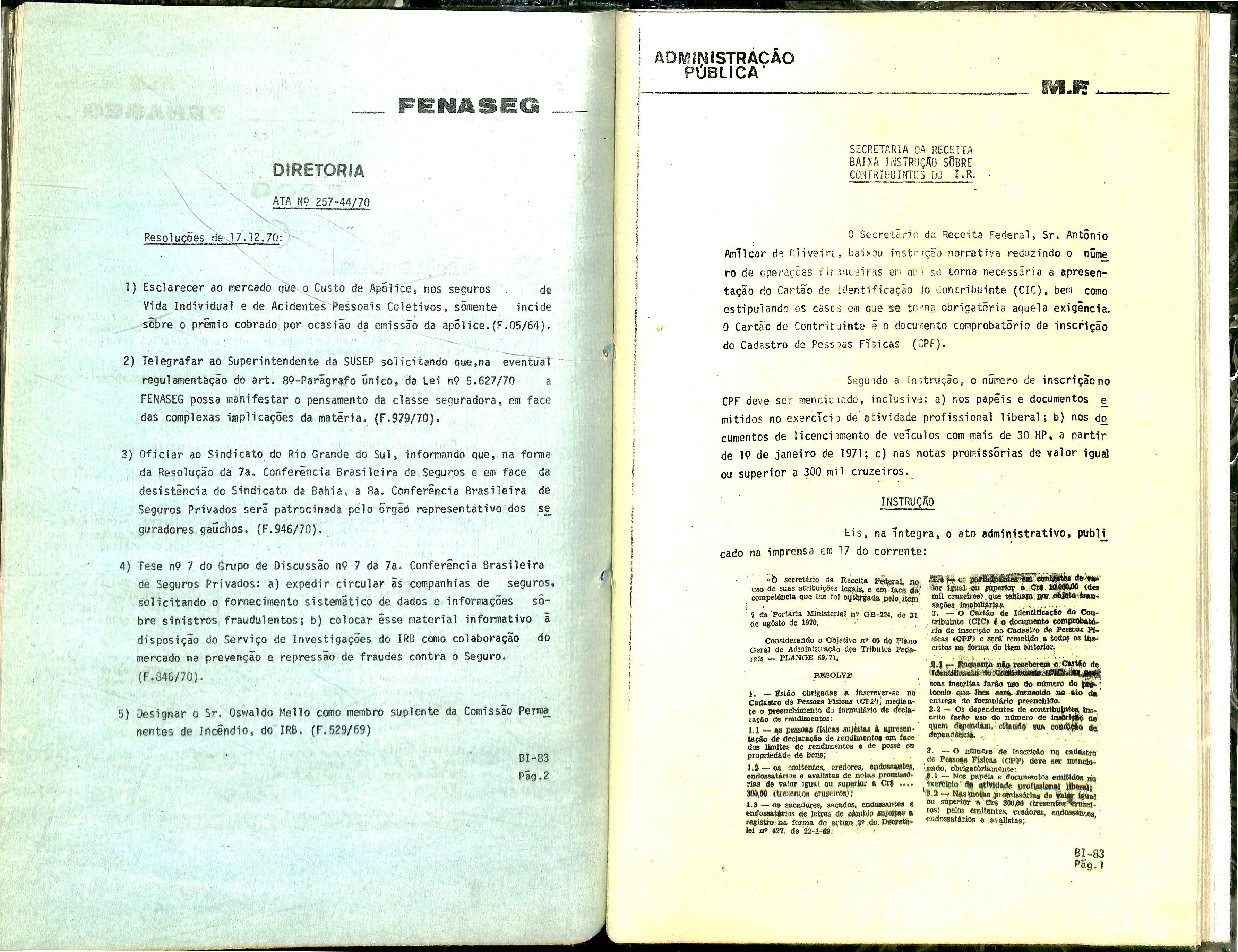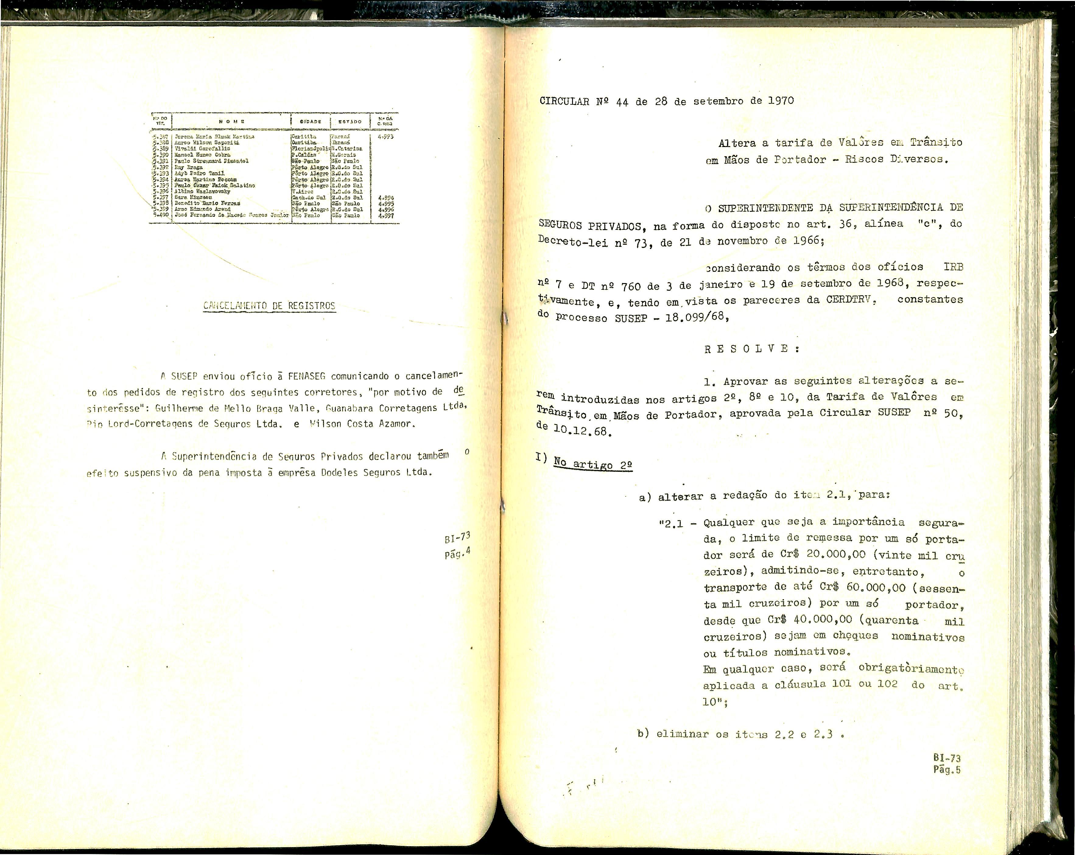 " · · ·.Por es sa ra~ão, es~~ Fede rração vem · s oli ci t a r que, ao i n vês do fornj.ilãrio pr ev i sto na s upra citada Por tar ia nQ 18 ..do e xt i nto DNSPC 1 as so cie9ades s egu r adora, s pudessem ap resen tà r , para cumpr i mento d~ Circ.~lar nQ 16/ 70, da ~USEP , de cla raçãoidênt i c a ã dec laração da rend imen t os e nc ami nhada ã Secre t a ria da R~ cei t il Fe deral",