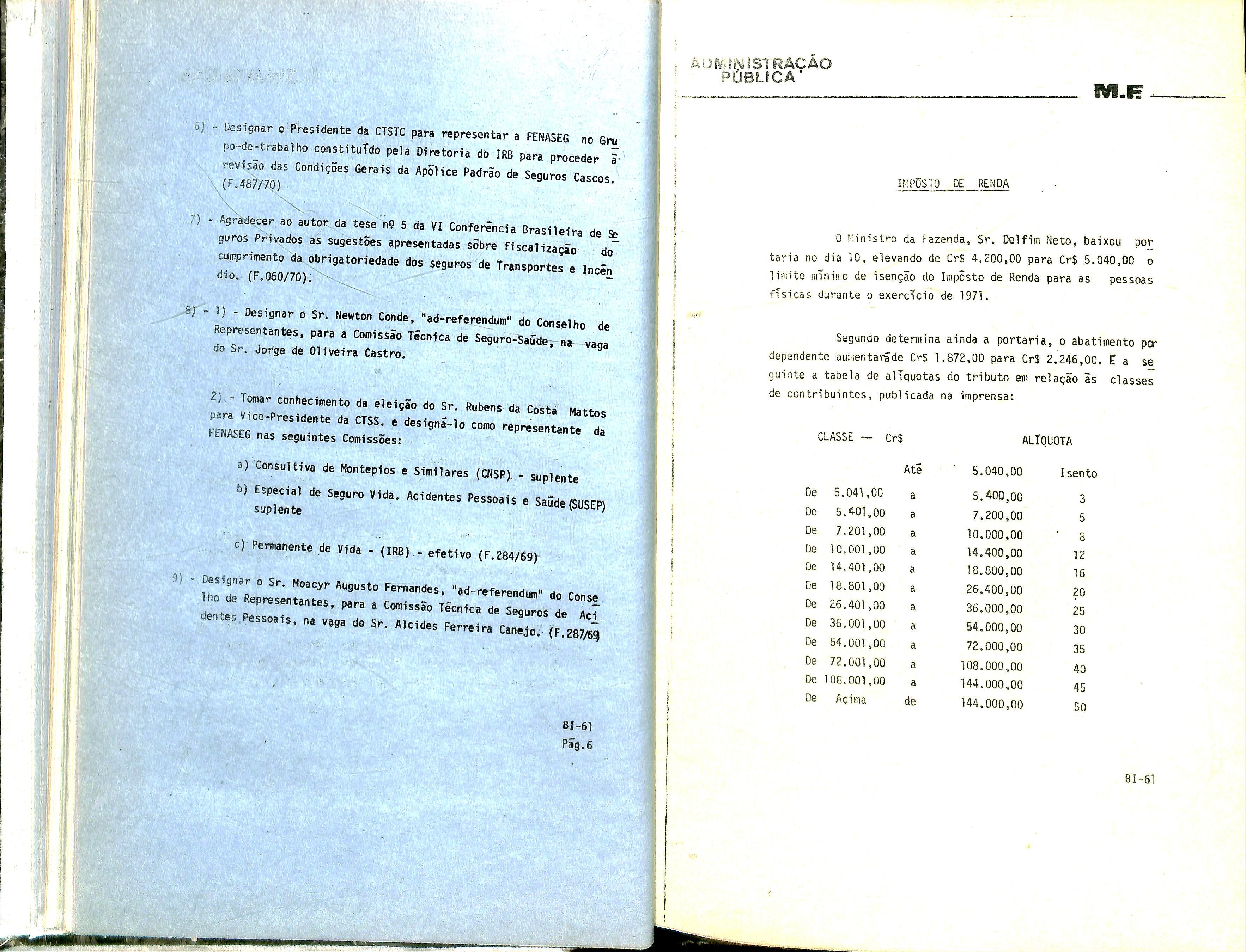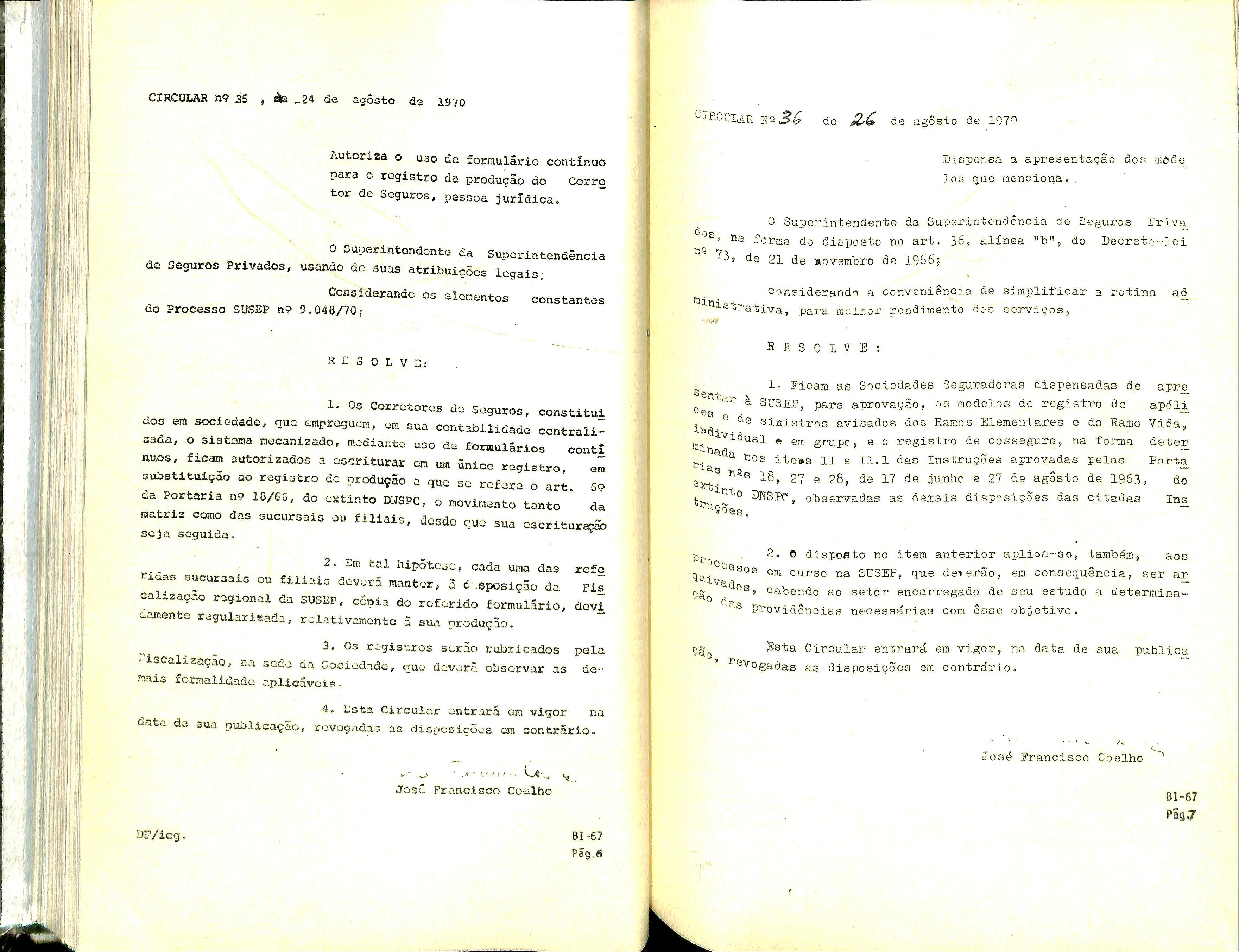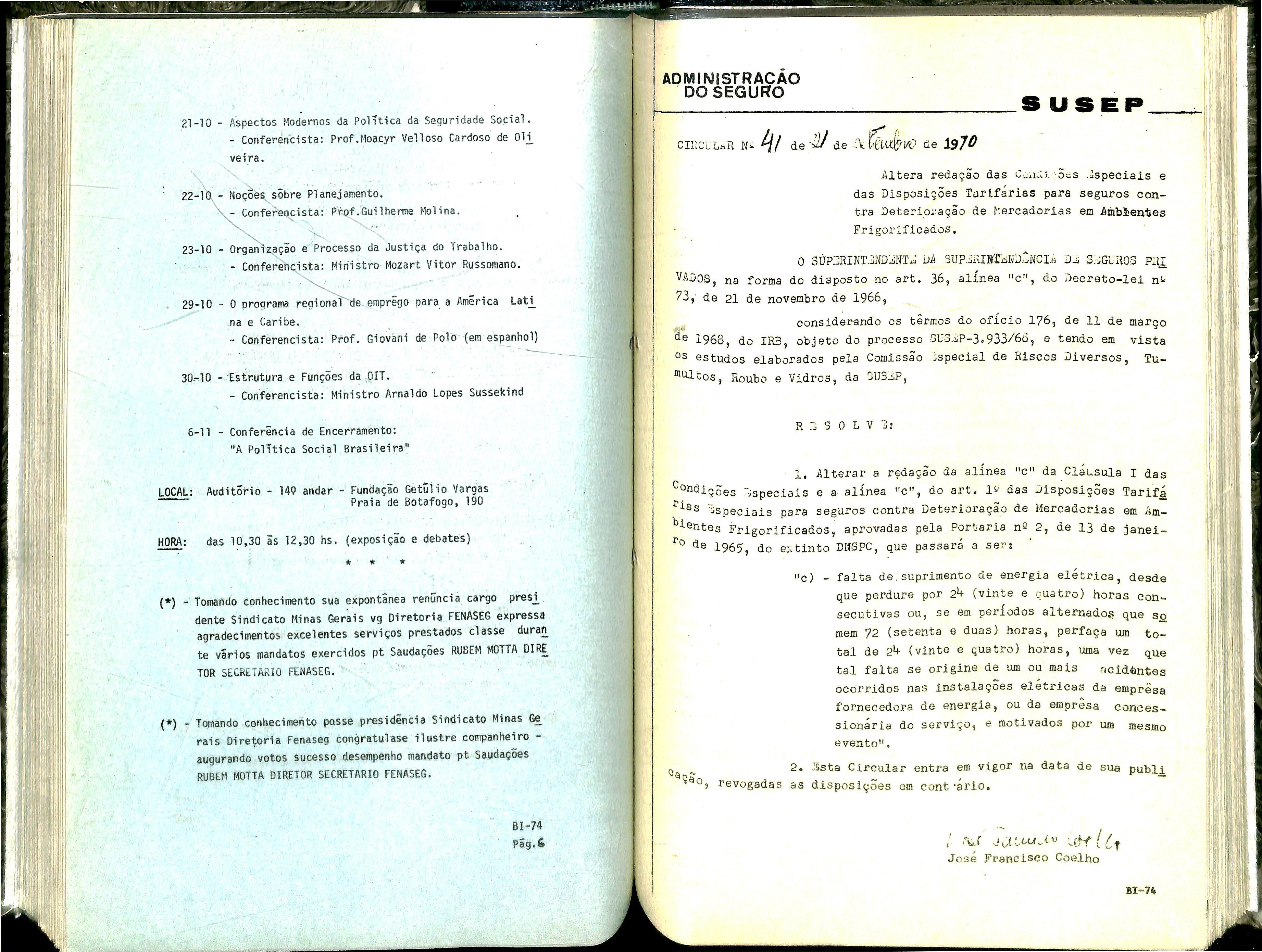 " · · ·.Por es sa ra~ão, es~~ Fede rração vem · s oli ci t a r que, ao i n vês do fornj.ilãrio pr ev i sto na s upra citada Por tar ia nQ 18 ..do e xt i nto DNSPC 1 as so cie9ades s egu r adora, s pudessem ap resen tà r , para cumpr i mento d~ Circ.~lar nQ 16/ 70, da ~USEP , de cla raçãoidênt i c a ã dec laração da rend imen t os e nc ami nhada ã Secre t a ria da R~ cei t il Fe deral",