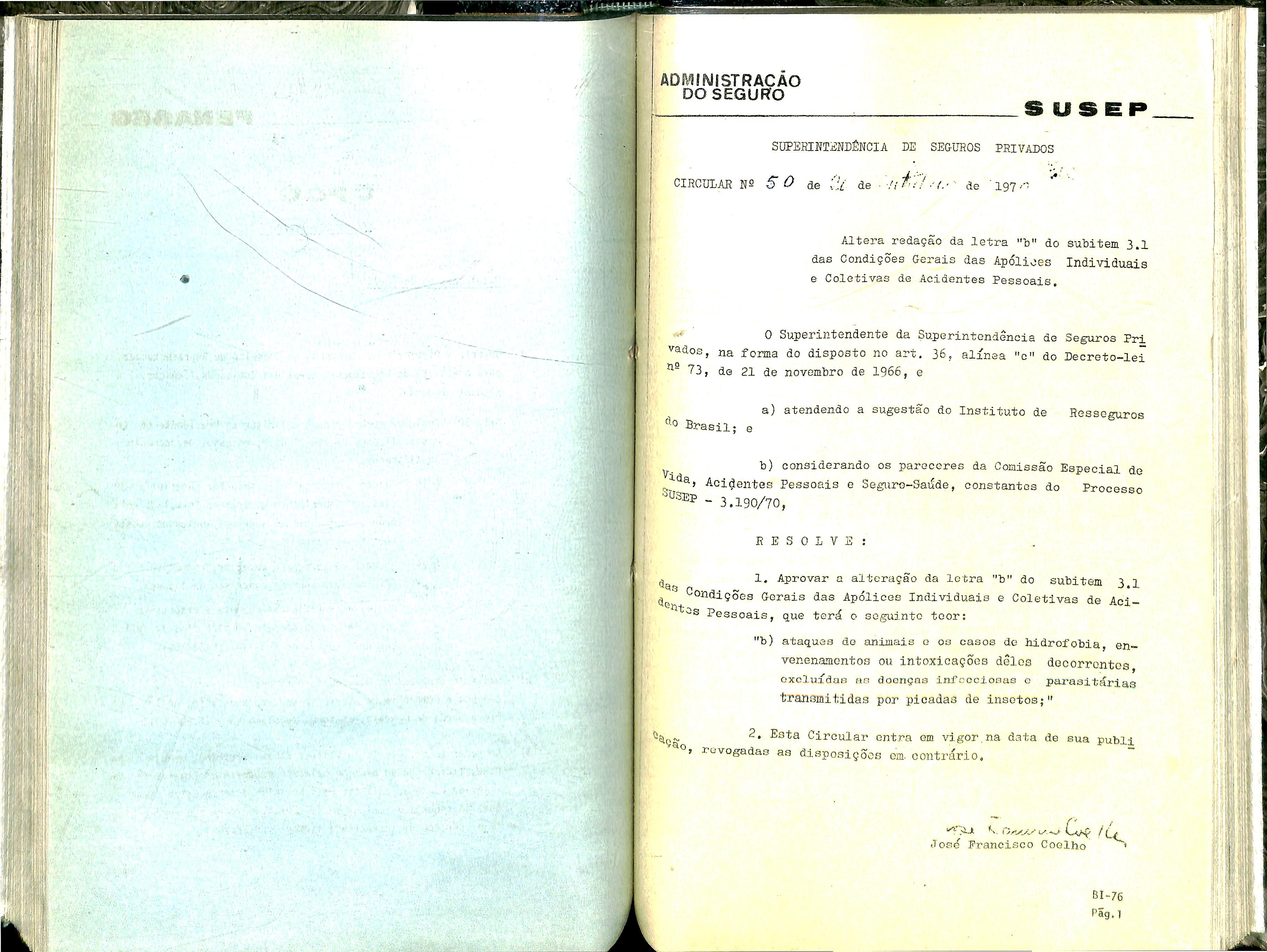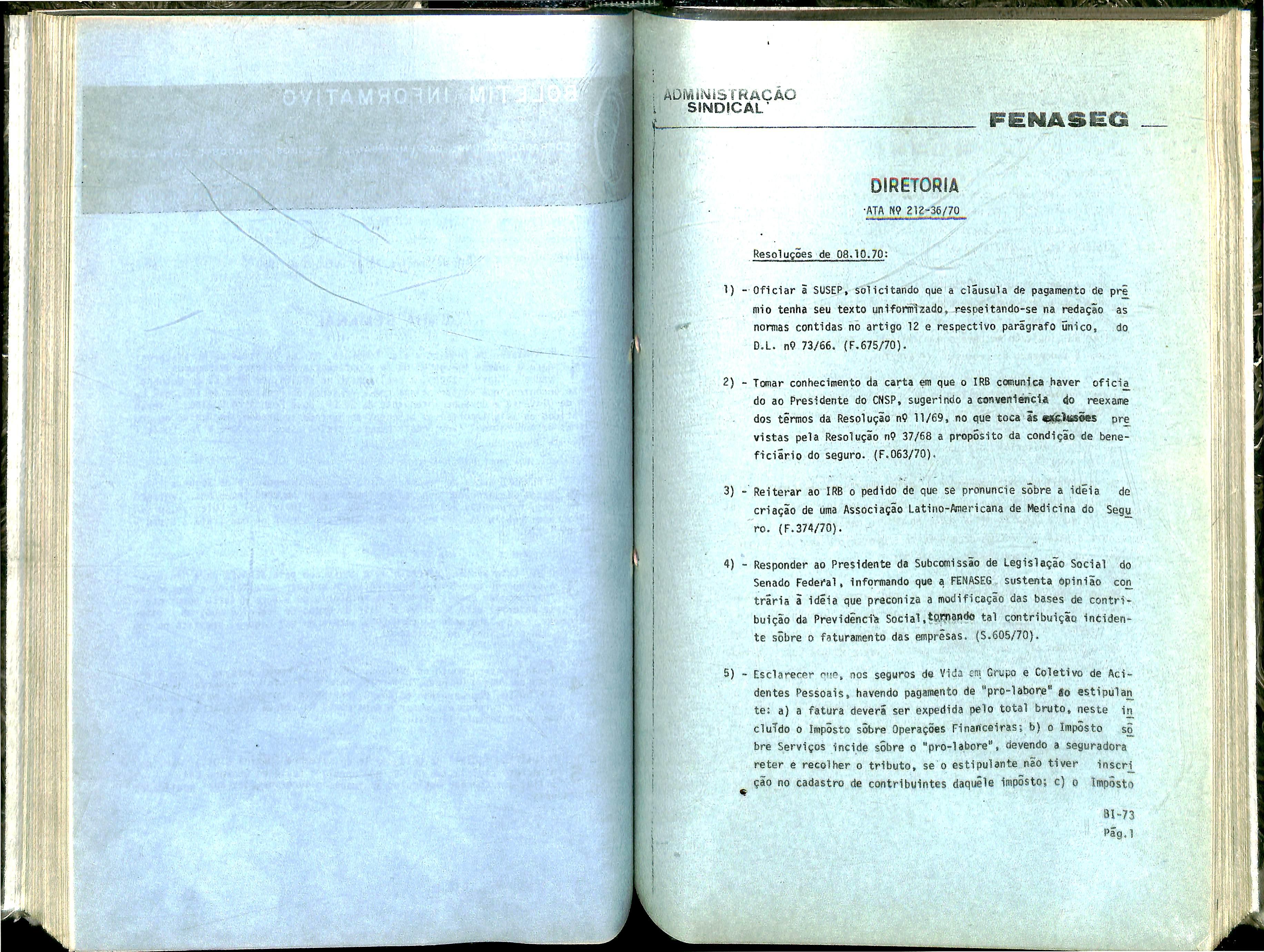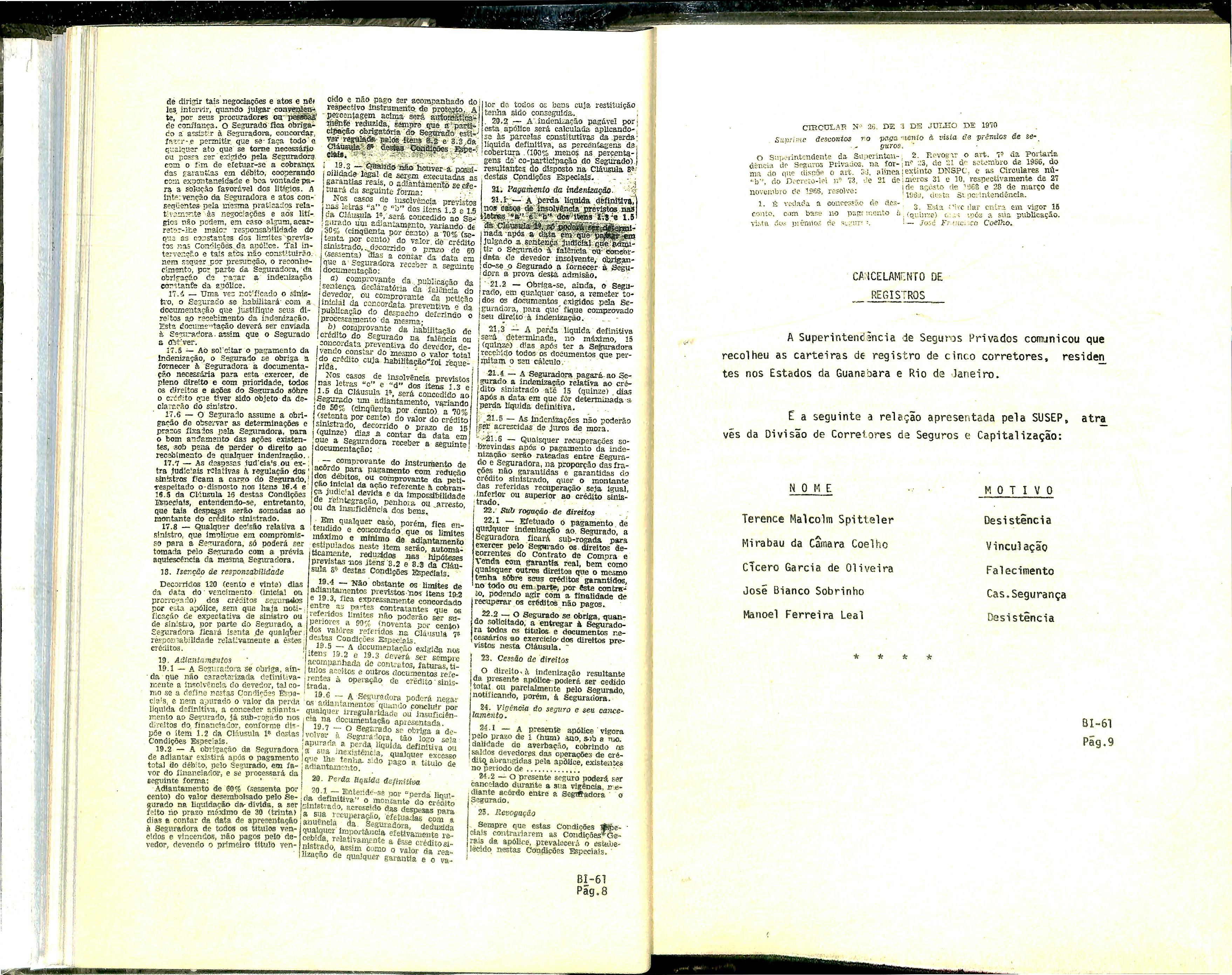8} : ·Toma~ conhecimento, at r aves·de comun i cação do Sr. Edltllndo ~l ves Abib, membro da Comiss ão Espec ía 1 de Seguro de Vida, Aci,~e ~tes Pessoais e Saúde, de que no citado· õrgão transi ta processo·•originã~io do CNSP no qua 1 se cogita de ex clui r do sistema de , co~rariç~ ., billlcâr.ia obrigatõrta -as ope·rações de seguro do ramo Vida I ndividual.(F.317/67).