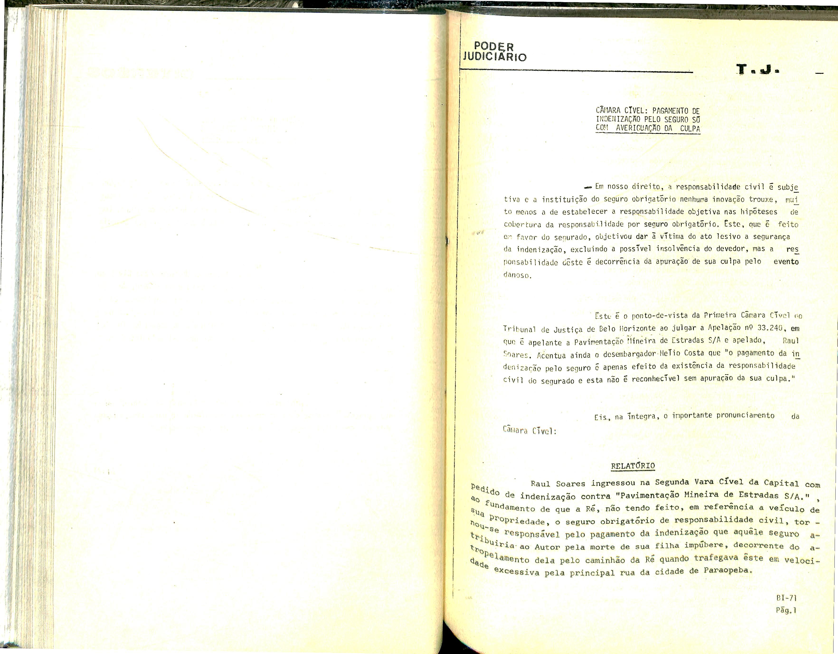 IV - Segundo as informações, a obrigação de proceder a ime dia ta liquidação do sinistro, em s e tratando de seguro obrigatório d~ res po nsabi li da de ci vil, decorreria do estabelecido no item 7. 1, da Resoluça o nQ 25/ 67 , do CNSP, ã época vigent~.