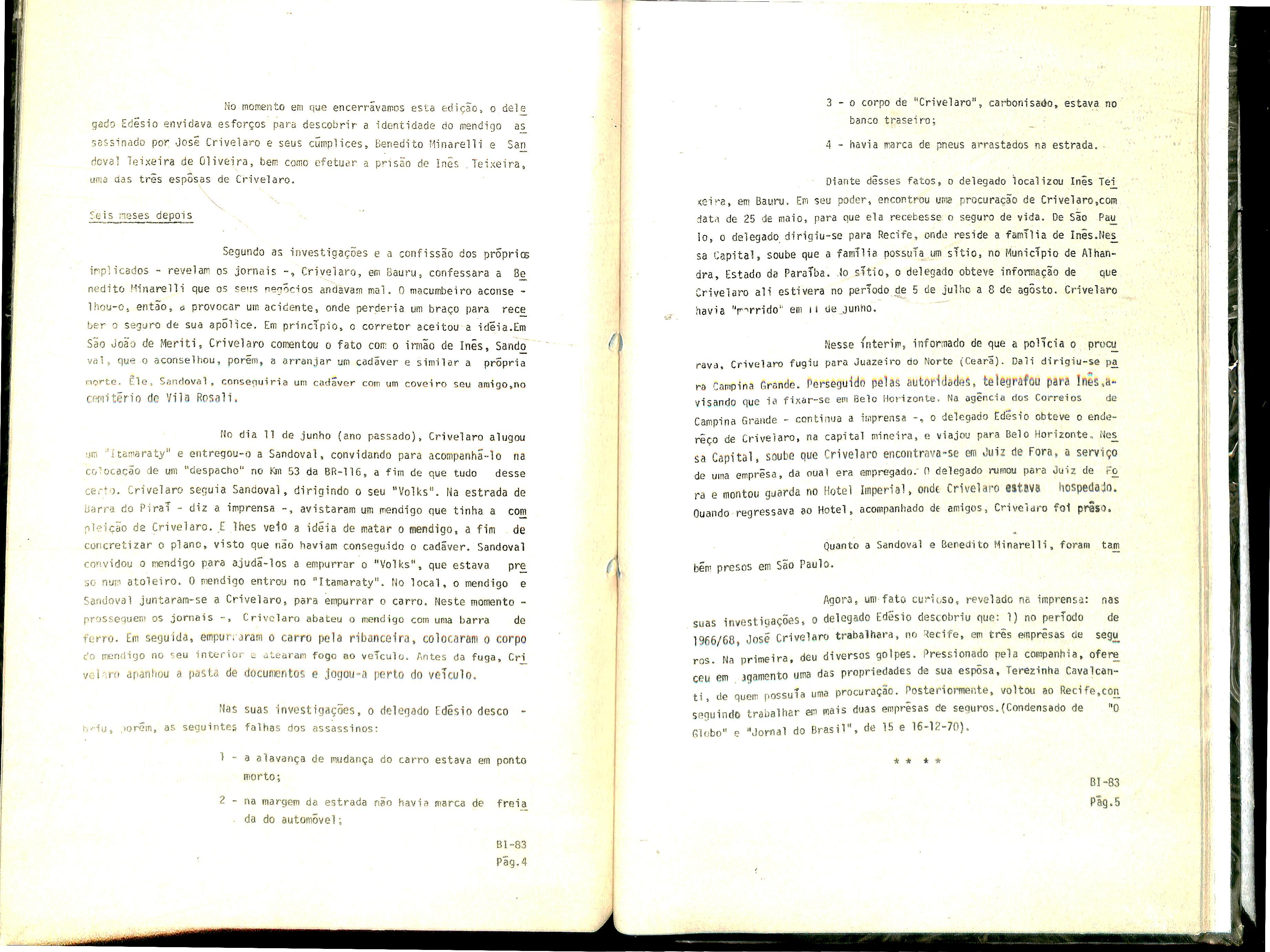 São ai nda incalcul áveis os prej uízos do incê nd io da fábr ica da V olk swage n, e m S ão Be rna r d o do Campo, qu e ma tou dez pessoas, fer iu mais de duzentos ope r ários e d estru iu 2 5 % d a s instal ações. n a últ ima sext a-feira. Quaren ta caminhões e dois hel icópte ro s l u t a ra m con t ra as c hamas e a fa lta d e á gu a, send o n ecessária a u t iliza ç ão de carbono líquido para debt lar o in cênd io . T ôda a r egi ão d o ABC pa uli sta _ fo i m obilizad a. O pa~ v ilhâo n9 3 da Ala 13, onde se loc ali zavam as seções d e t apeçari a, ti ntas e pne us, foi t o talmente d es t.J.uí~o. A diretor ia da VW, em n ota d istrib uída após o i nc ê nd i o, confirmo u as notícias d e que iria determ inar a pa ralisaç ã o d e tôda a prod u ã o d ês te fi nal de a n o e d ecret ou fénas , a partir d e h o je, para grand e pa rte do s funcionários da emprêsa o fo2:o teve origem no Pavilhão 119 3, q7ie desabou. Pass~do -~ pâuico inic ial, tod os os func1onanos da emprêsa t entaram debelar as chamas para que elas não se propa&rasse m aos outros pavilhões.