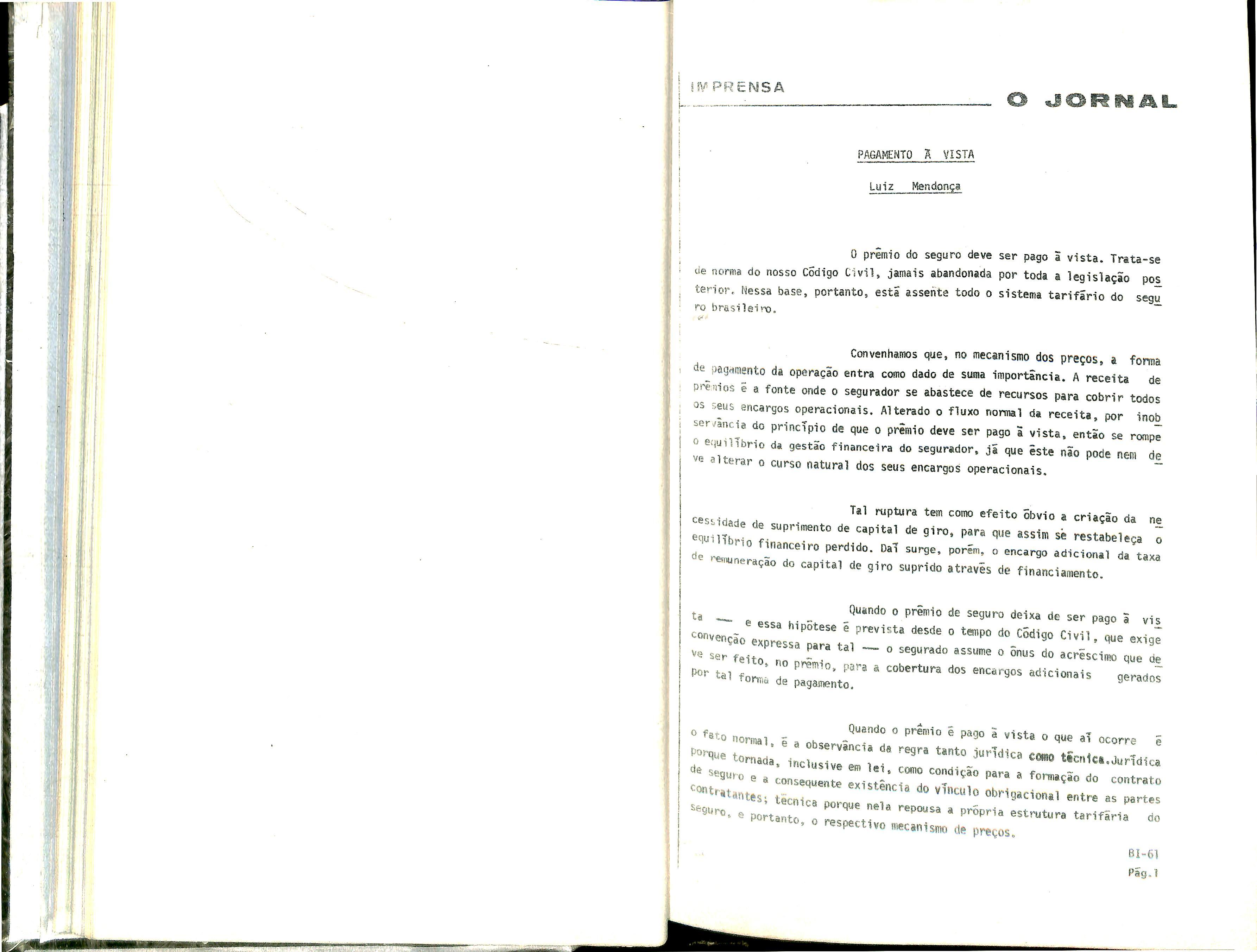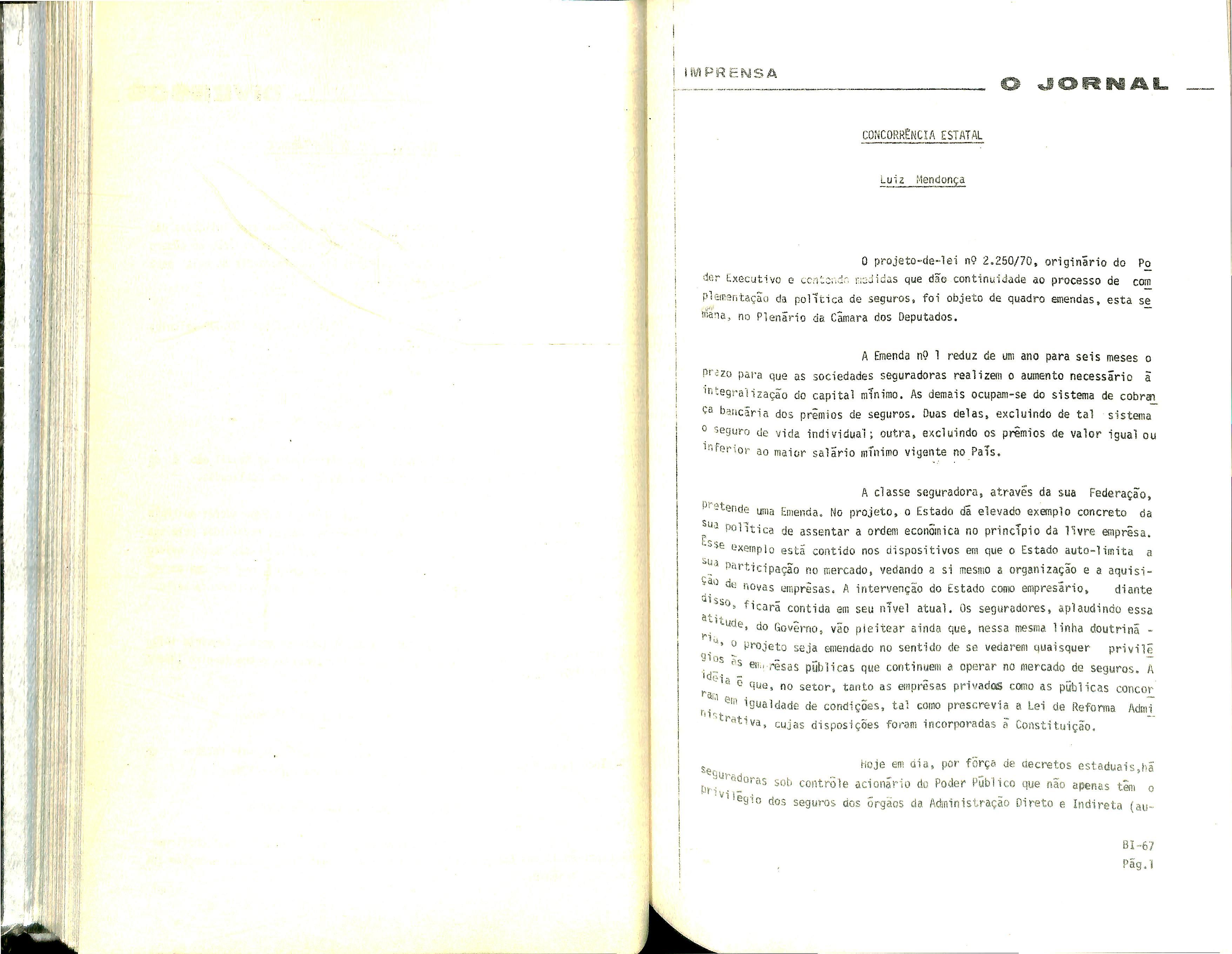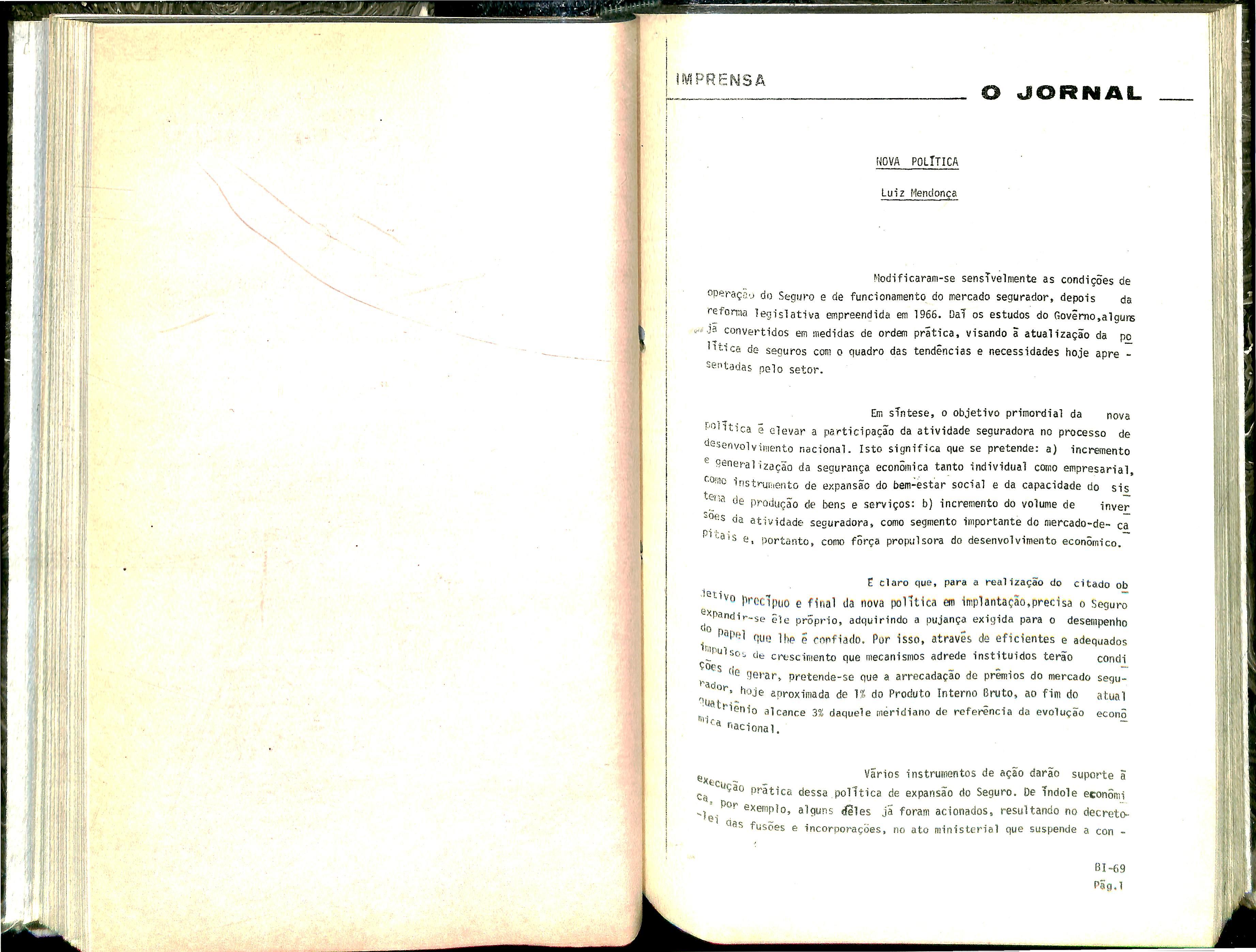 Nos meios segurad ore s, a me di d a fo i encarad a com oti mismo , consi J derando - se que est ã p erfeil amente enqu a drada n a o rien t ação gera l que vem sendo imprimida a o s etor Pãg