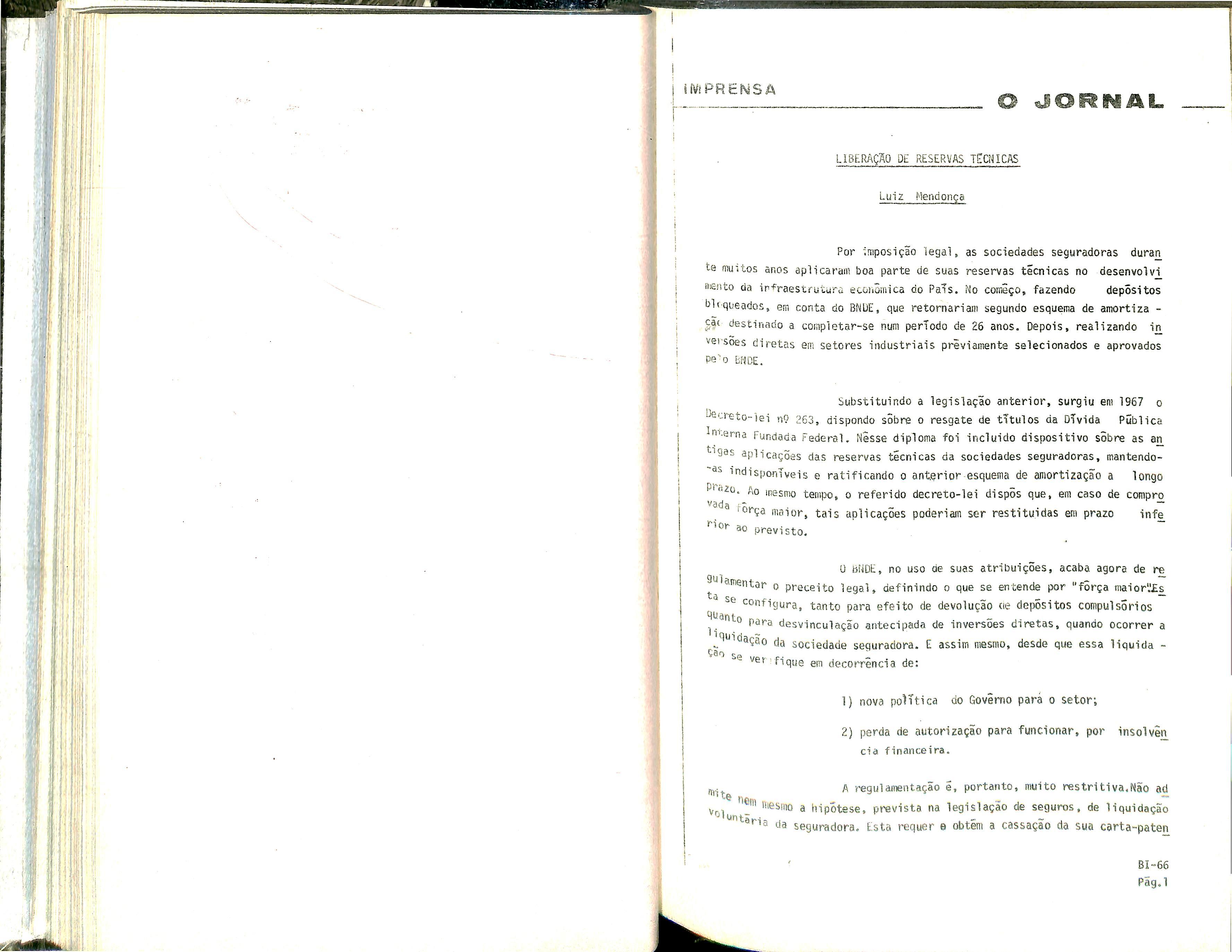 , Para uma ideia de ordem de grandeza, convêm assi nalar, antes de mais nada, que tal antecipação atinge a soi ão i ncre!!}ento anu~ l de reservas, poi s ~a~to as sociedade~ se9.urado ras sao compel1das a promover a aqu1s1çao mensal de Obr,gaçoes Rea justãveis do Tesouro Nacional. tsse quantitativot que por si mesmo jâ tem expressão, por se relacionar com uma antecipação de rf cu r sos, avulta mais ainda se for levada em conta a circunstância"':' de tratar-se de um excedente de cobertura de reservas.~ caso. o ex cesso de corre do fato de as reservas estarem constituídas pelo montan t e glob a l no dia 31 de dezembro do Exercício preced~nte e, a s s i m, se compensarem, mensalmente : ·