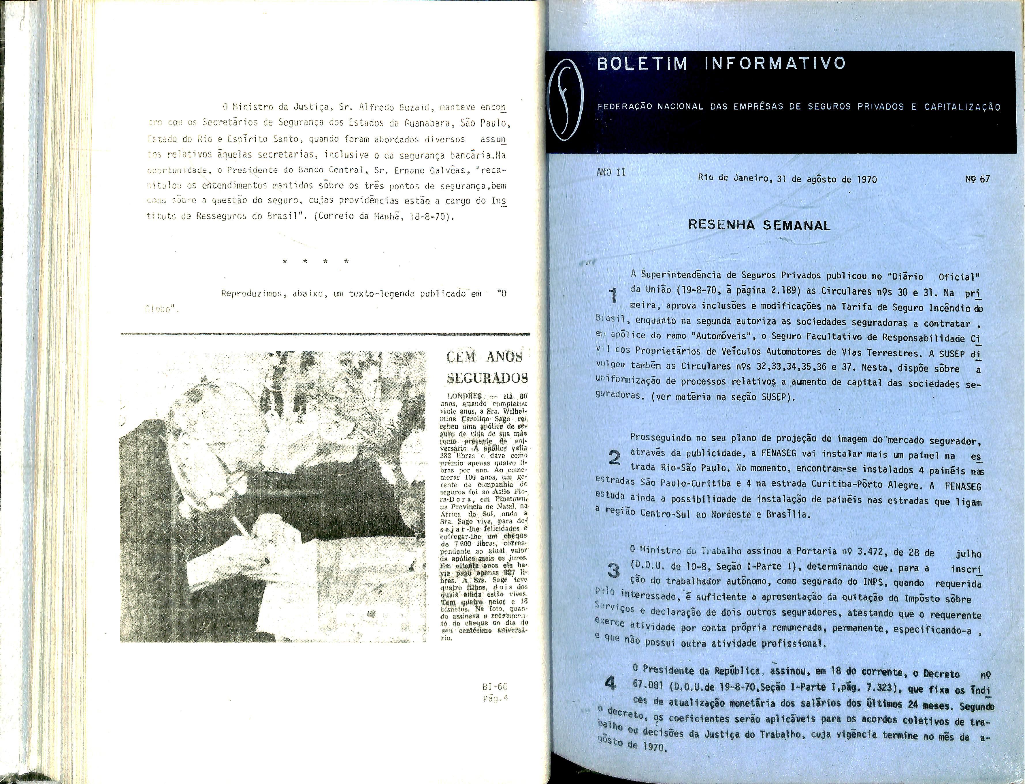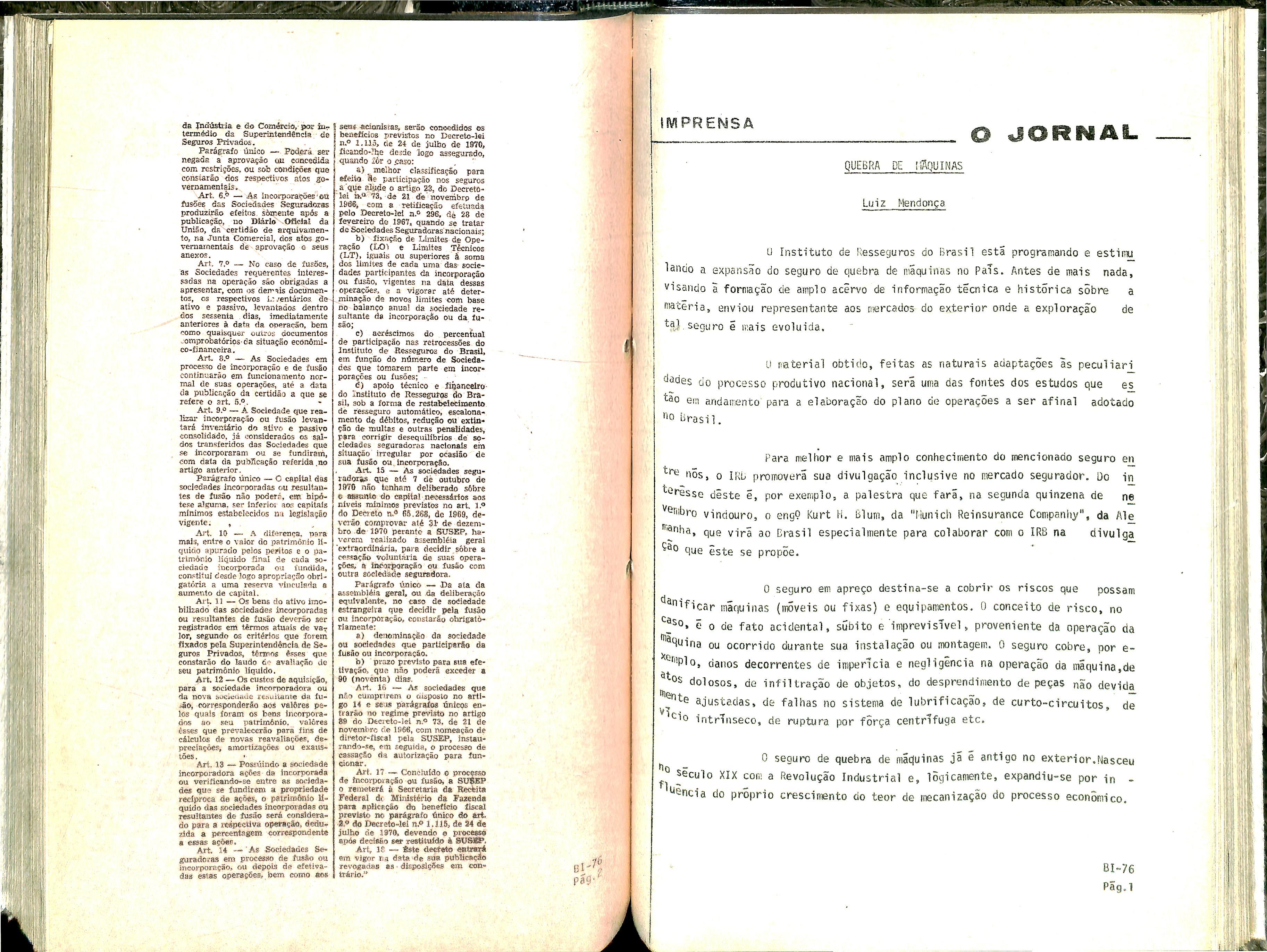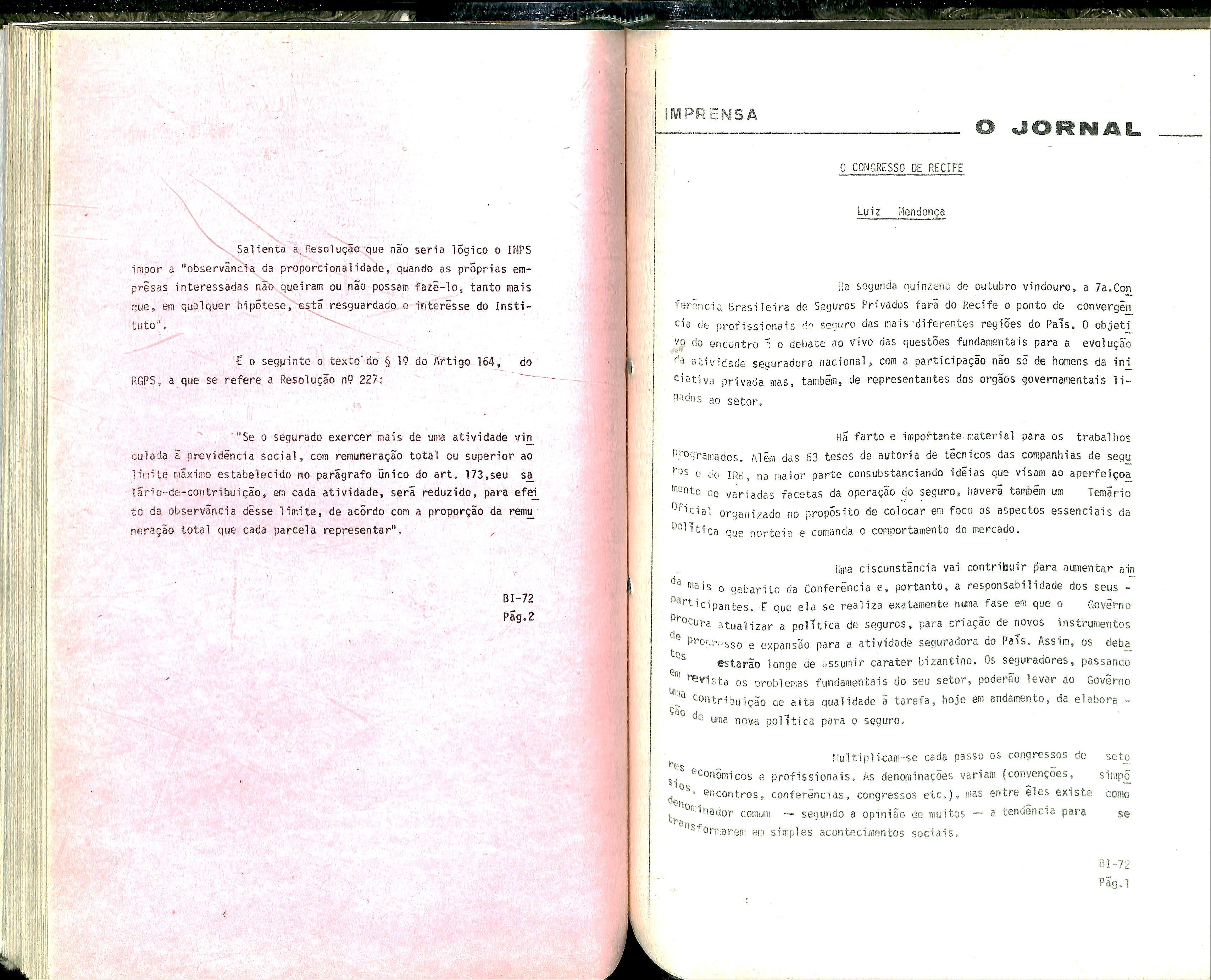 Conforme anunciamo s em nossa edição anterior, os leitores encontrarão na seção "imprensa", dêste numero, um resumo dos principais fatbs rela c io nados com o seguro no Pals e publicados na imprensa.