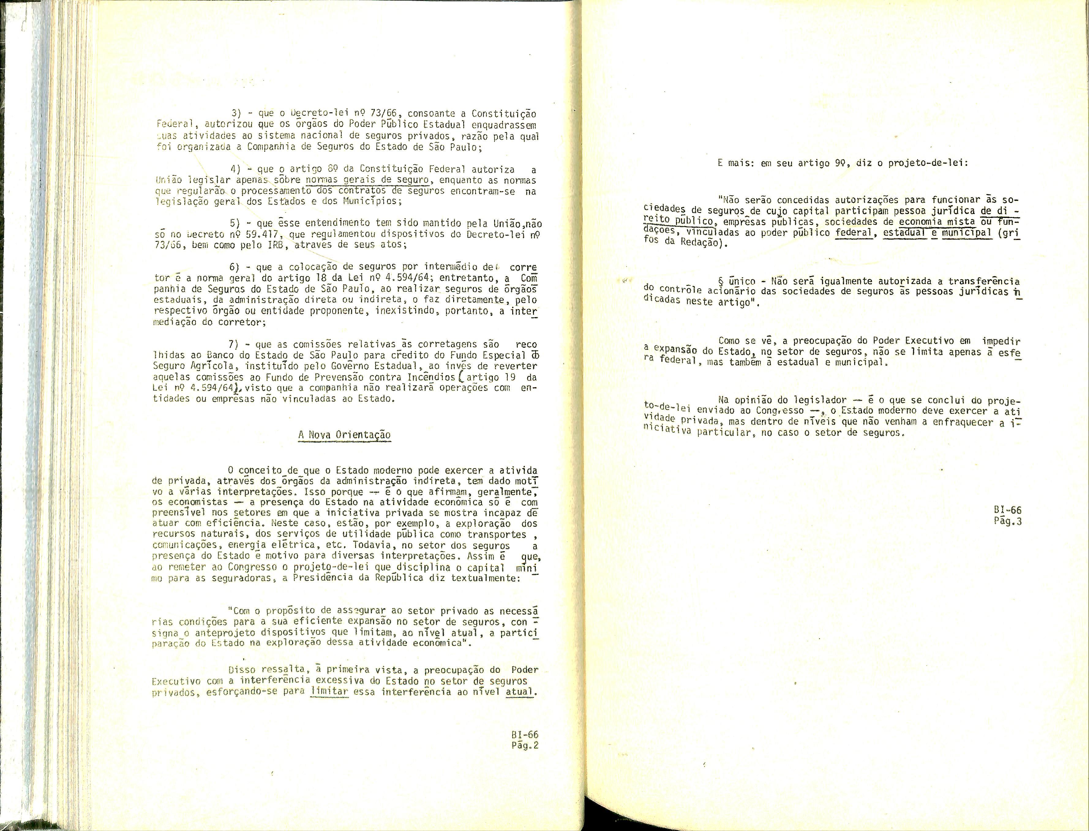 Com o advent o do De c reto-lei nQ 73, de 21 de novembro de 1966. passou o Consel ;, o Mon e tãrio Naci ona 1 a exercer atribuição de disciplinar o emp rêgo daquelas reservas. Em con sequen~ia. alterou-s~ a anti,ga tr1dição 1 pois o Egrégfo õrgão · in · troduz11., duas ino~ilçoes substanci Jis no sistema anterior.