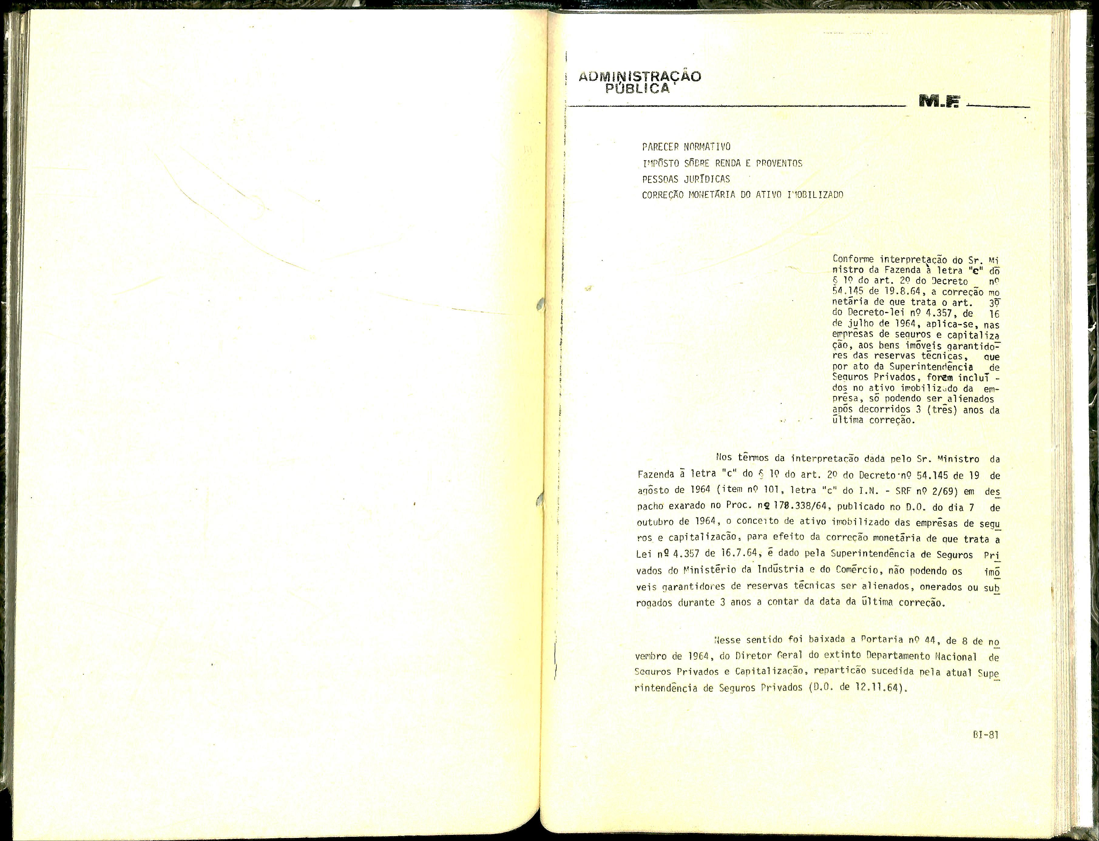As s im, operando - se compensação entre dois Exerê t cios - um em curso , outro vencido - através das rese rvai constitu{da s no pr e cedente , a antecipaçãQ de inversões gue o Con se lh o Mon etâri o Nacional c r i ou vem a tornar--se, indu bitavelmen t e- · 1 um ~~x ced~n te de cobe rtu r a .