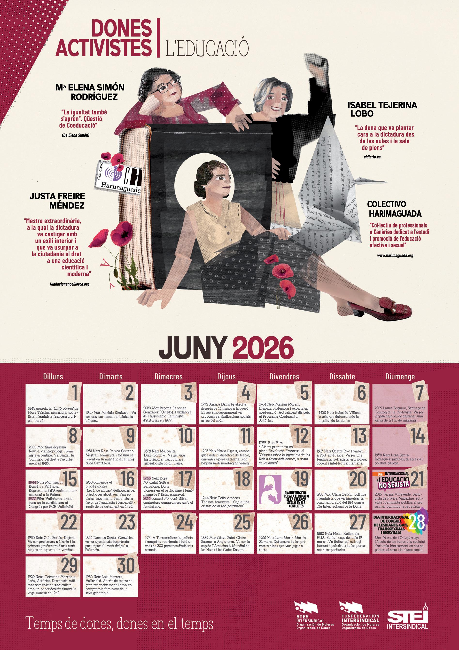 Ibárruri (La Pasionaria), Eva Perón y Clara Campoamor, utilitzant un llenguatge senzill i adaptat a l’edat. Cada grup tria una dona lluitadora de les efemèrides d’aquest calendari i elabora un petit còmic que representi un moment clau de la seva vida. Els còmics s’exposen en el centre i poden formar part d’un calendari feminista il·lustrat elaborat per l’aula.