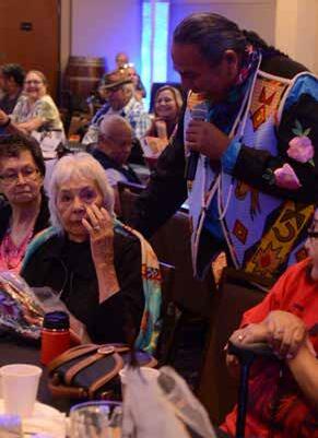 Caleb Minthorn takes a dance break during the arena dancing at the Pendleton Round-Up. Minthorn’s parents Randall and Nancy Minthorn were named longest married couple during the Friday arena dancing of the event. Jill-Marie Gavin Photo