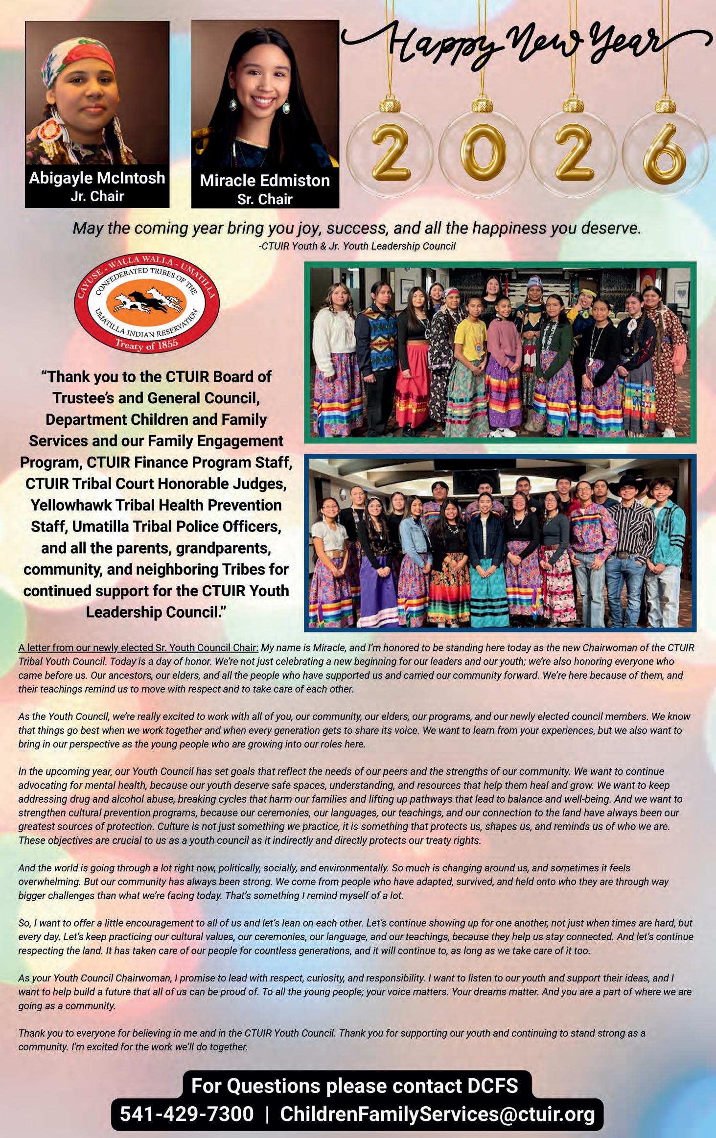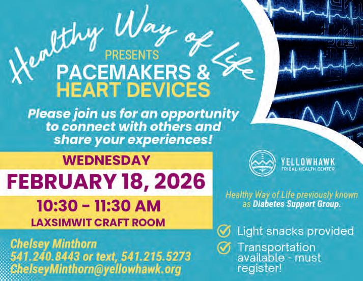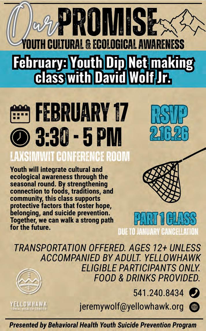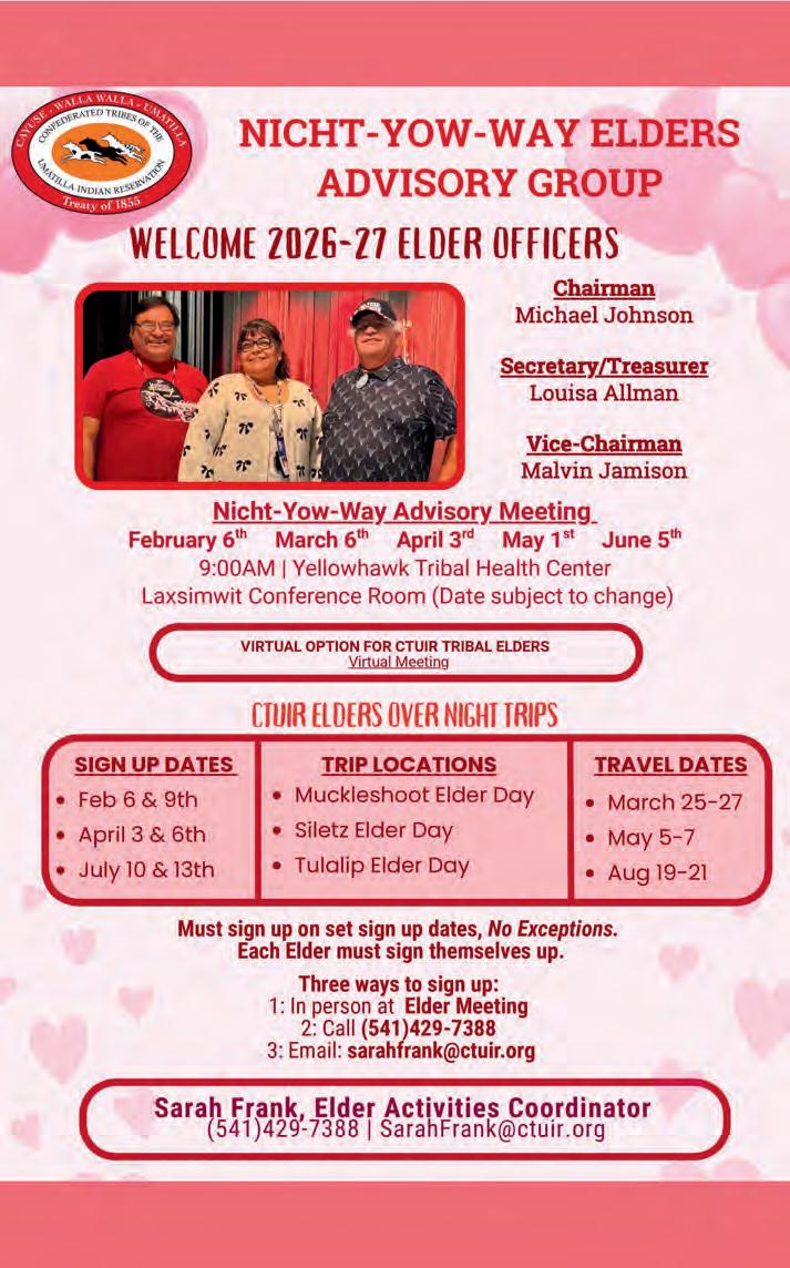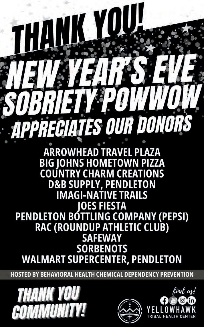 SUBSCRIBE: The CUJ is free to pick up at tribal entities and area businesses. However, a mailed subscription can be purchased for the price of shipping and handling by contacting the CTUIR Finance Department. Call 541-429-7150 or visit the Finance Department in person at Nixyáawii Governance Center, 46411 Timíne Way, Pendleton. One Year: $15 Two Years: $28