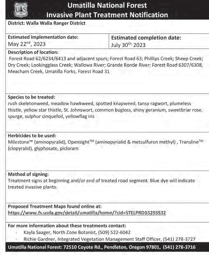 treatments contact: Chance Appleford Pomeroy Ranger District: (509) 843-4655 Blaine Beehler, Pomeroy Ranger District: (509) 843 -4663
