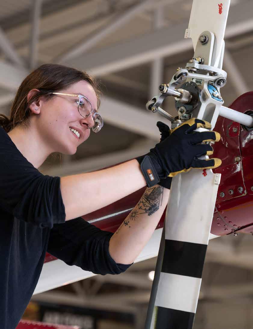 The Fleet: Whether flying with our cutting-edge fleet of 13 Cessna aircraft, our three advanced flight simulators, or working on numerous fixed and rotarywing aircraft for maintenance training, Aviation students get hands-on with aircraft within their first semester.