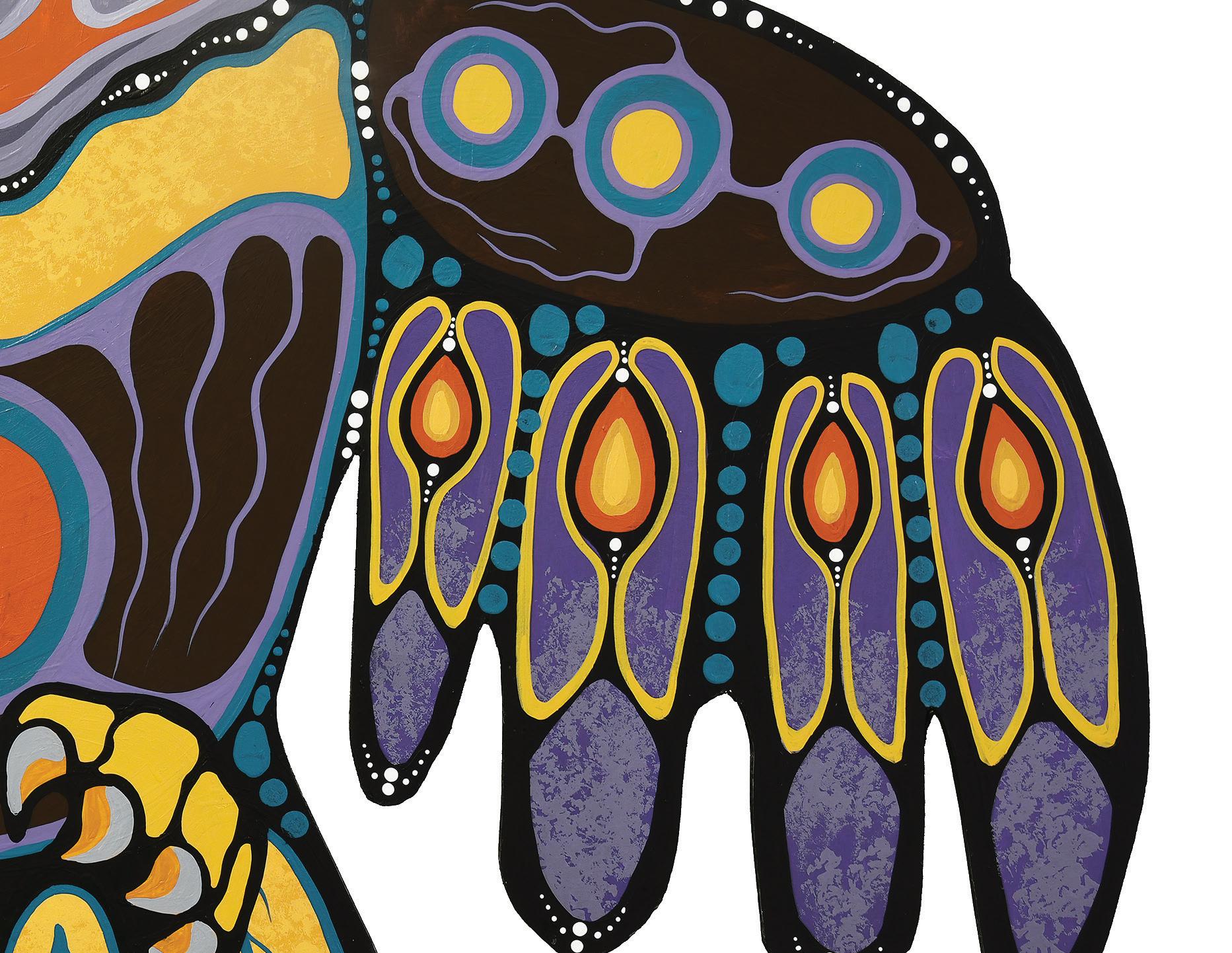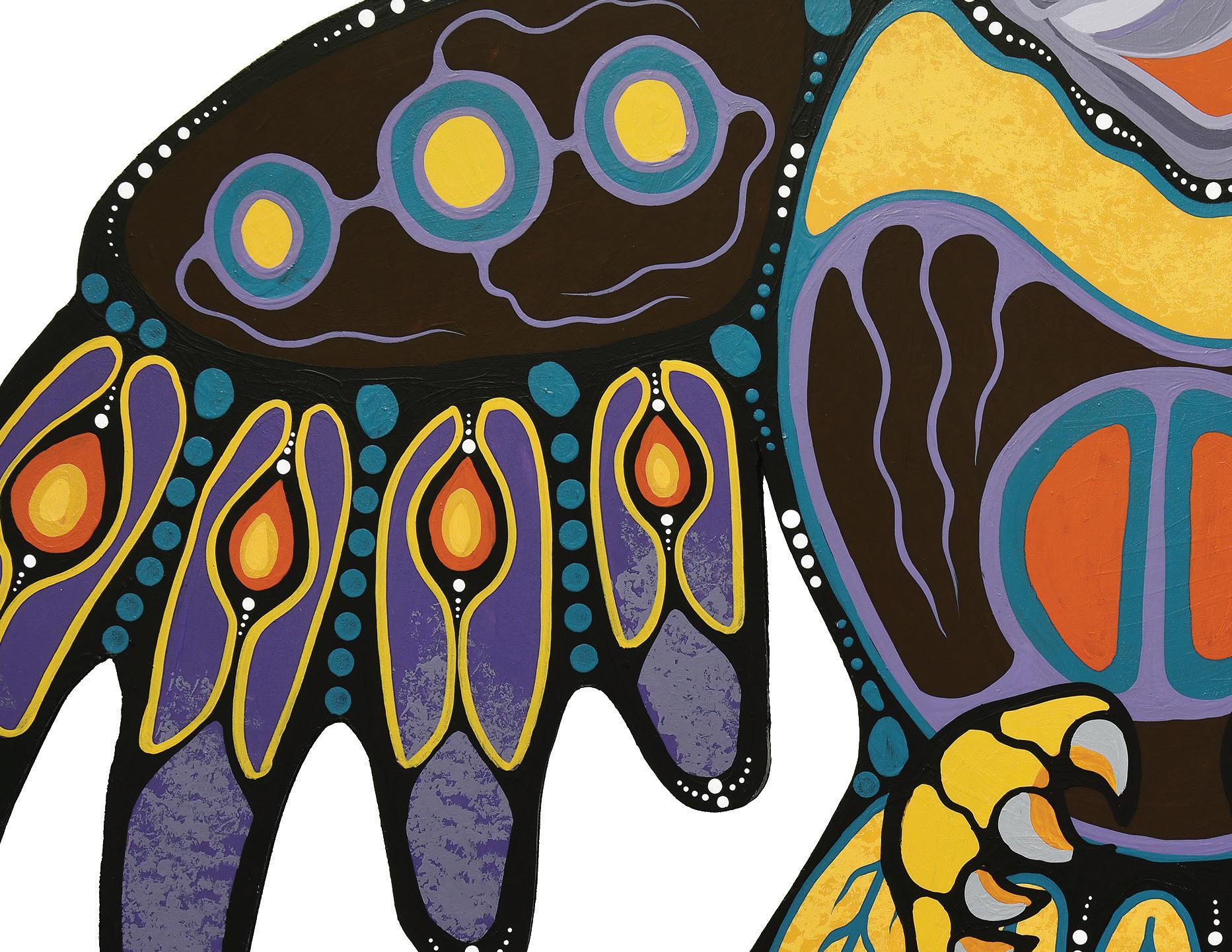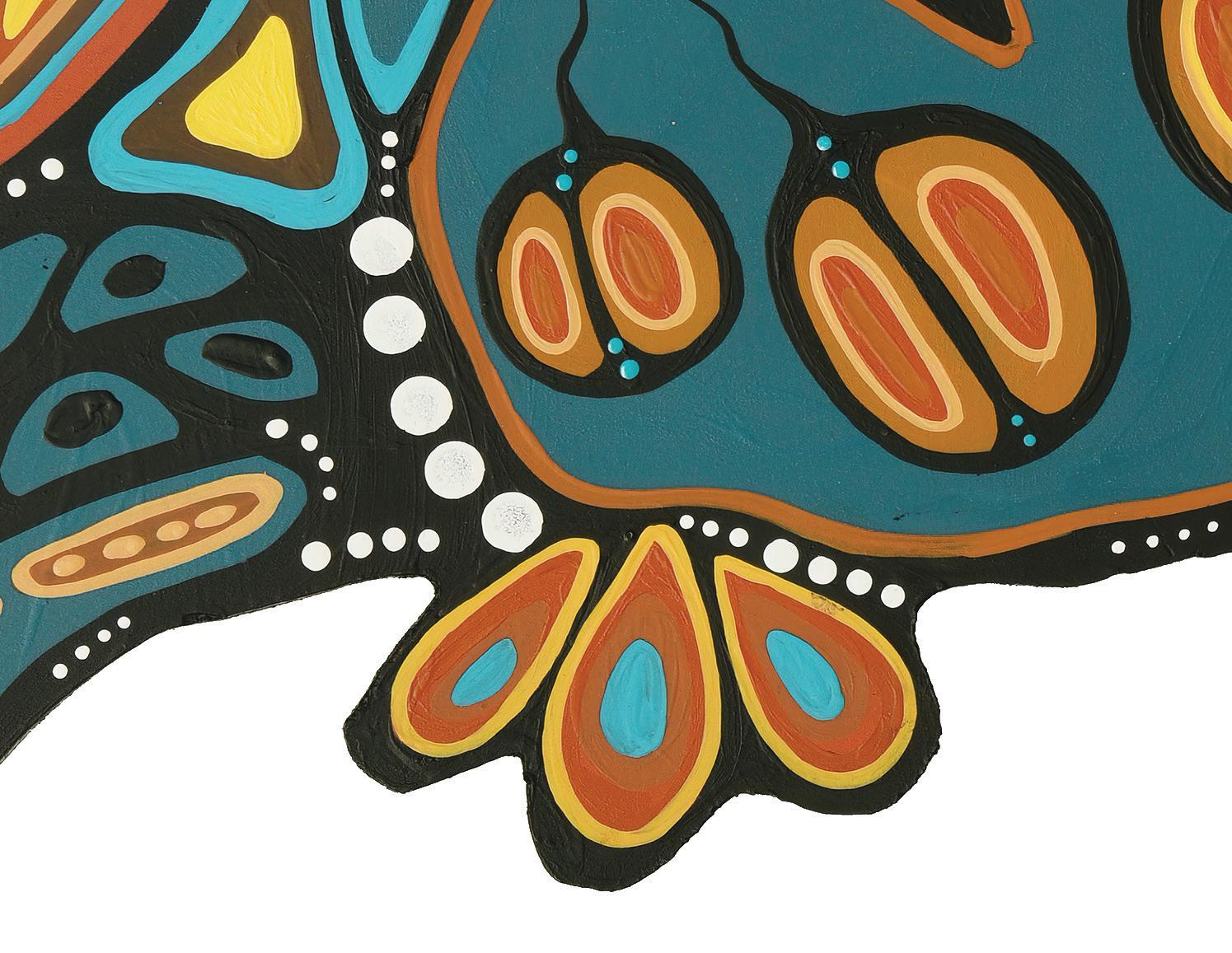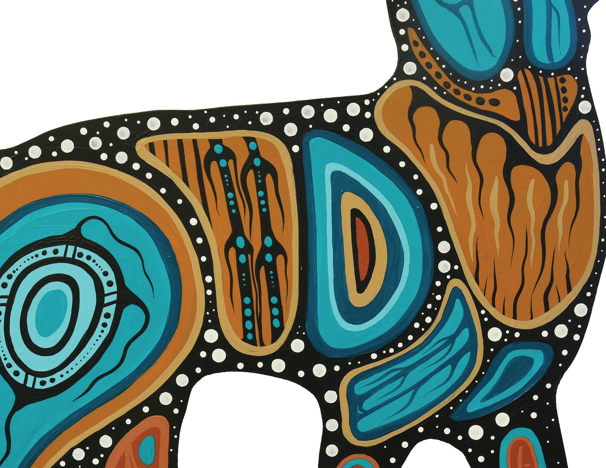She is inspired by the woodland style as well as artists like Daphne Odjig, Christi Belcourt and Norval Morrisseau.