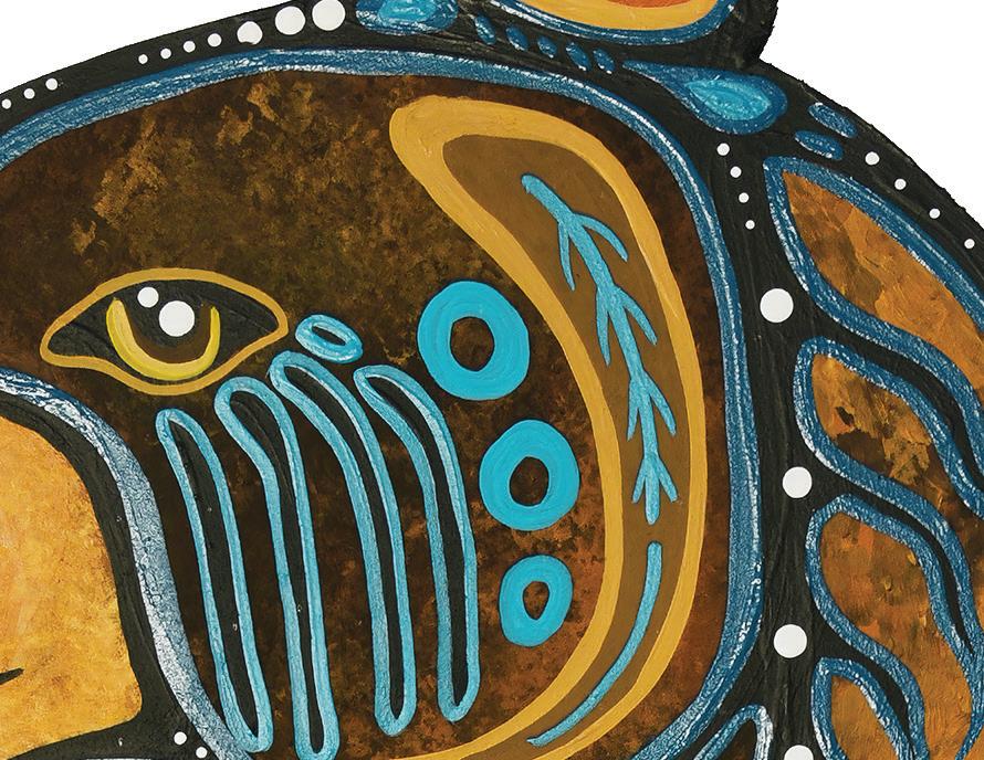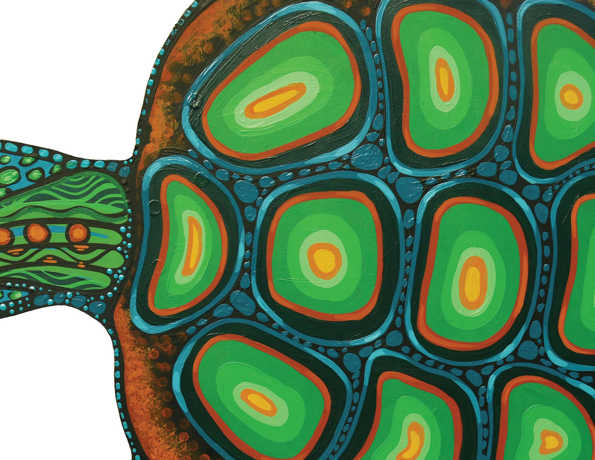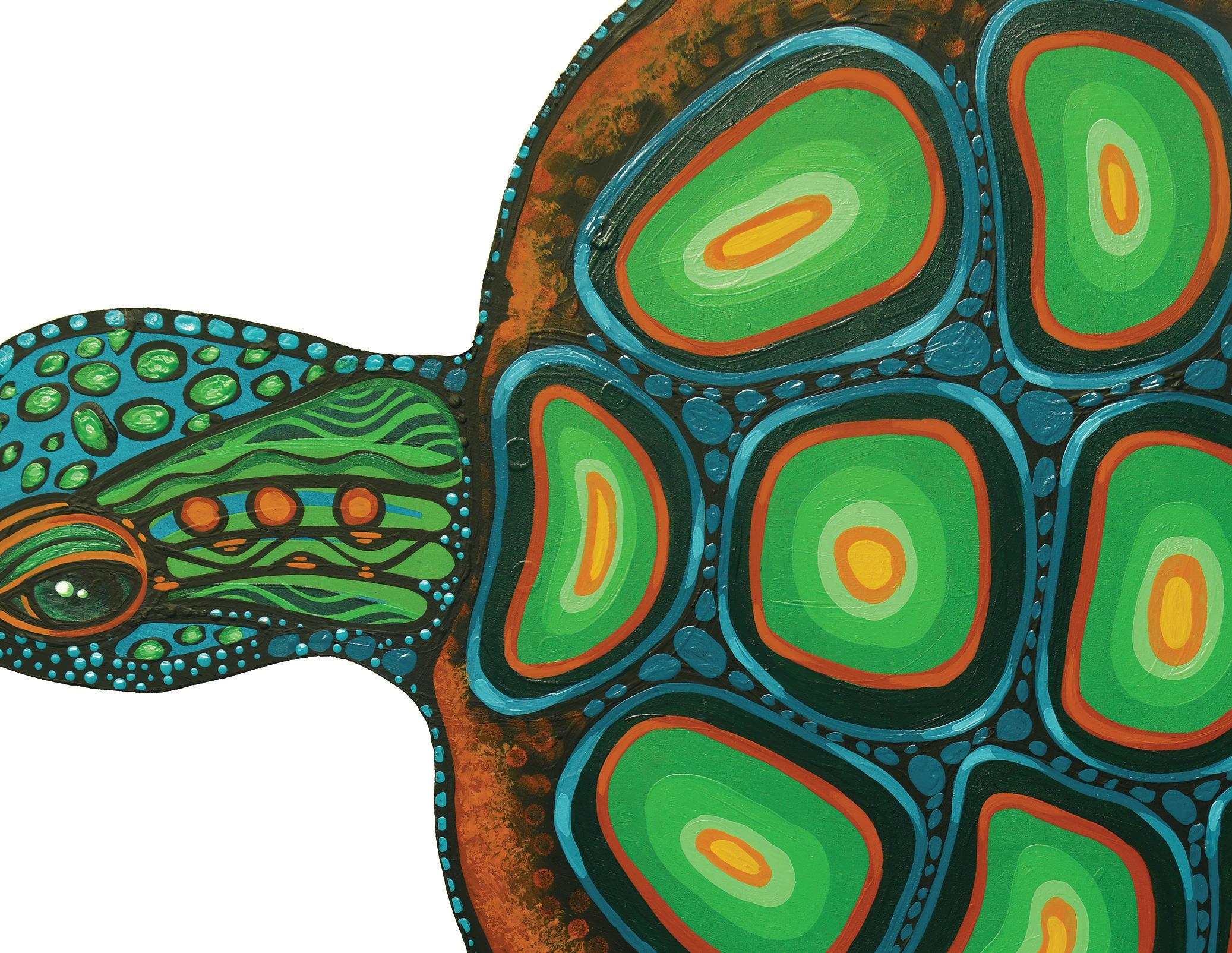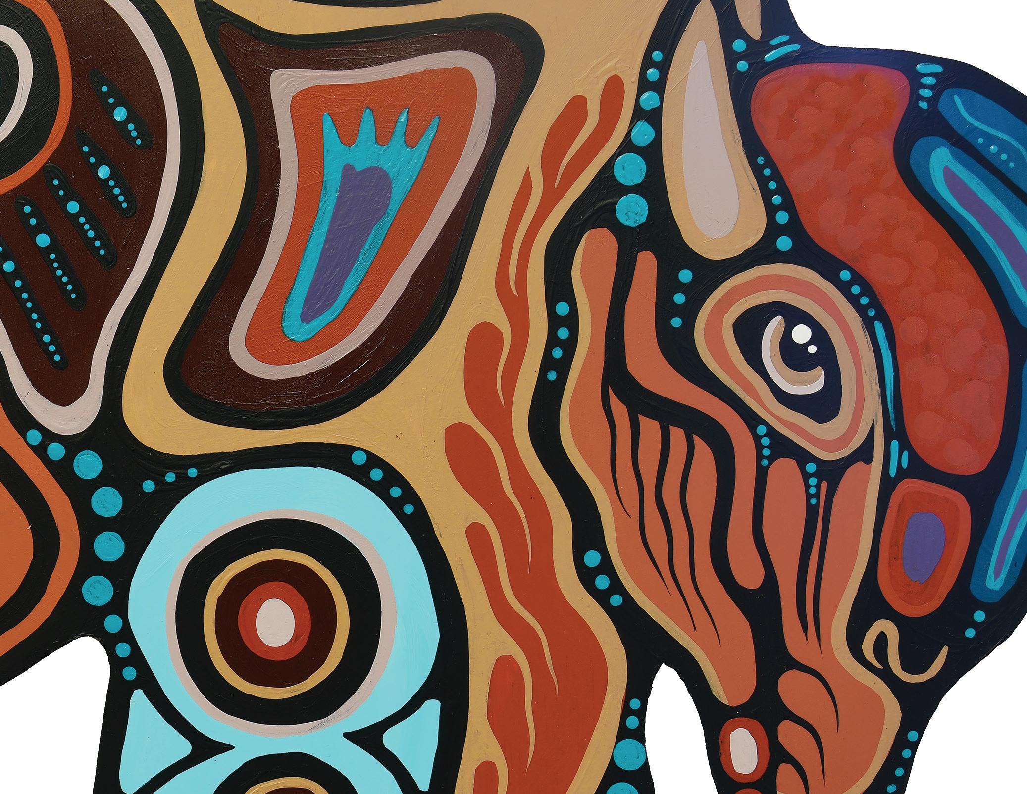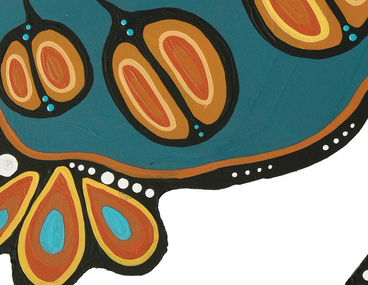 She is inspired by the woodland style as well as artists like Daphne Odjig, Christi Belcourt and Norval Morrisseau.