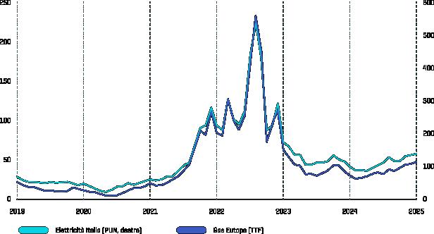 andamento del prezzo di energia e gas utilizzato da Centro Studi di Confindustria