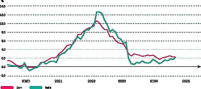 Indice dei prezzi al consumo IPCA, Italia e Unione economica e monetaria