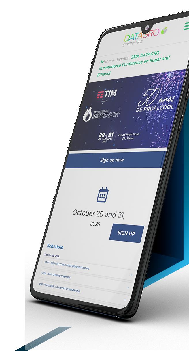 The 25th DATAGRO International Conference on Sugar and Ethanol is a special edition that celebrates 25 years of the event and 50 years of Brazil’s ProÁlcool Program. It brings together multiple perspectives to examine the present and the future of the value chain, with room for direct dialogue, exchange of experience, and up-to-date technical content.