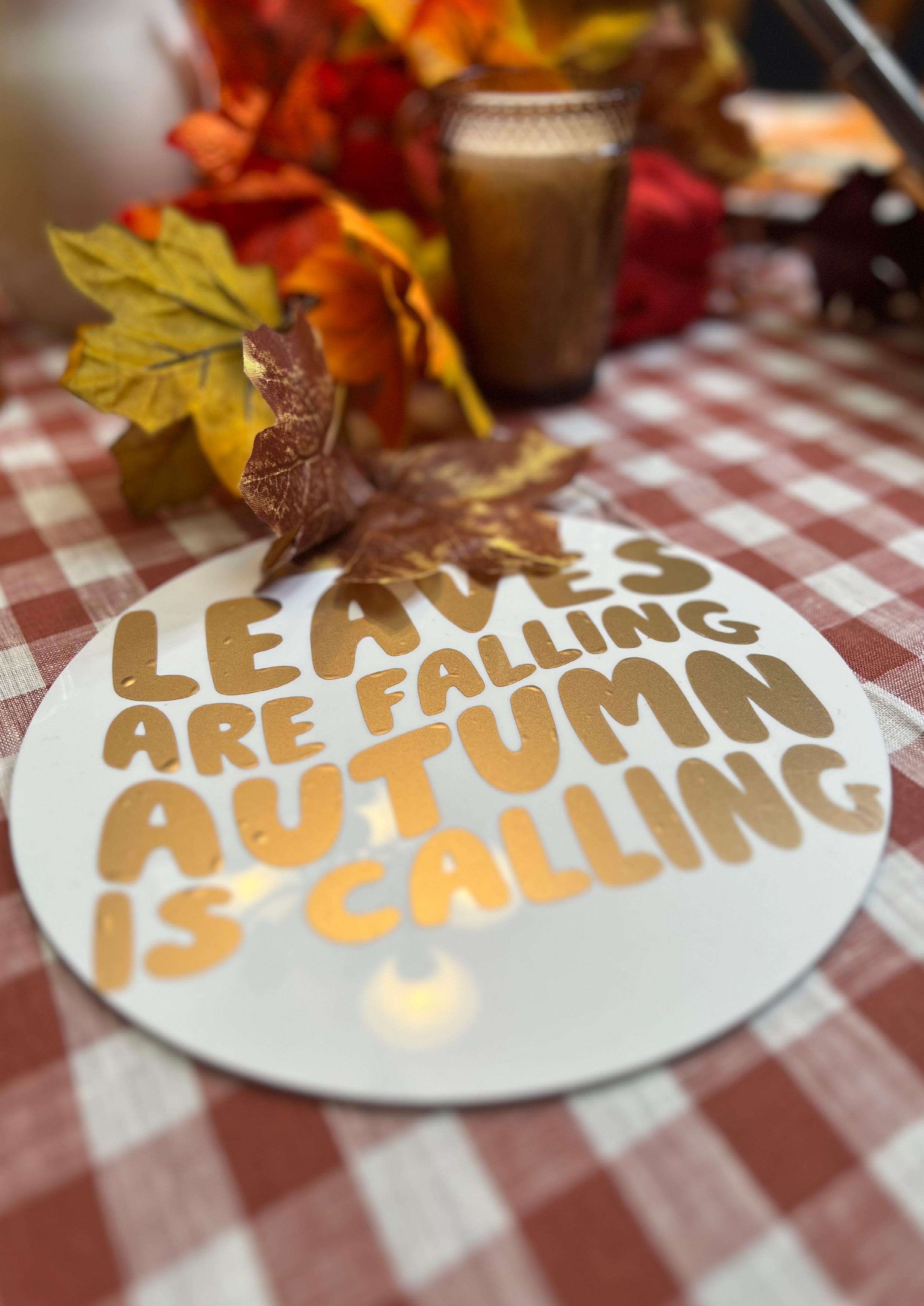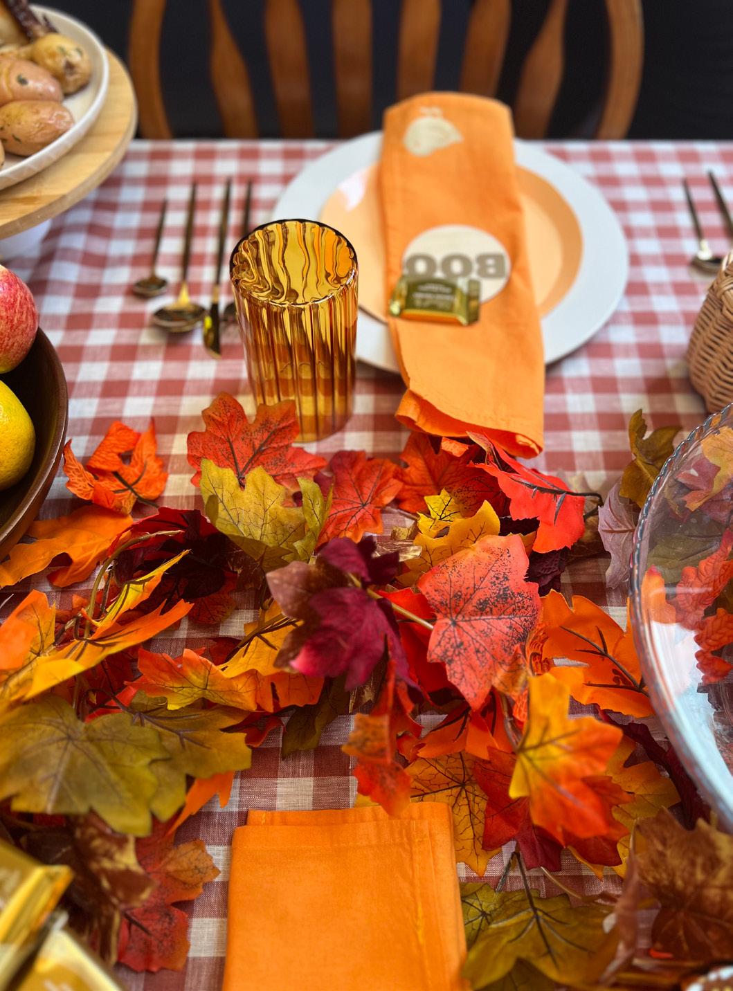 Napkins, cutlery + autumn leaf runner