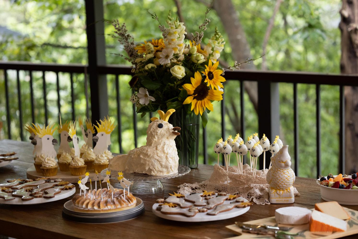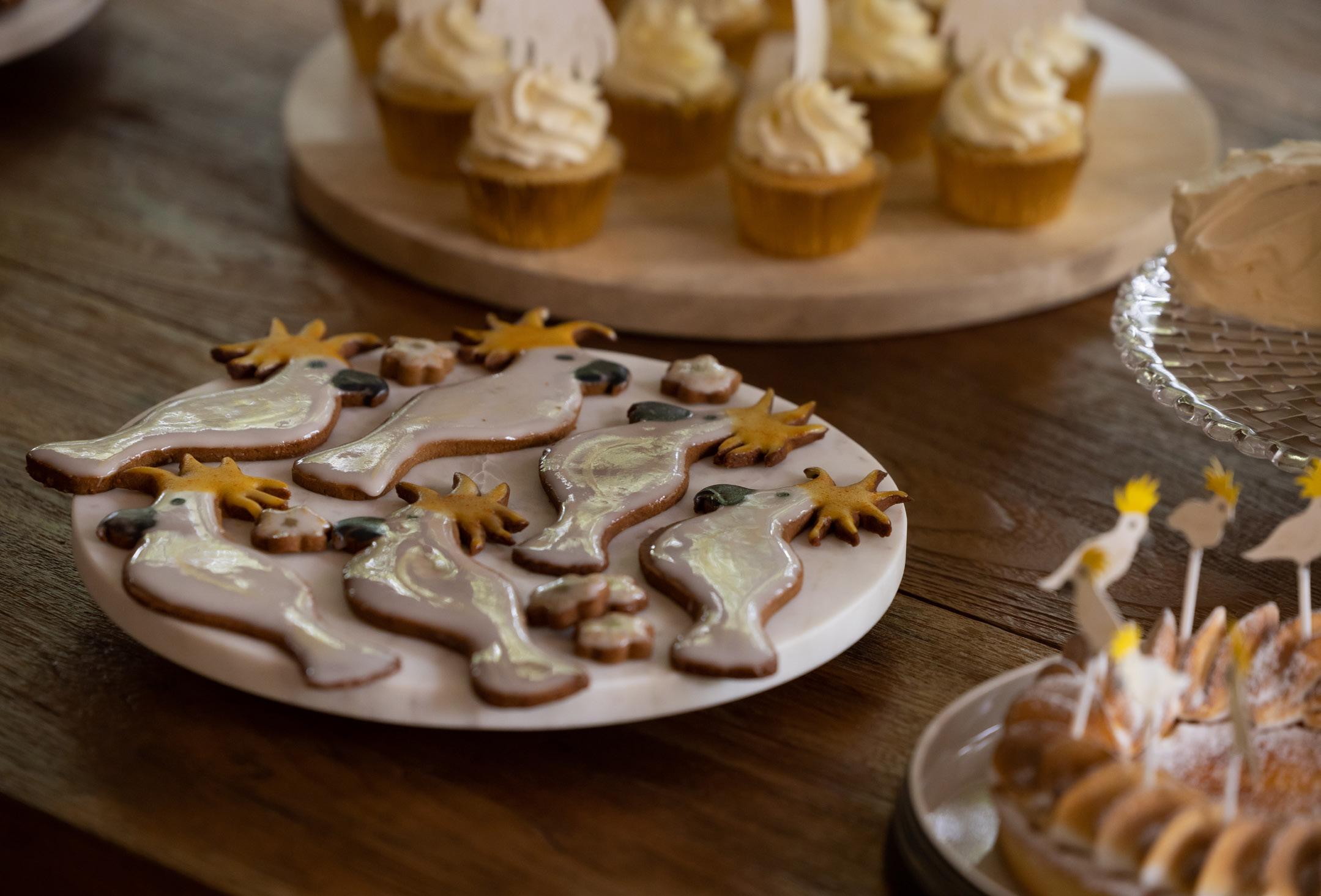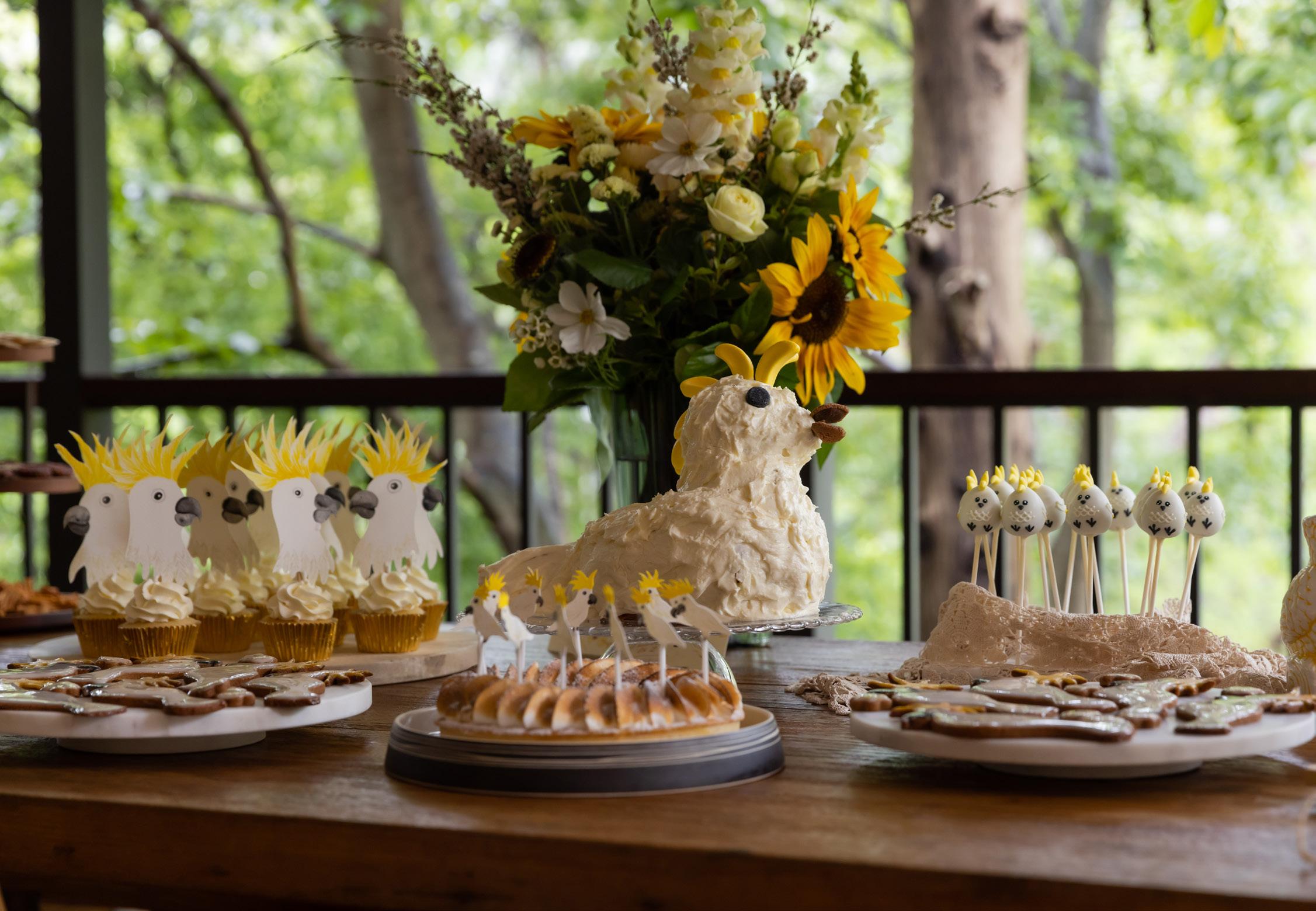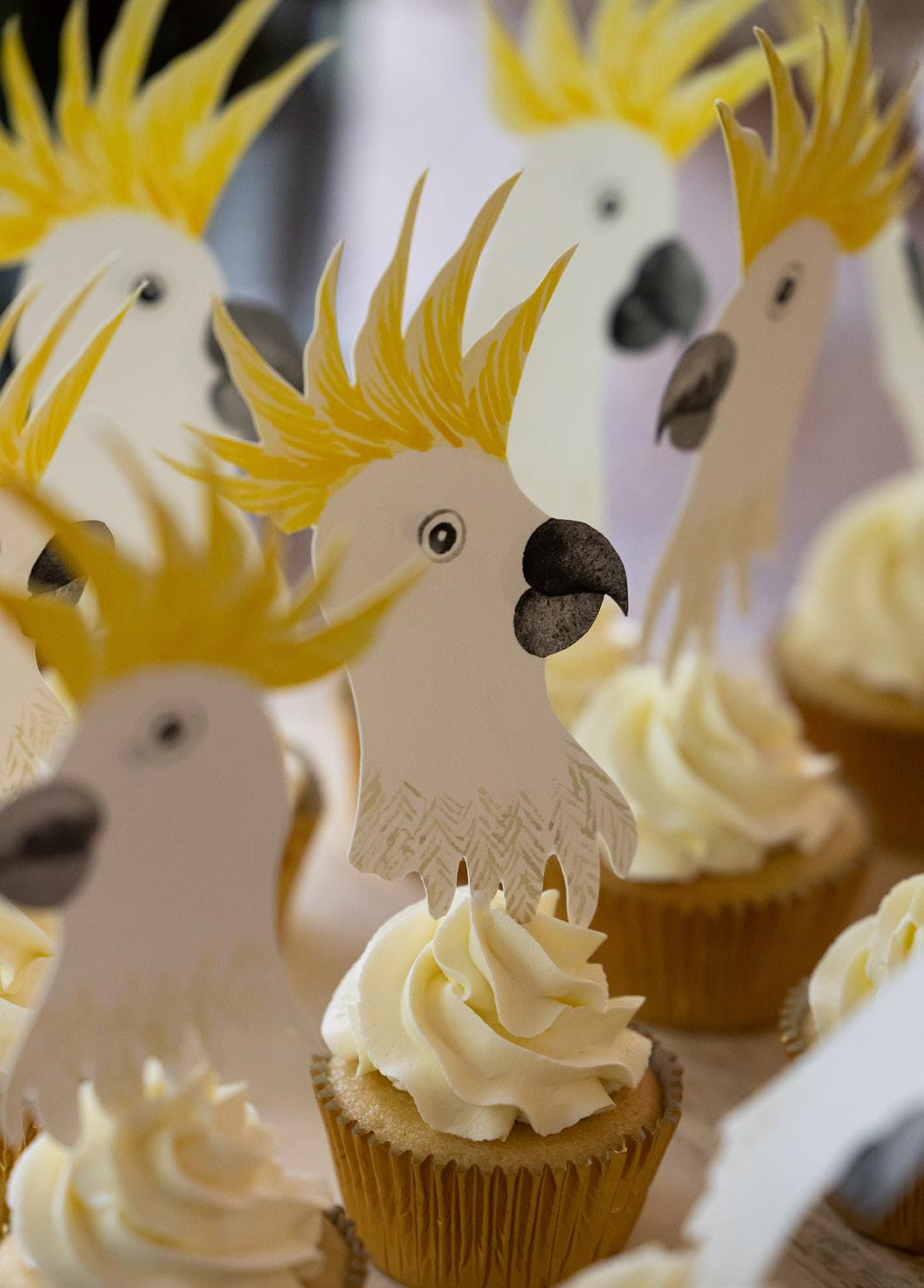 Clockwise from top; Cookie set by @desbakesndecorates; cake by @sassysprinklescakery, image by @zoomimages; country elopement by @milliemackdesigns; Aurelia’s Cockatwo by @elkprints; Autumn Harvest by @confettifair