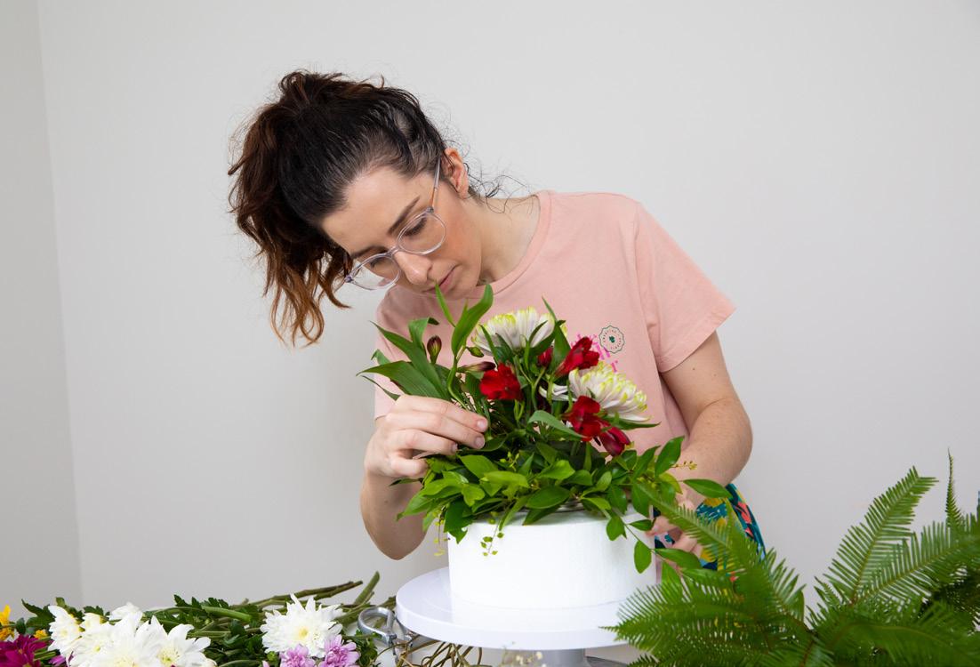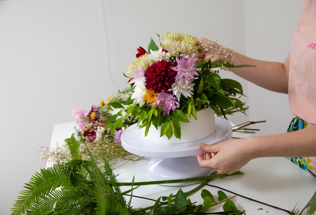 Now fill in the remainder of your topper with filler flowers and greenery! Have fun playing with a loose simple arrangement or go for something tighter and rounder - you can’t go wrong!