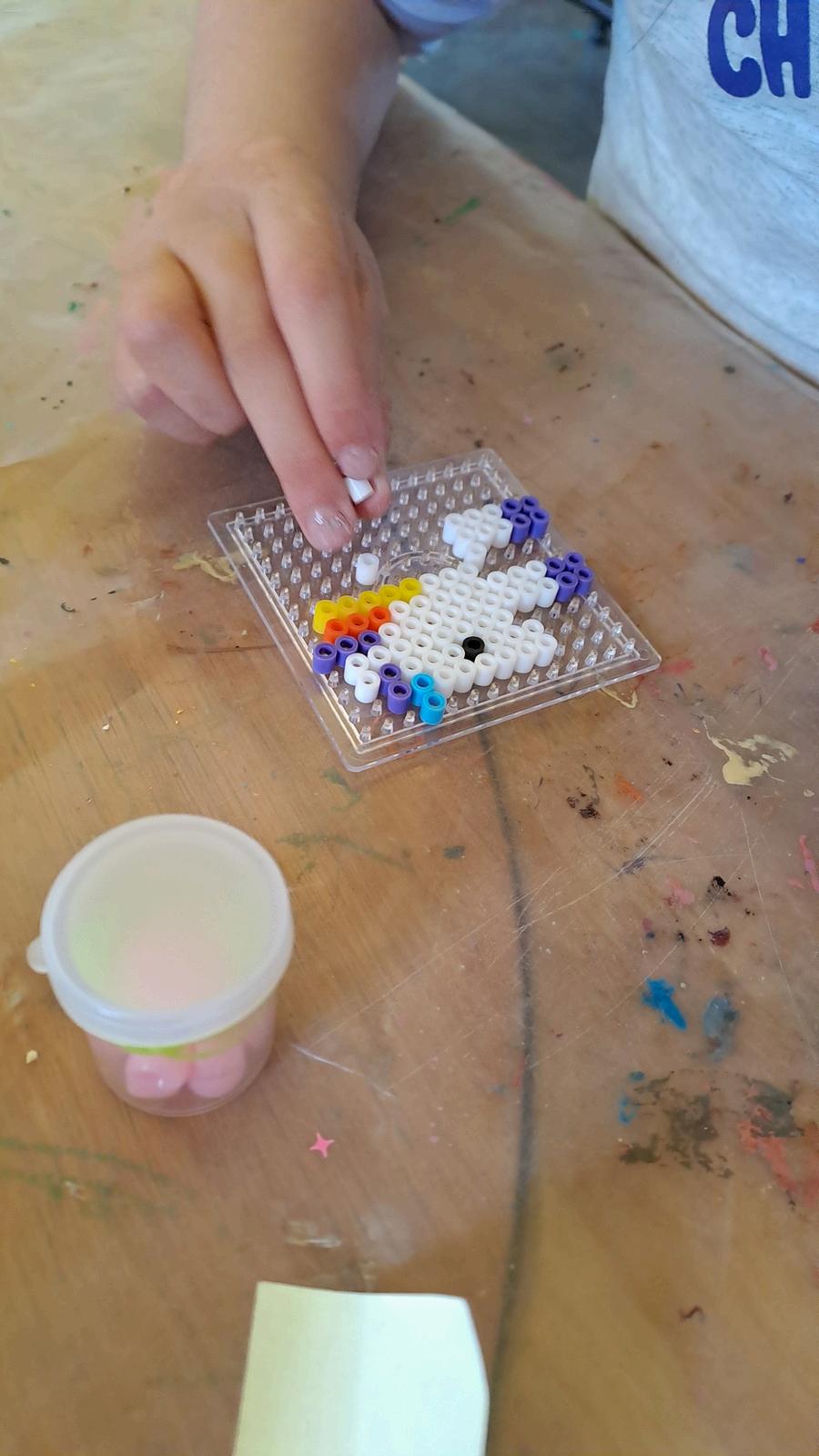 *Cuentas de Planchitos*: Reconstruimos la escena con cuentas de Planchitos, creando una obra de arte tridimensional y colorida.