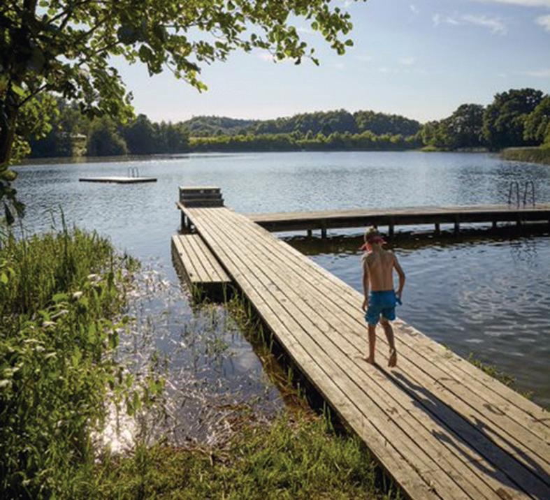 Midt på vores halvø finder du - udover legepladser og swimmingpoolen - også hovedbygningen med kiosk, grillbar, køkkener, opholdsrum og moderne toiletfaciliteter med familierum og en populær børneafdeling. Gå en tur ved søen og nyd roen og naturen, læs en bog, spil et spil, spis is med familien, leg med hunden i hundeskoven, eller luk øjnene og nyd bare at kunne slappe af.