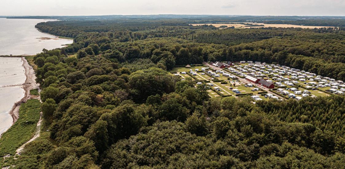 Campingpladsen ligger lige midt i bøgeskoven, med kun 100 meter til badestrand med badebro. Som noget helt særligt har vi fyrværkerifrit nytår til glæde for dig og de firebenede. Vores område har rigtig gode gå –og vandreture.