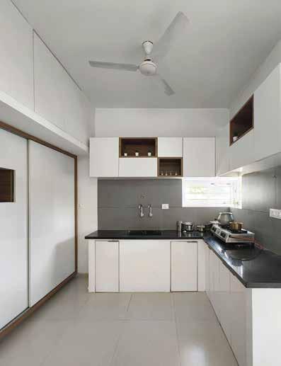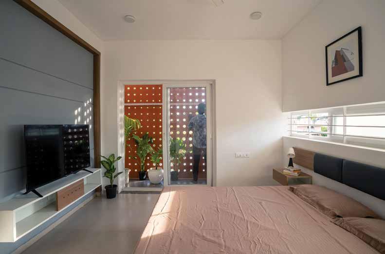 At its heart, a central living-dining area serves as the core of daily interactions, connecting three bedrooms, a kitchen, and thoughtfully integrated indoor and outdoor courtyards. Two bedrooms function as self-sufficient suites, providing a hotel-like retreat for grown children who visit occasionally. Each suite is designed with a linear progression—bed space, dressing area, en-suite bathroom, and a private balcony—offering a balance of privacy and connection.