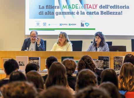 A dare il via ai lavori, i saluti istituzionali di Alberta Giovannini , direttore Affari Generali, Risorse Umane, Marketing e Fundraising del MUSE, Alessandro Leto presidente della Sezione Carta, Grafica, Editoria di Confindustria Trento e Catia Guerrera , Casa Made in Italy Trento, che hanno sottolineato l’importanza strategica di una filiera capace di coniugare innovazione, cultura e sostenibilità. Il primo intervento ha esplorato il ruolo della carta come elemento distintivo dell’editoria di pregio con Alessandro Nardelli, direttore Commerciale Export Cartiere del Garda (Lecta) e Fatjona Maskuli, junior promoter Cartiere del Garda (Lecta) che hanno rac-