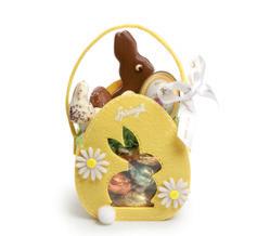 Delicious Easter specialities, carefully arranged in a premium gift basket. Easter bag filled with creamy chocolate mini-eggs, a stracciatella mini-bunny, a dark gianduja bunny and delicious chocolate mini-eggs.