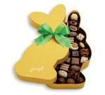 Bonbonnière in the shape of a bunny filled with a selection of exquisite pralines and truffles handmade from the finest Swiss chocolate.
