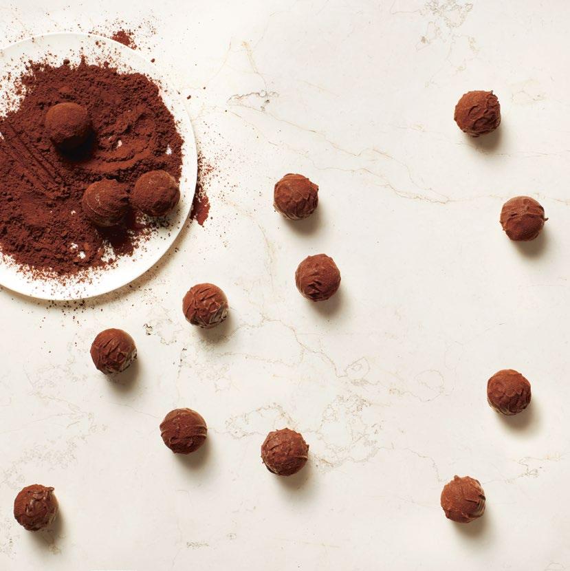 Von den Rohstoffen bis zum fertigen Produkt ist es aber ein weiter Weg. Oft tüfteln unsere Confiseure jahrelang, bis die perfekte Kombination der Zutaten und ihre Verarbeitung gefunden sind. So beispielsweise bei unseren Truffes Blanc&Noir, wo es darum ging, den flüssigen Champagner in die Ganache einzubinden, ohne dass er seine Spritzigkeit und seine Aromen verliert. Und es ist auf einmalige Weise gelungen. Beissen Sie vorsichtig in eines dieser Truffes